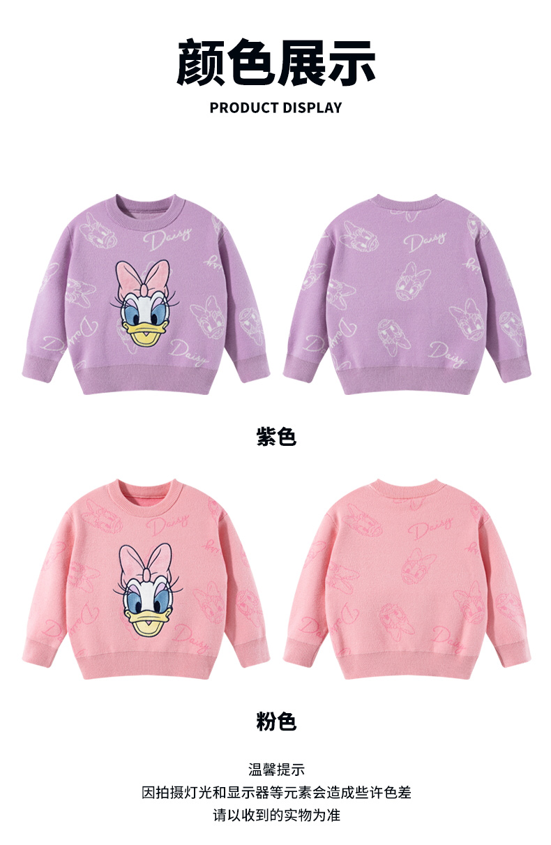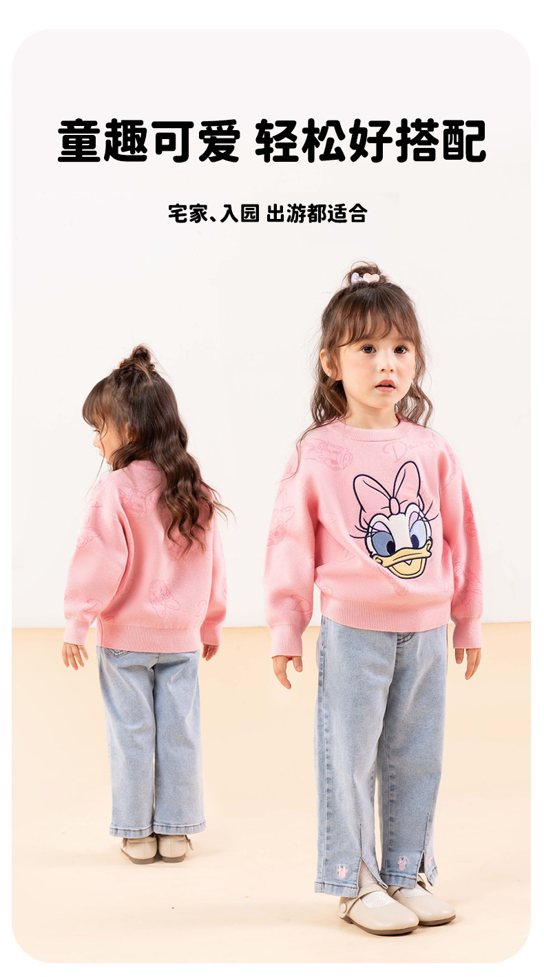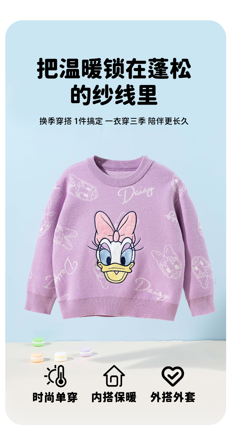 迪士尼【校服神器】24秋冬新款女童软糯毛衣时尚黛西内搭保暖针织衫ZD3DS043