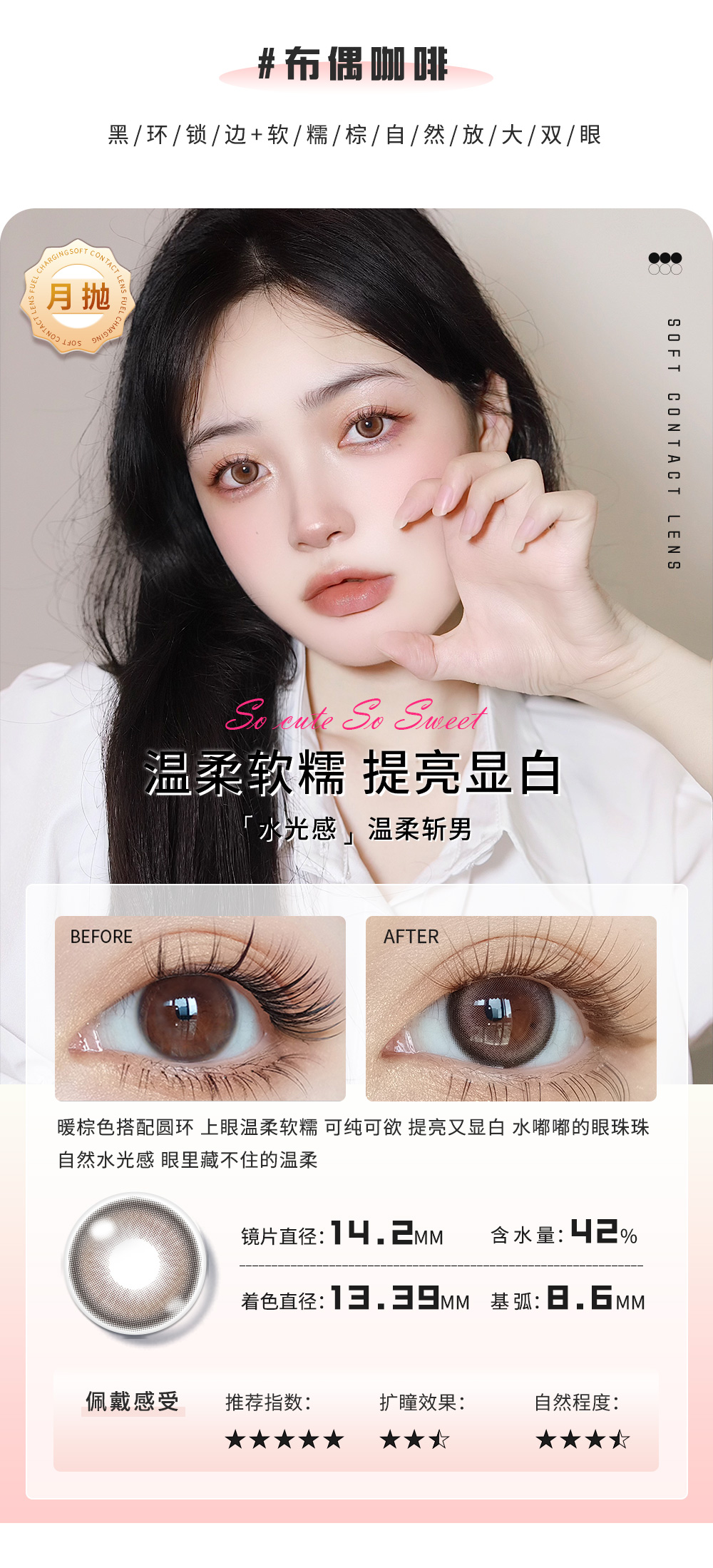 恋爱脑棕色日抛美瞳2片装 14.2小直径YR04不同度数拍二
