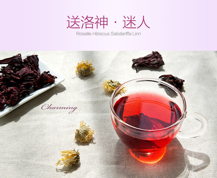 洛神花茶清热利尿、生津止渴、理气消食,能清凉解渴,消除疲倦、调节和平衡血脂、降血压,促进新陈代谢,且能改善便秘,对皮肤粗糙,肥胖者都有帮助。