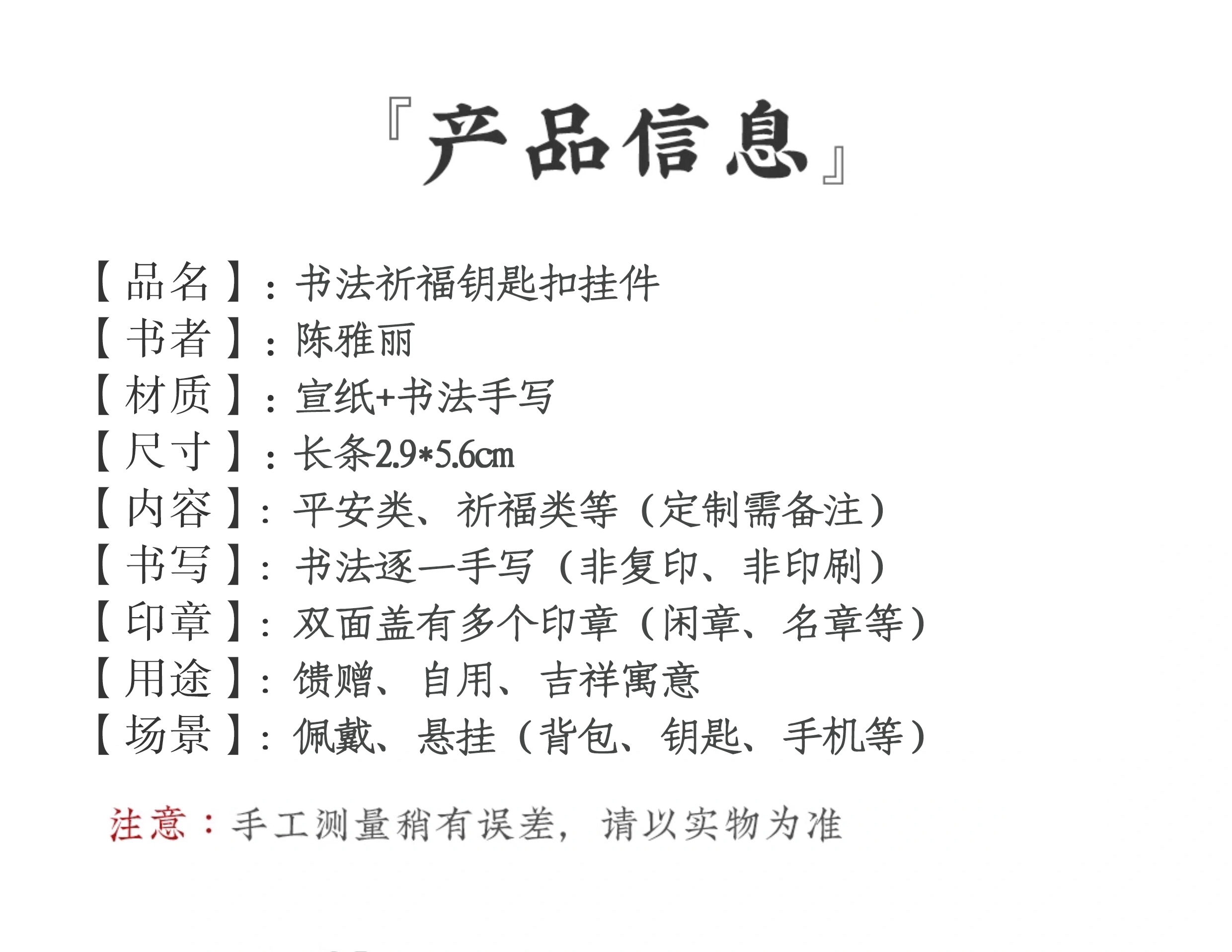 手写祝福-钥匙扣国风平安祝福礼品挂件 3*6cm