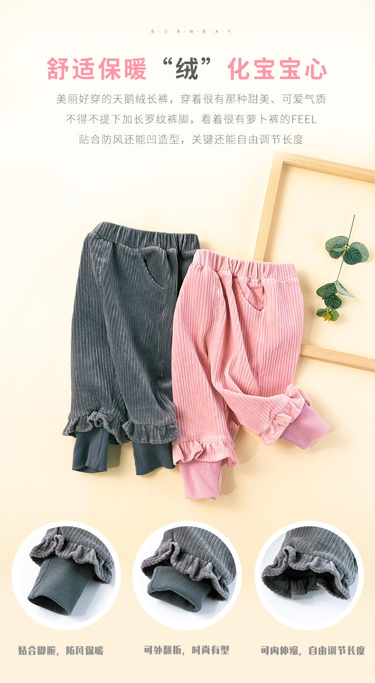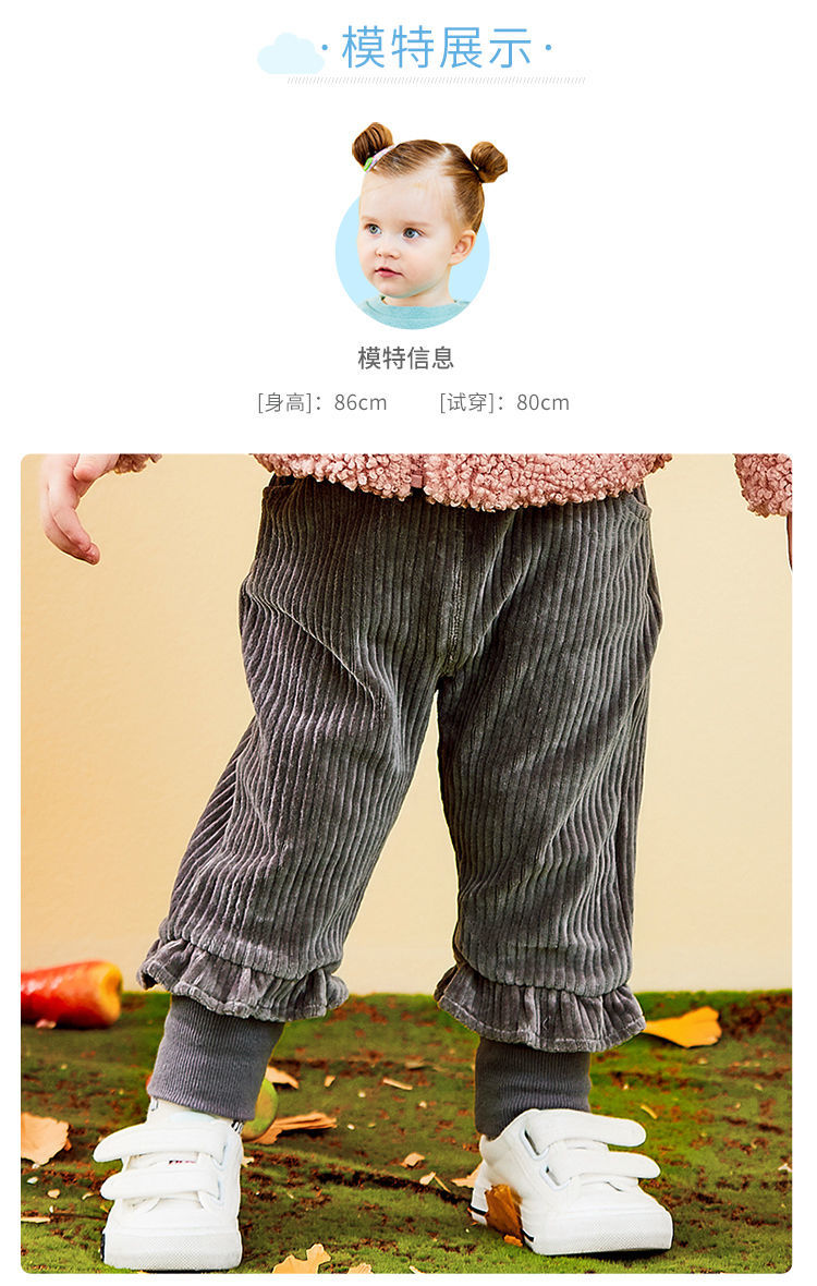 贝贝怡宝宝天鹅绒保暖长裤女童裤子儿童秋装女新款洋气松紧腰加厚213K2232