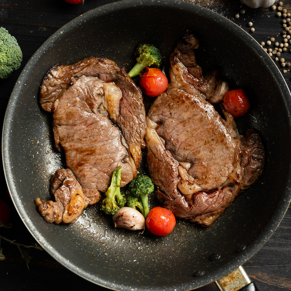 牛排煎制后,请静置醒肉3-5分钟再食用,口感更佳