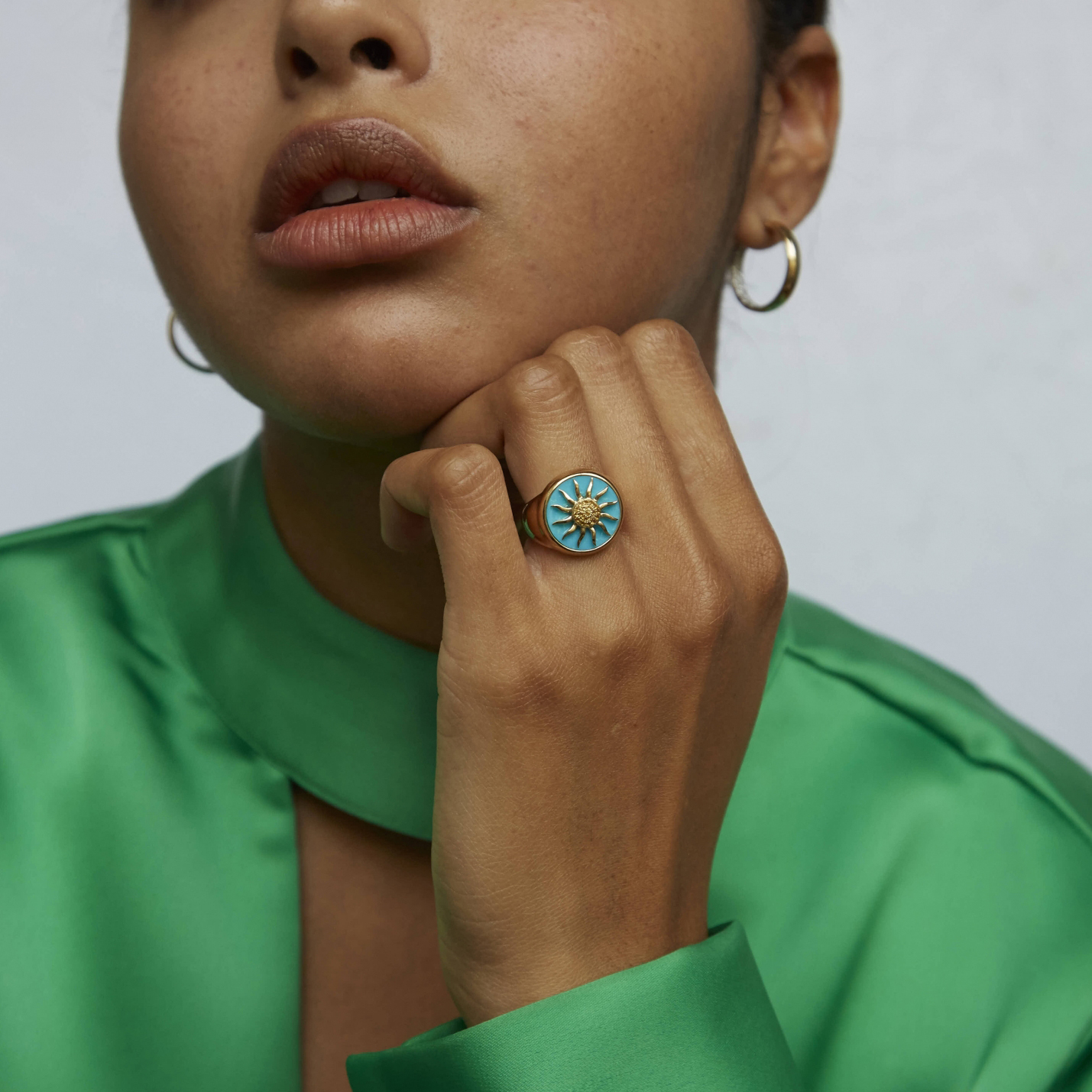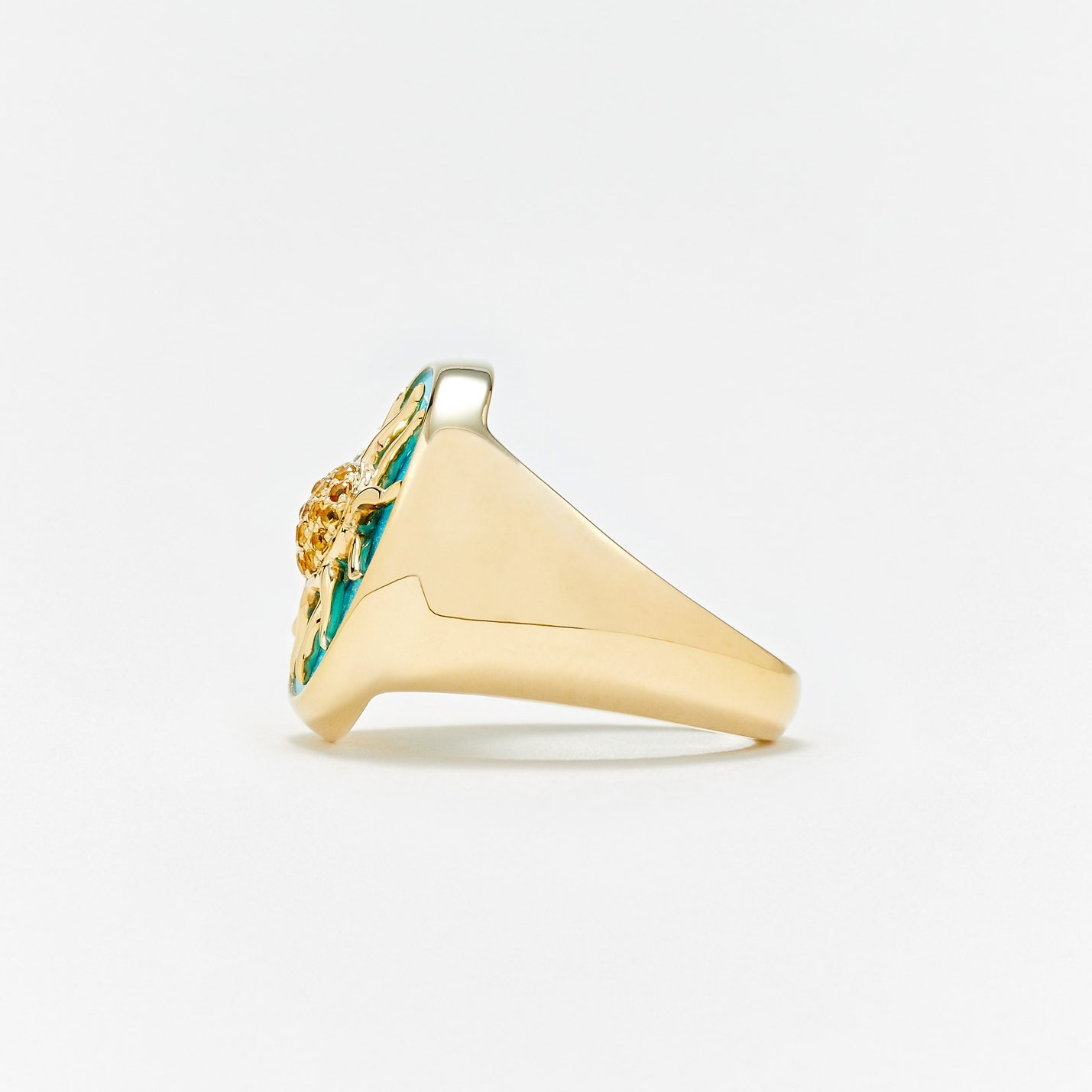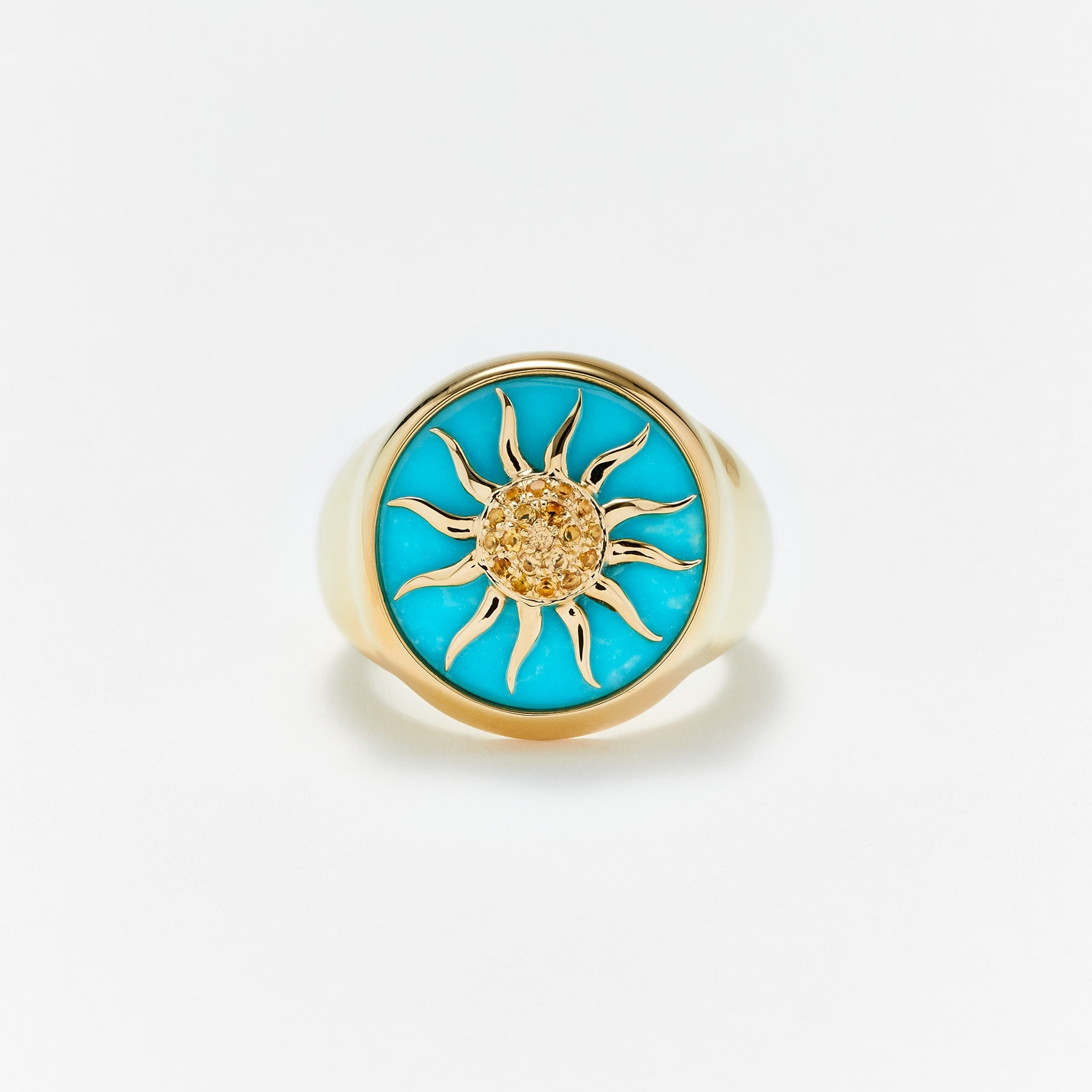 订购10周到|Yvonne Leon-Solar Signet-9K黄金 绿松石 戒指[法国设计师]