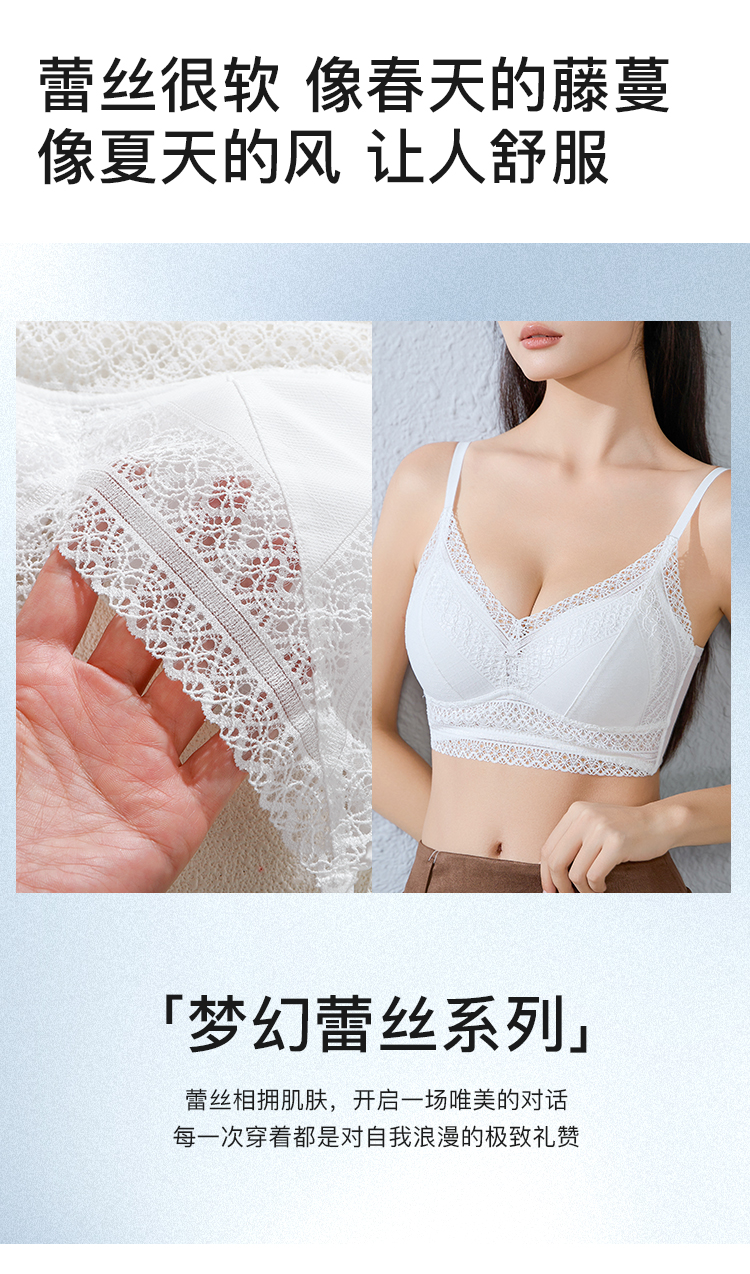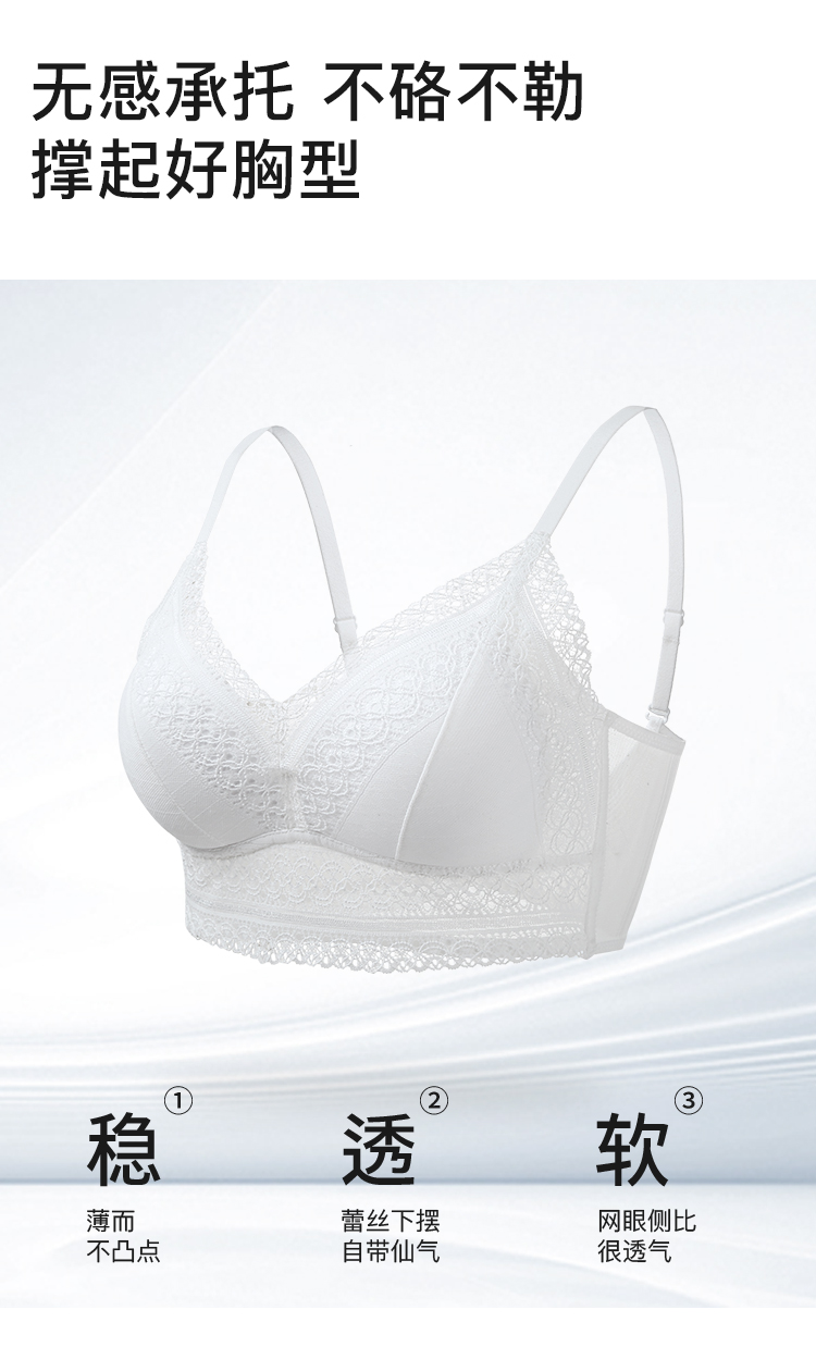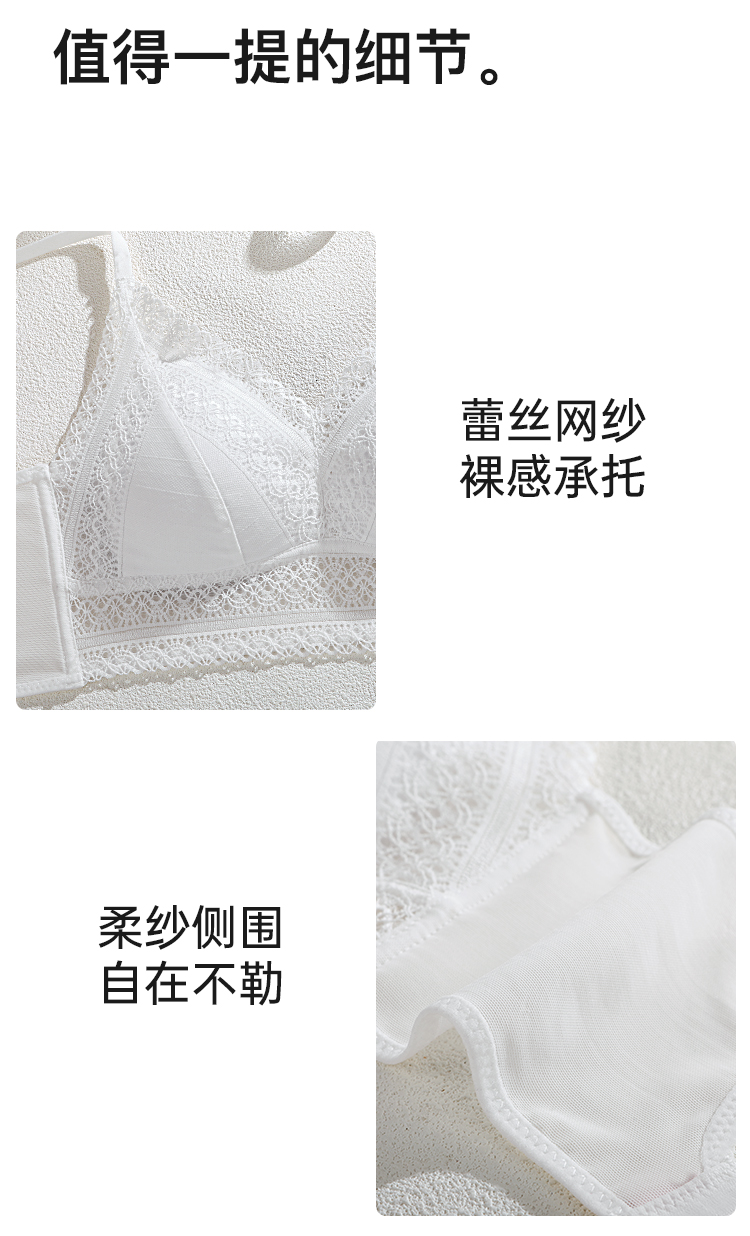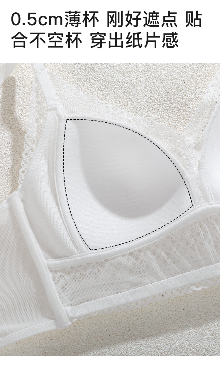 A2--💟【A-C】【法式三角杯】性感网纱蕾丝小胸聚拢不空杯夏薄款美背内衣女文胸 粉鸢星动