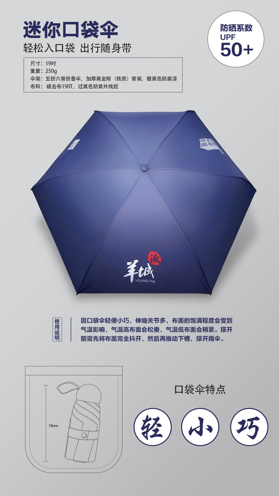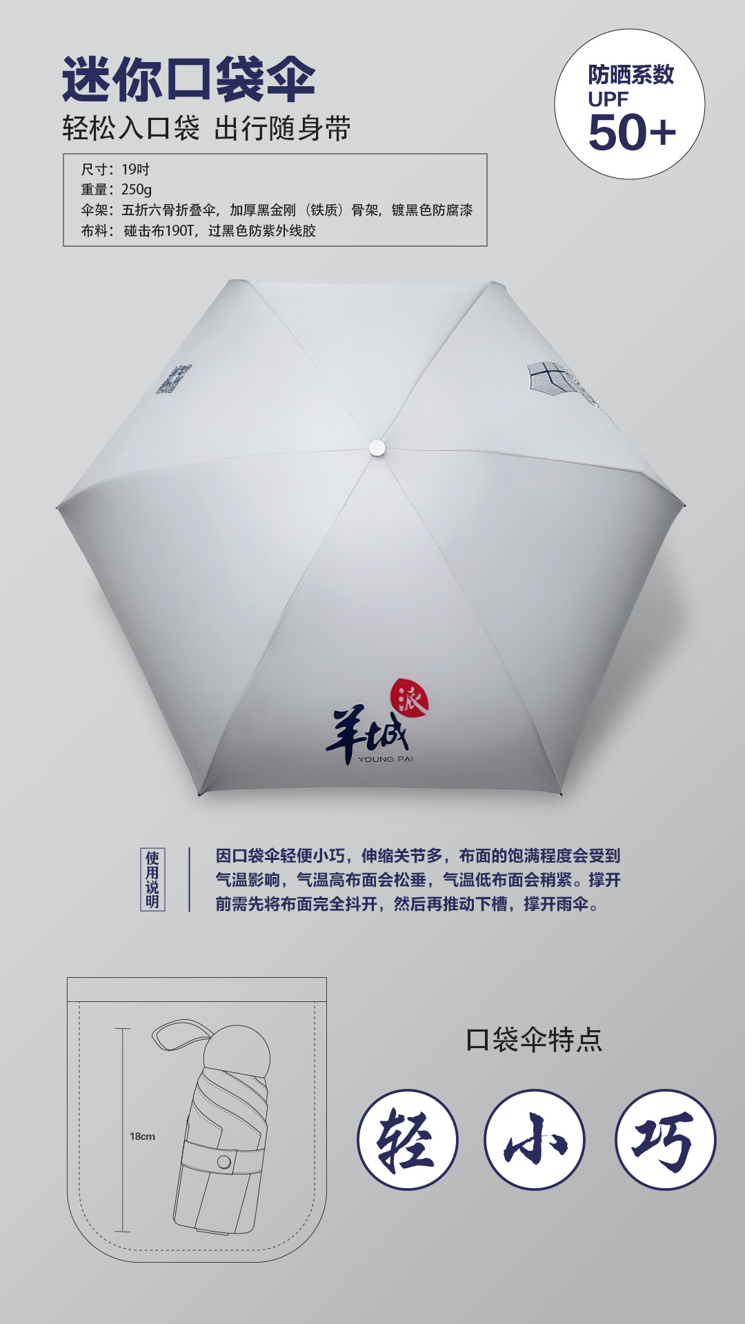 羊晚文创 | 羊城晚报 迷你口袋伞便携防晒伞 岭南数字创意中心“小羊楼”文创