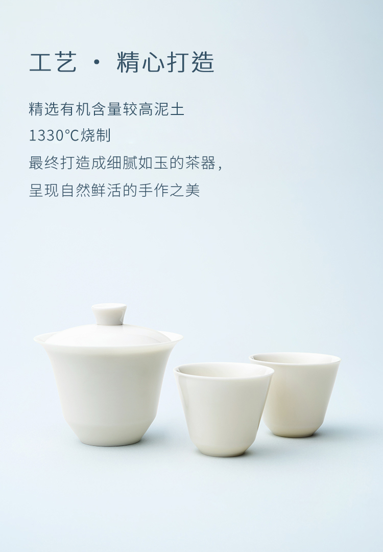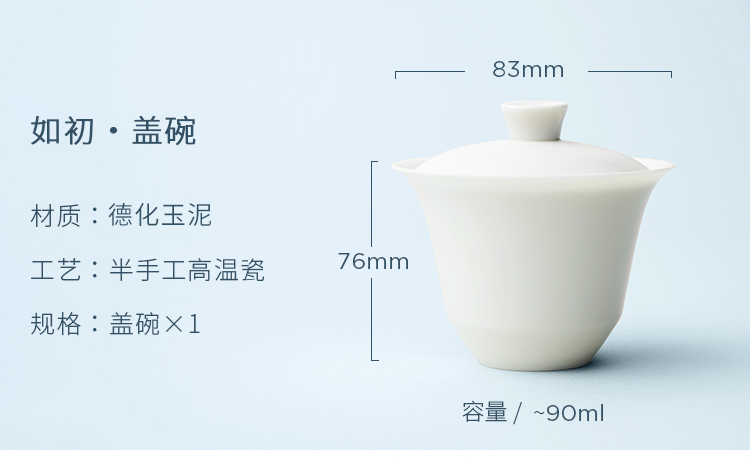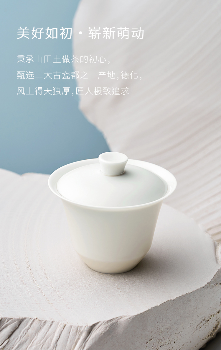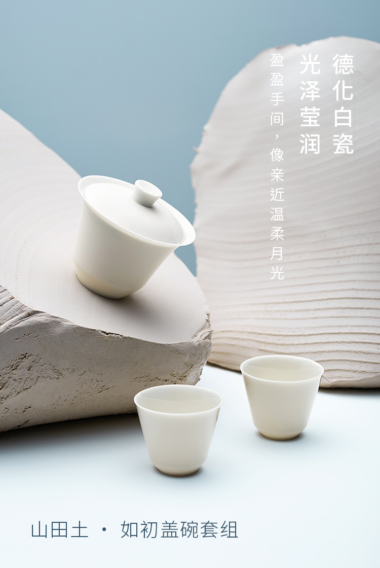 山田土丨如初盖碗套组 德化白瓷茶具 舒适防烫
