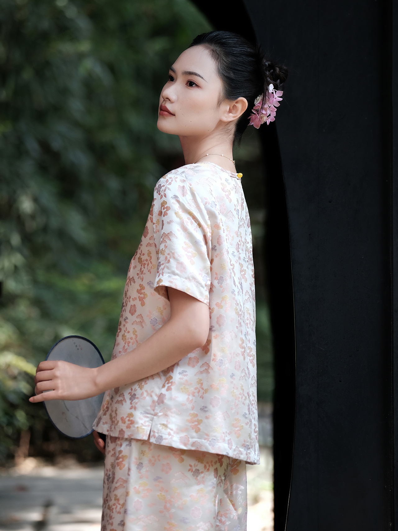盛唐婧 |真丝宋锦朱颜粉黛上衣