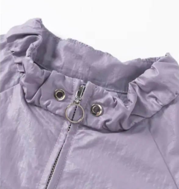 【春上新】【秋季新品】8楼 琳麦罗 LYNN&MILO 紫色微皱油蜡皮感插肩袖短款夹克
