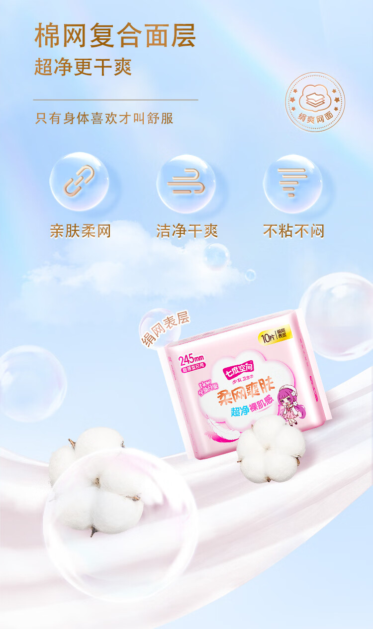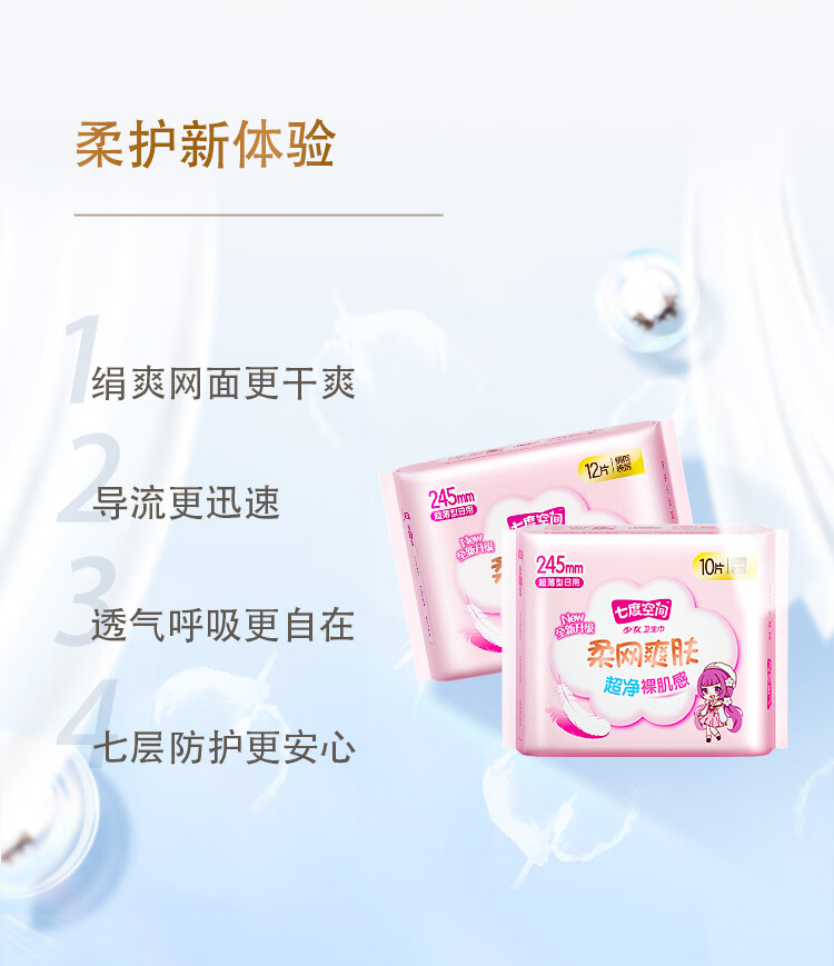 七度空间少女新超薄网面日用卫生巾10片 QSC7110【20022297】