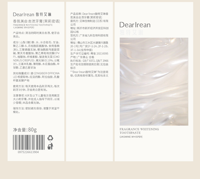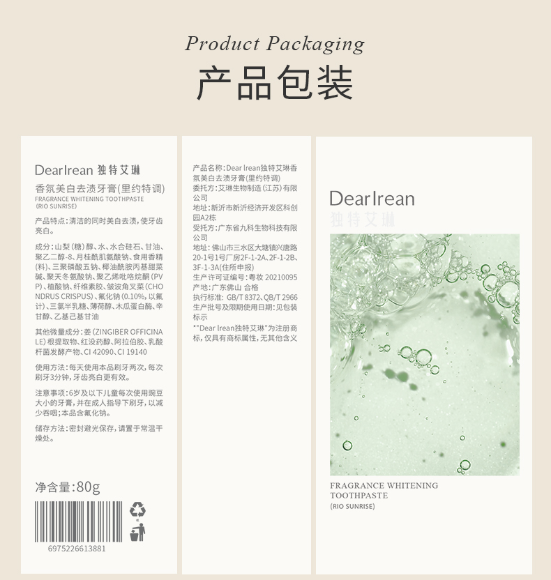 Dearlrean独特艾琳香氛美白去渍牙膏