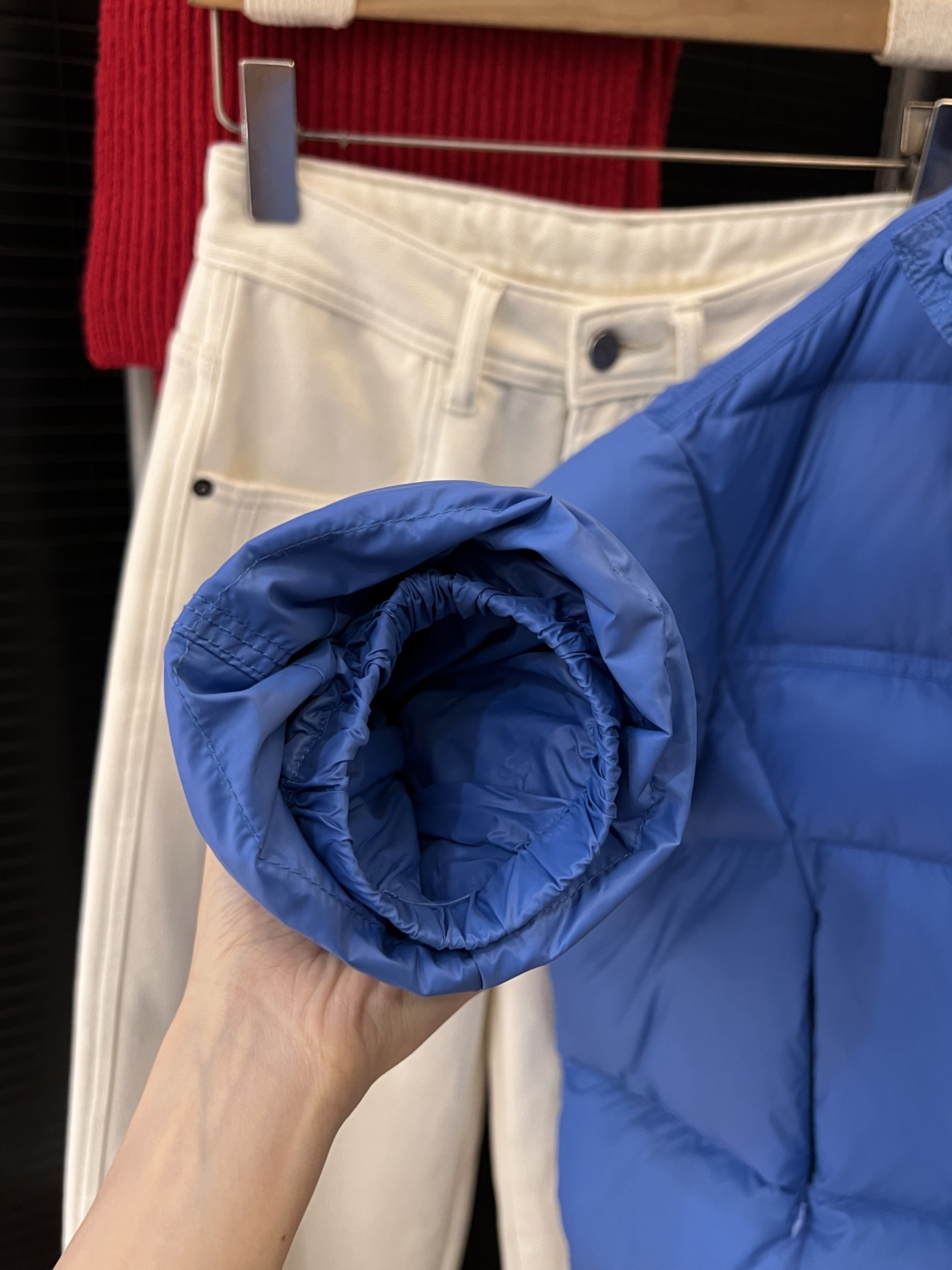 内里全包边,分仓式分格的定点充绒➕锁绒针,把绒朵牢牢锁在里面,不跑绒,不露绒。