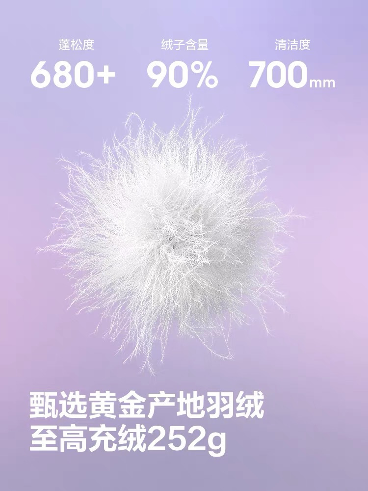 90白鹅绒填充,肉眼可见蓬松酥软,穿上即刻暖和,秒变小火炉。
