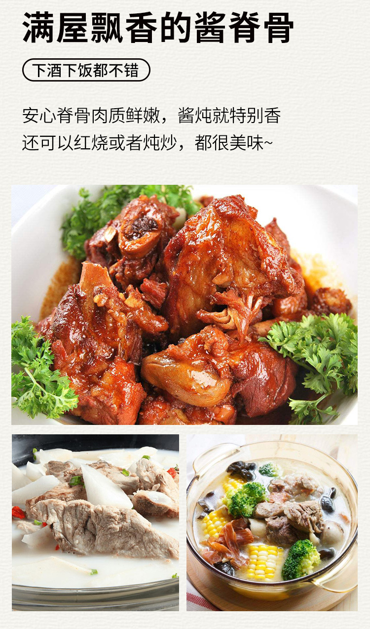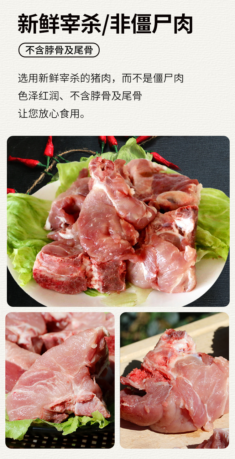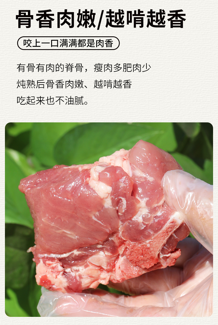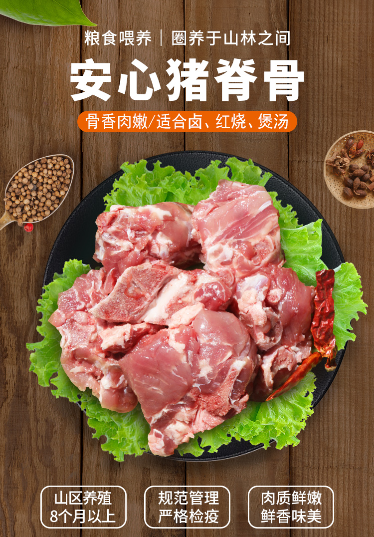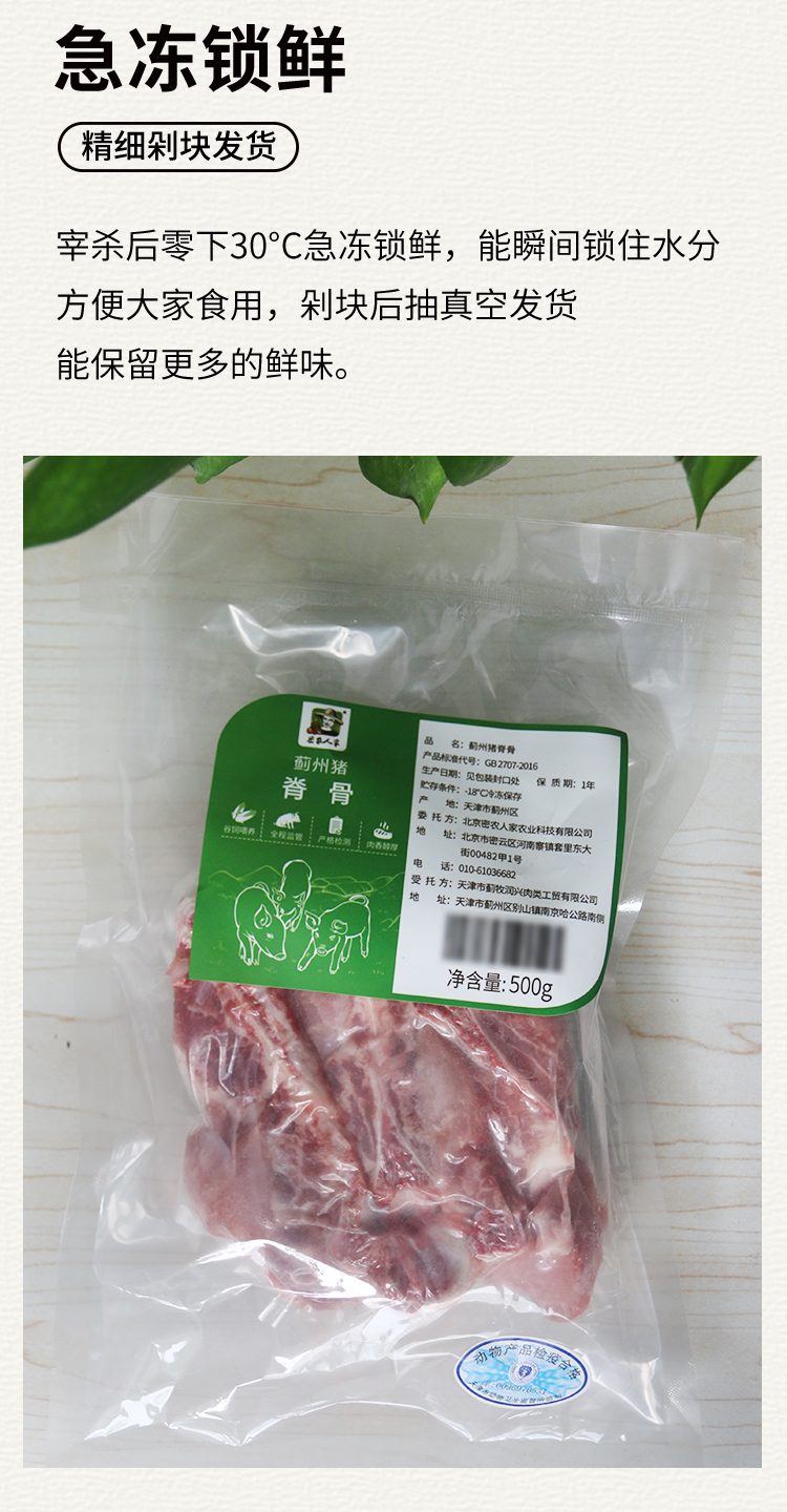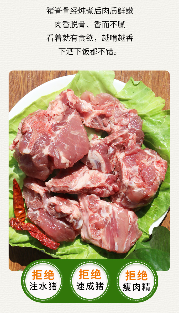 【3份包邮】安心猪脊骨 无抗慢养粮食猪 排骨 猪龙骨 腔骨 急冻锁鲜 500g