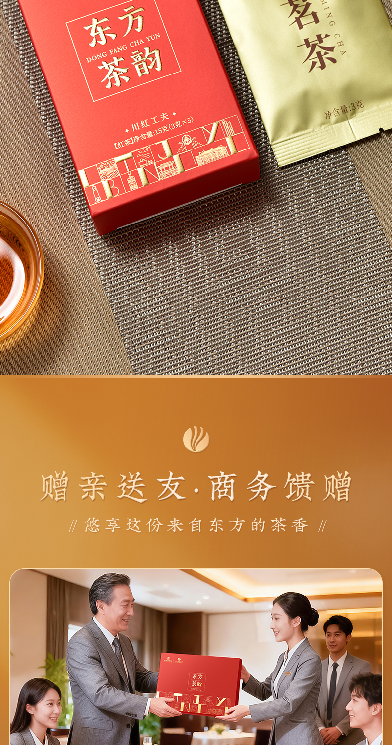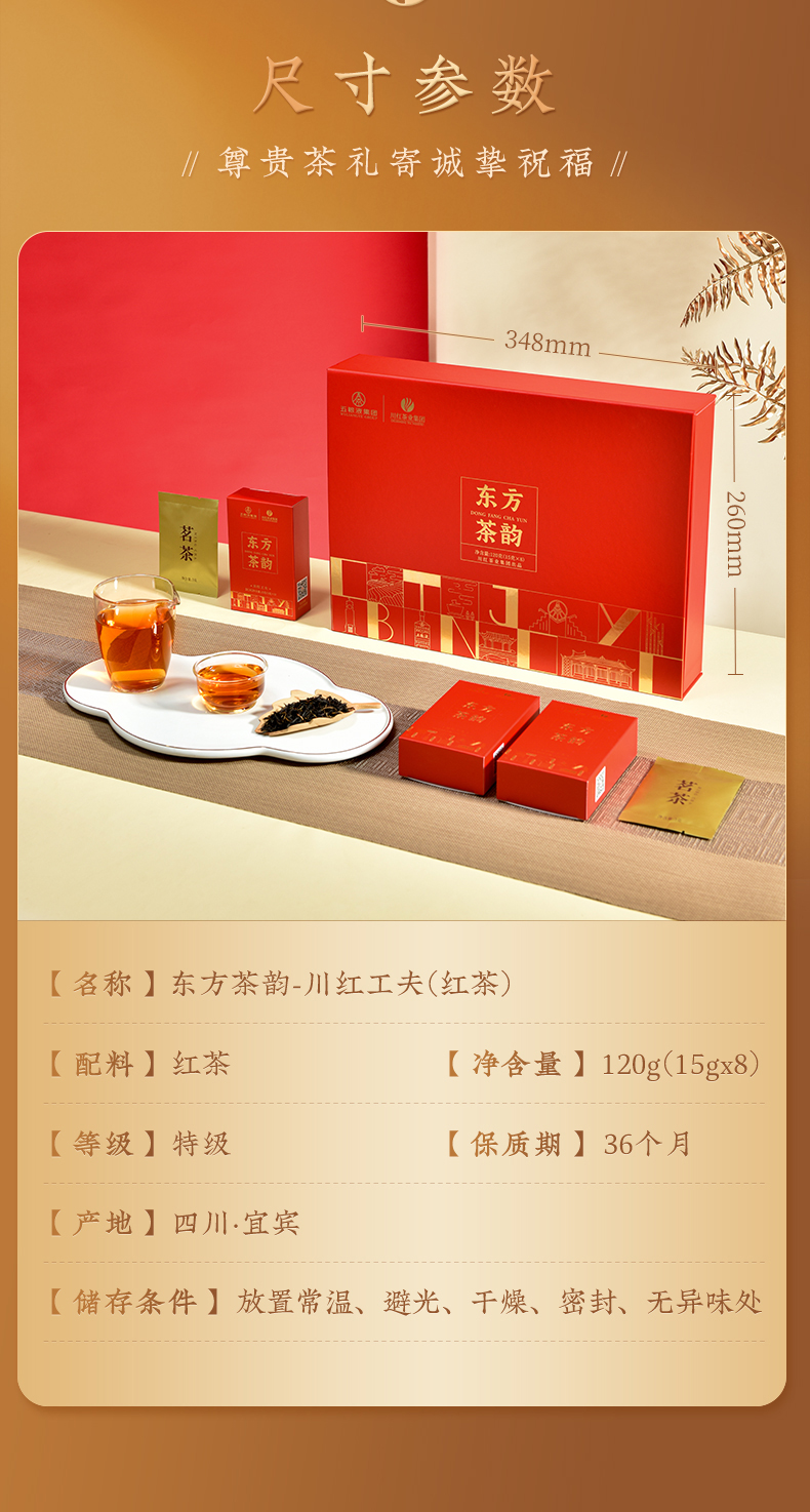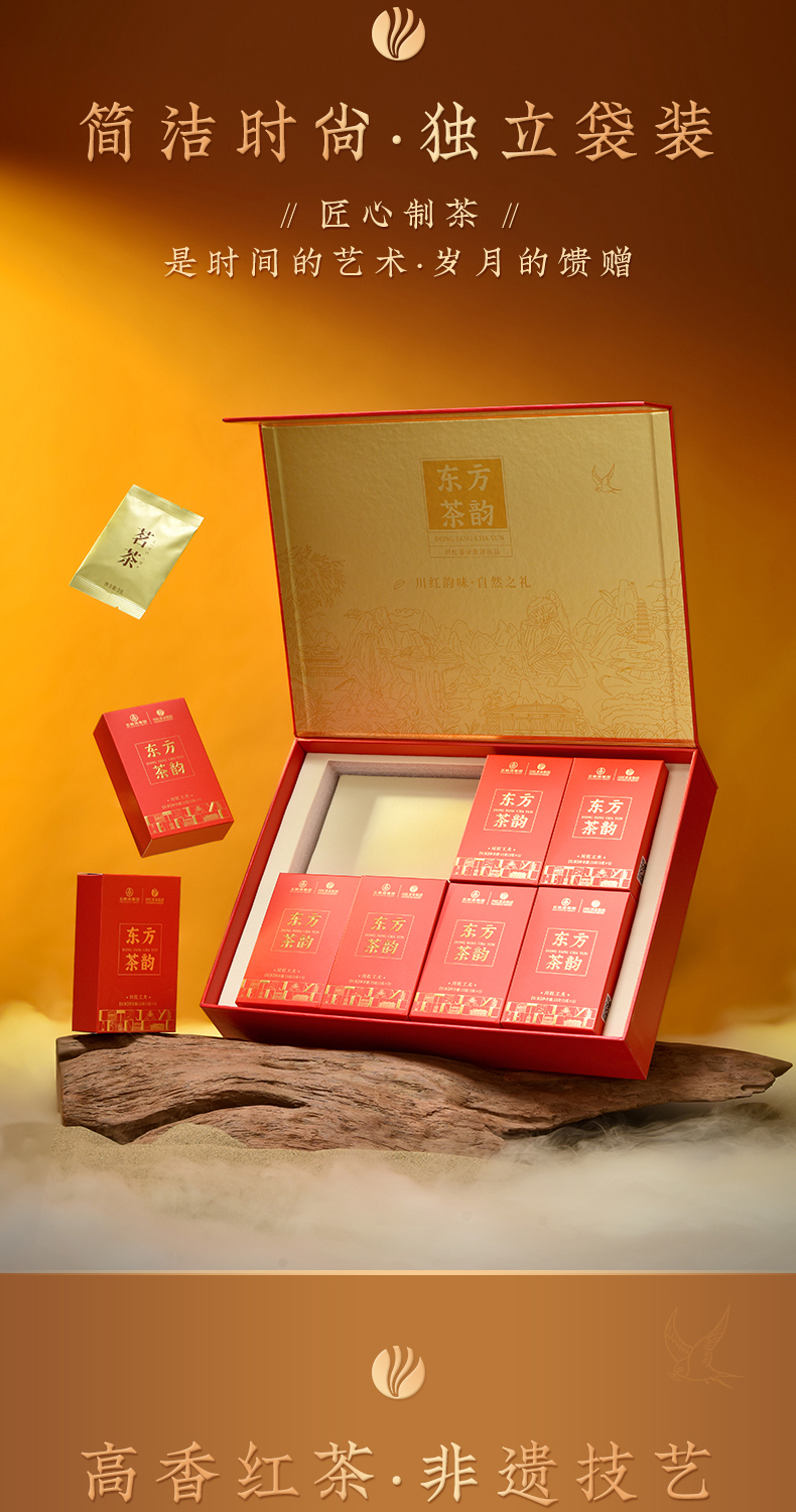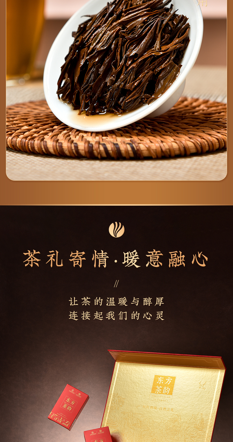 川红茶叶 川红非遗特级工夫红茶金奖85礼盒 橘糖香茶叶250g礼盒内含盖碗茶具