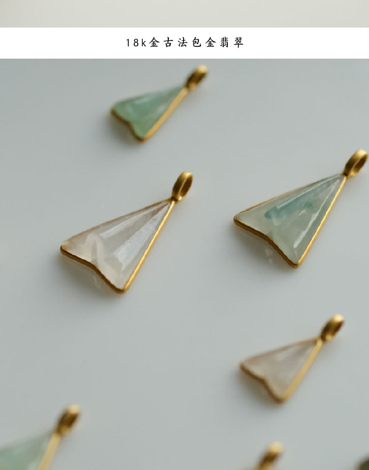 米马饰物 18K金包镶 天然冰种翡翠飞机吊坠 冰润通透 一飞冲天