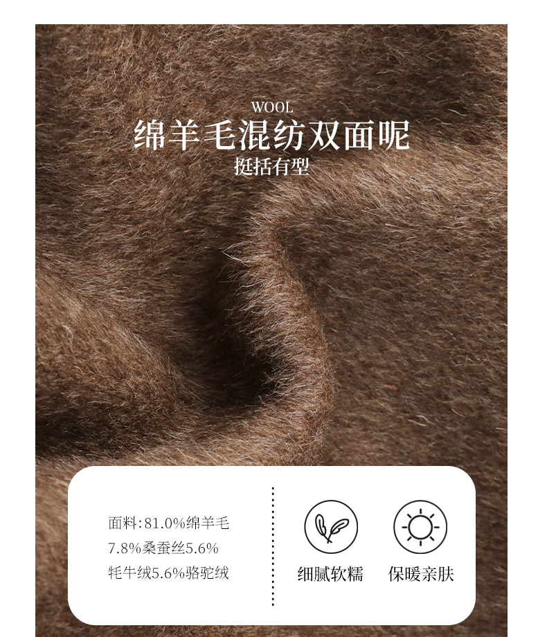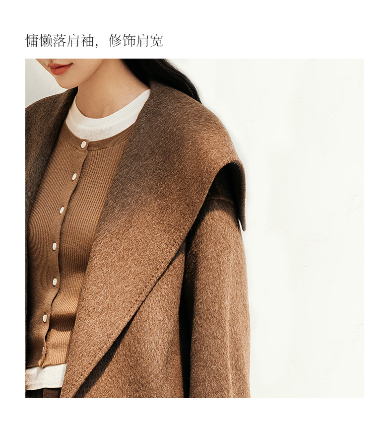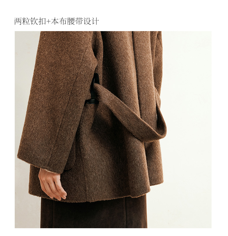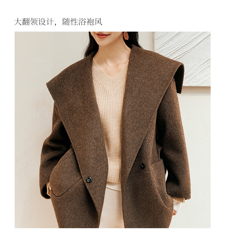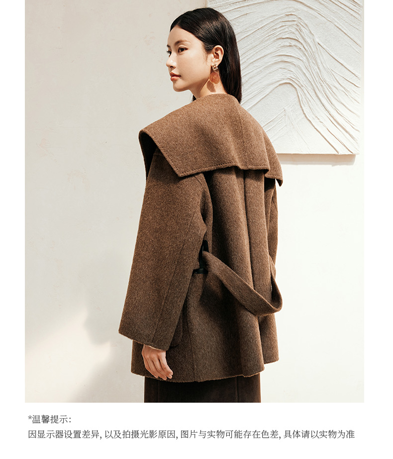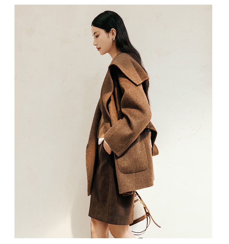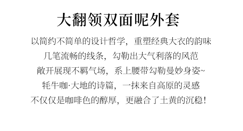 玳莎大翻领双面呢大衣女秋冬新款气质通勤系带羊毛呢外套 ED37307