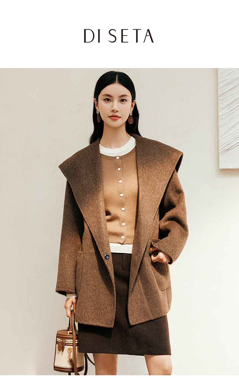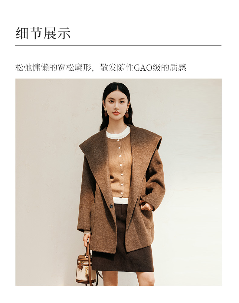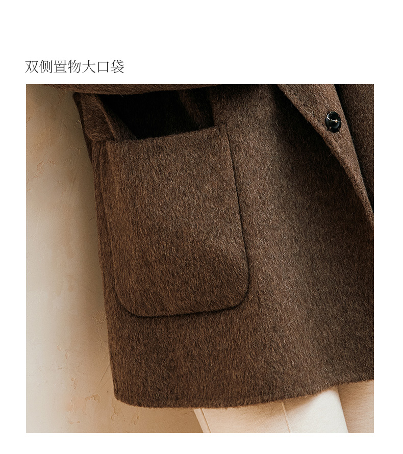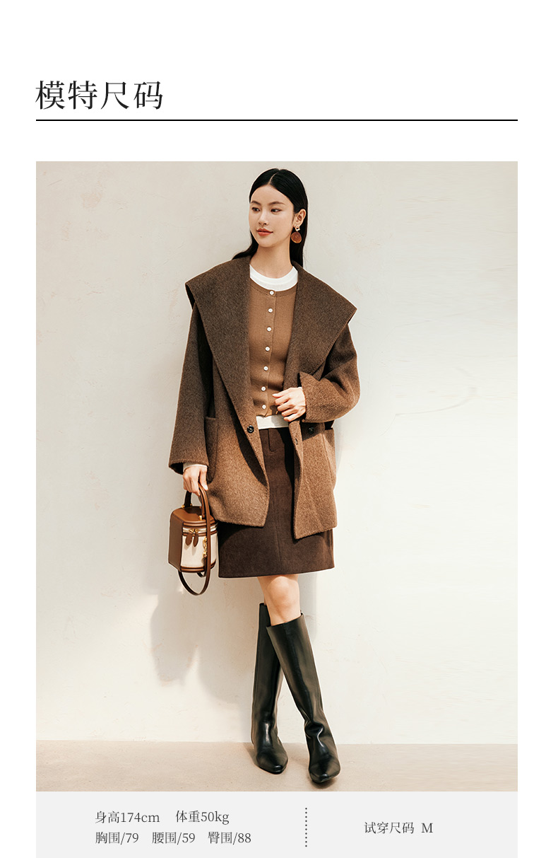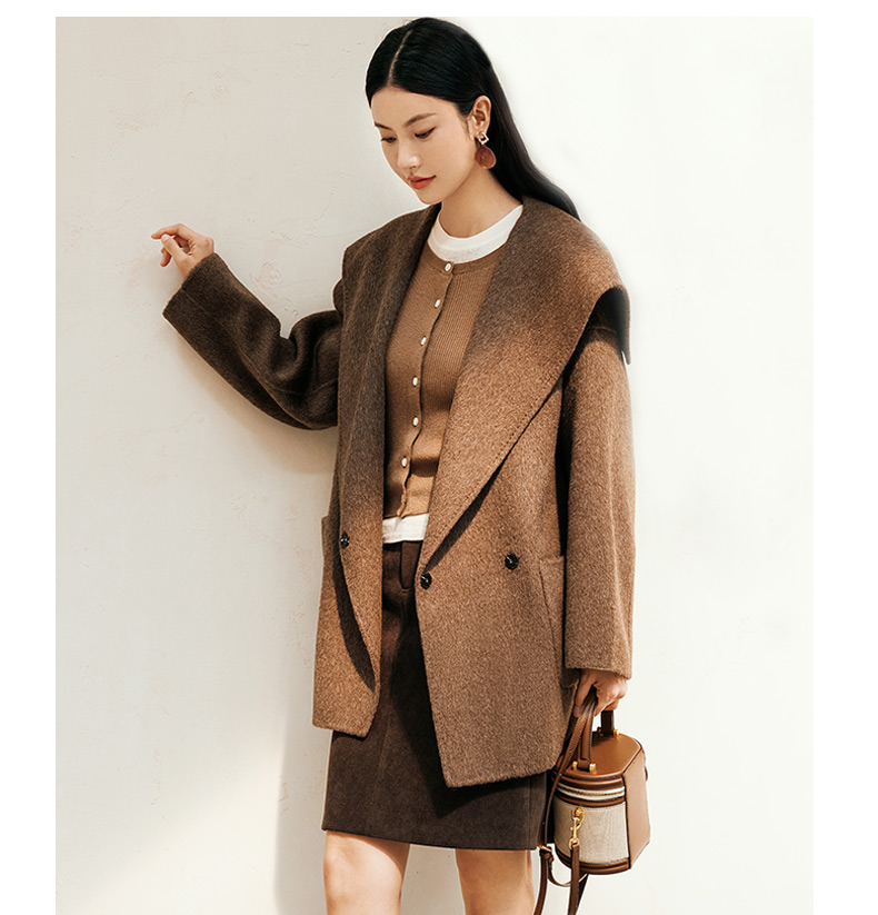 玳莎大翻领双面呢大衣女秋冬新款气质通勤系带羊毛呢外套 ED37307
