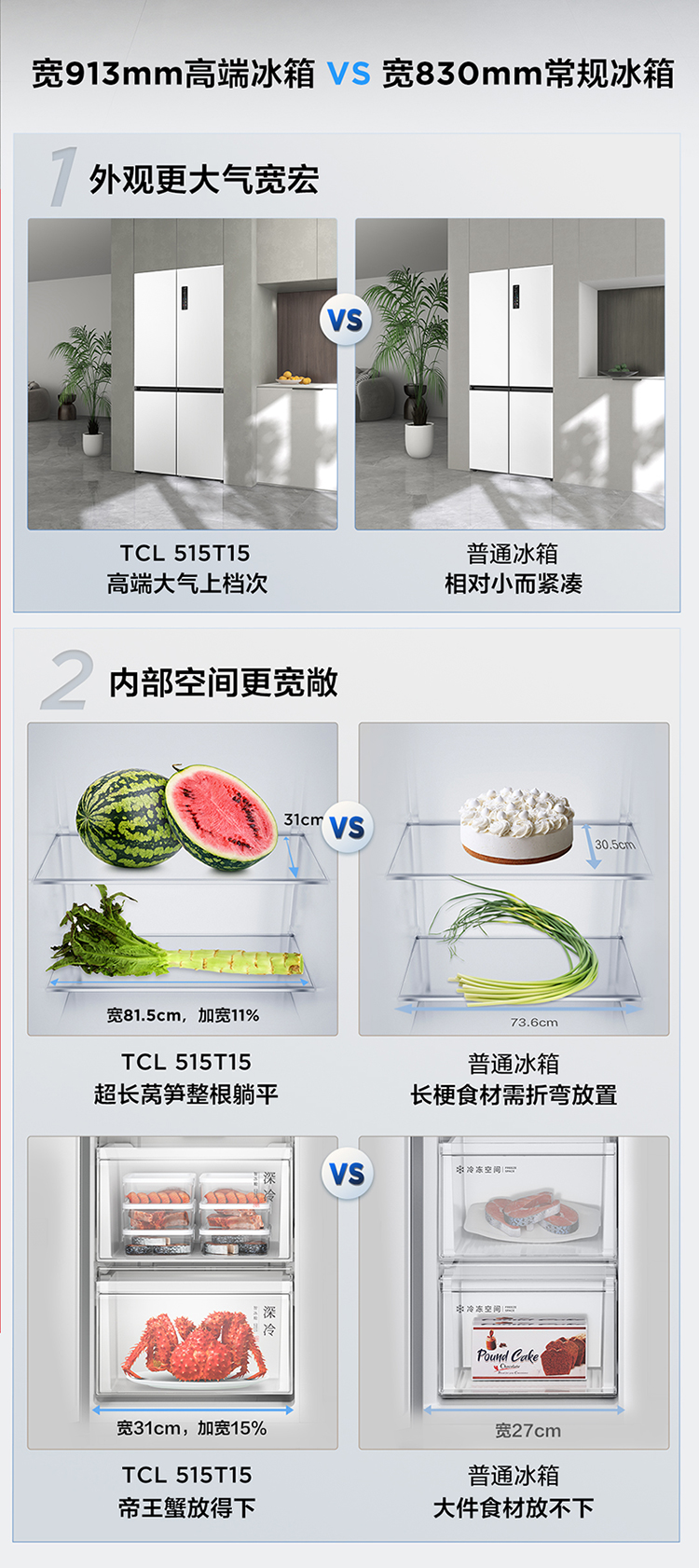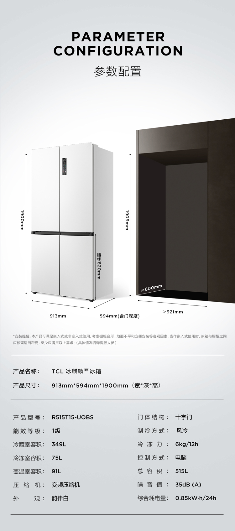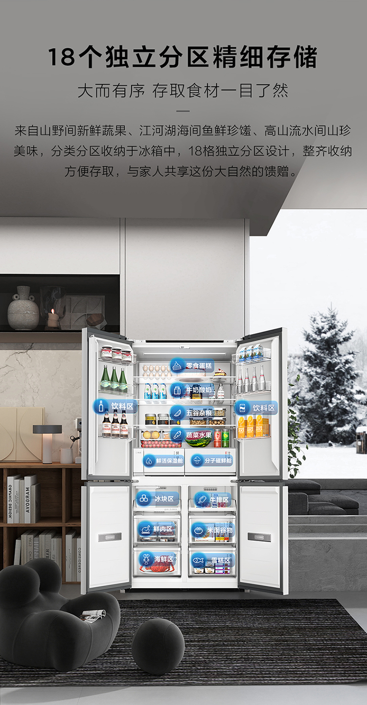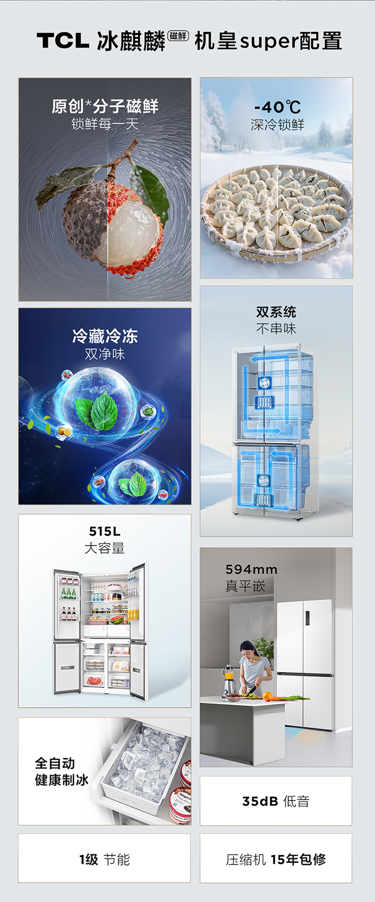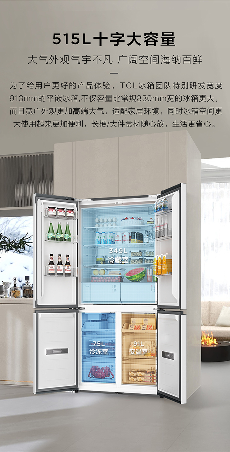 【新品上市】TCL冰麒麟机皇515升十字四门原创分子磁鲜双系统自动制冰超薄零嵌冰箱R515T15-UQBS
