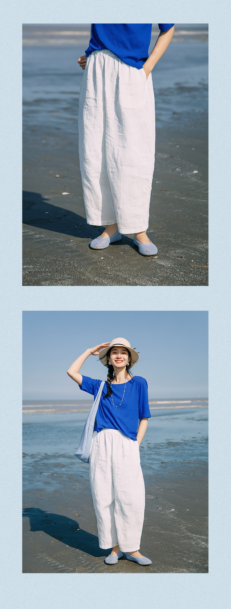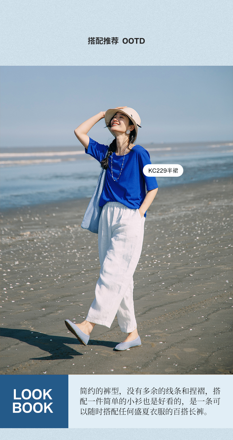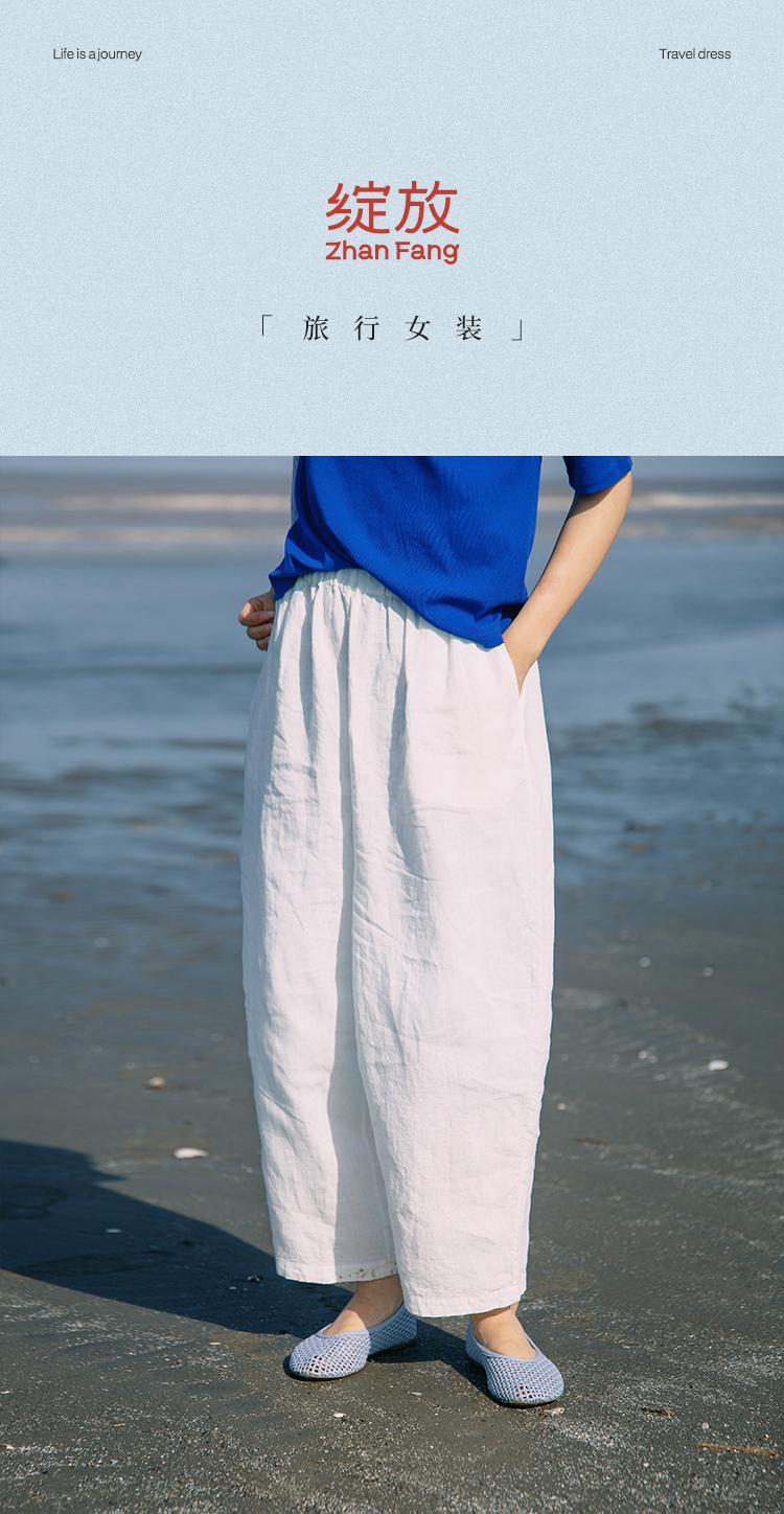 绽放291朵/【入蓝系列】舒适百搭清爽纯亚麻显瘦直筒休闲裤女夏季