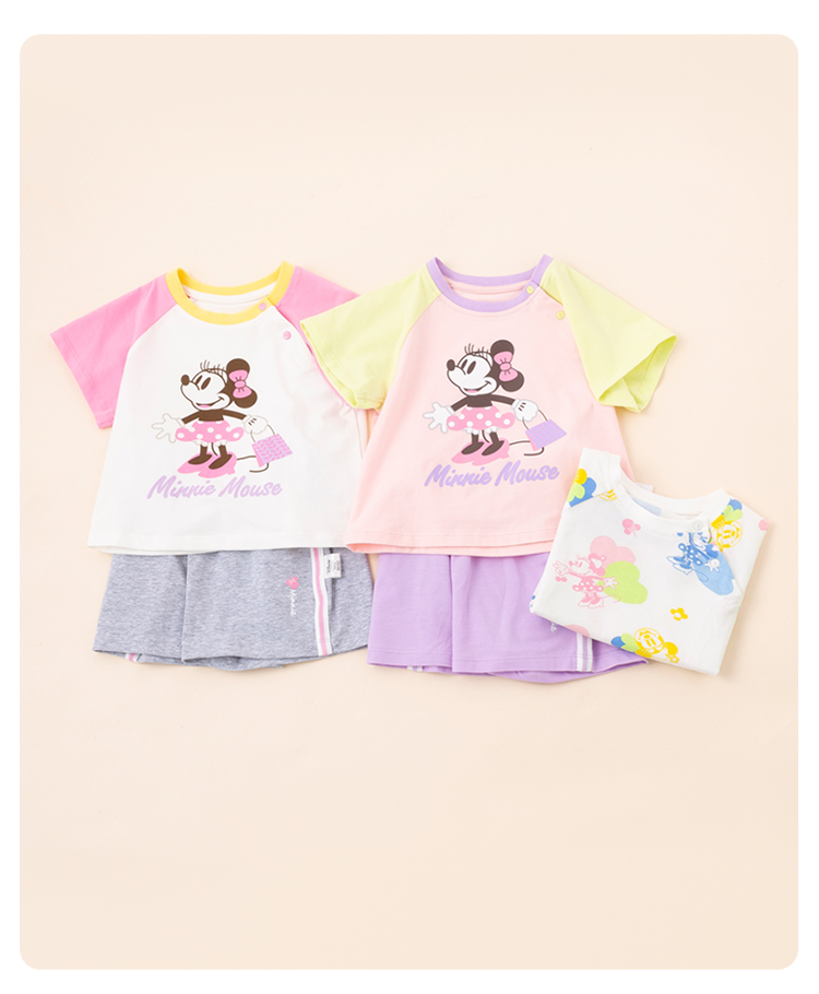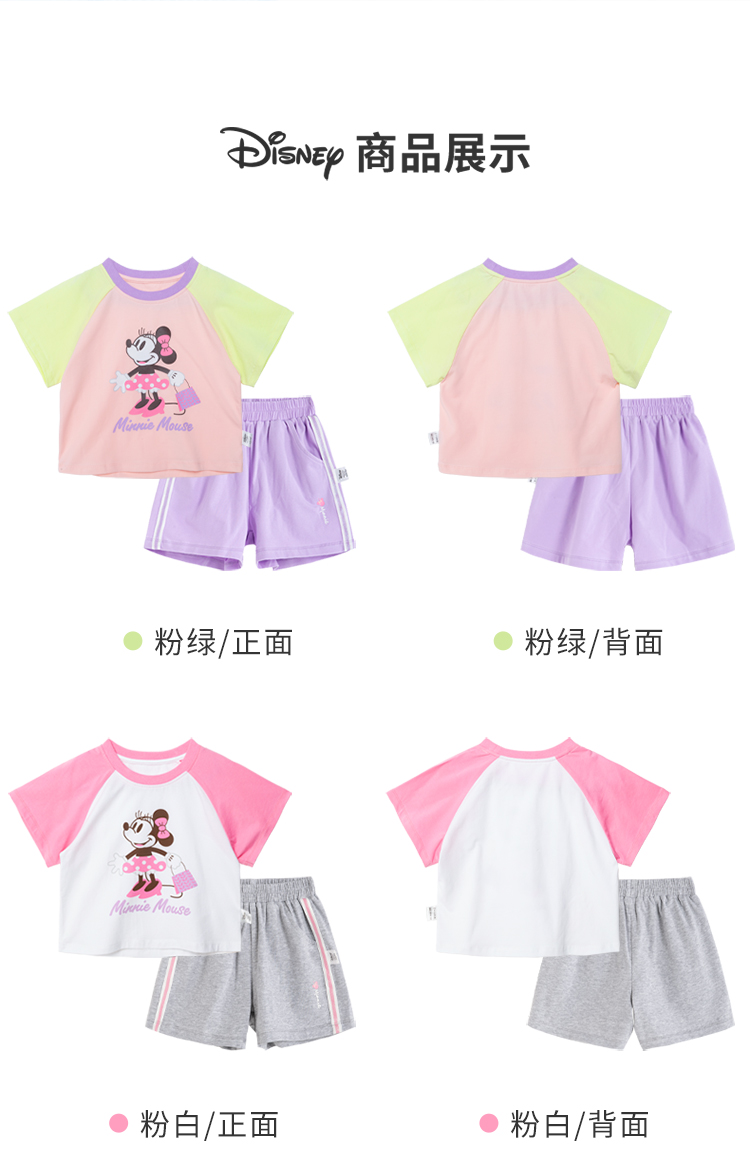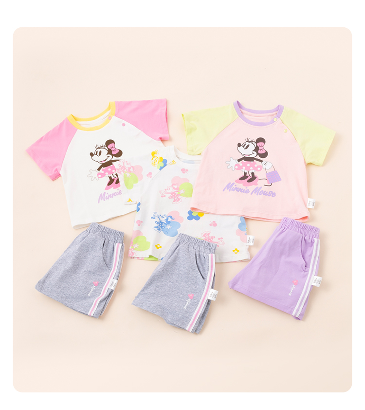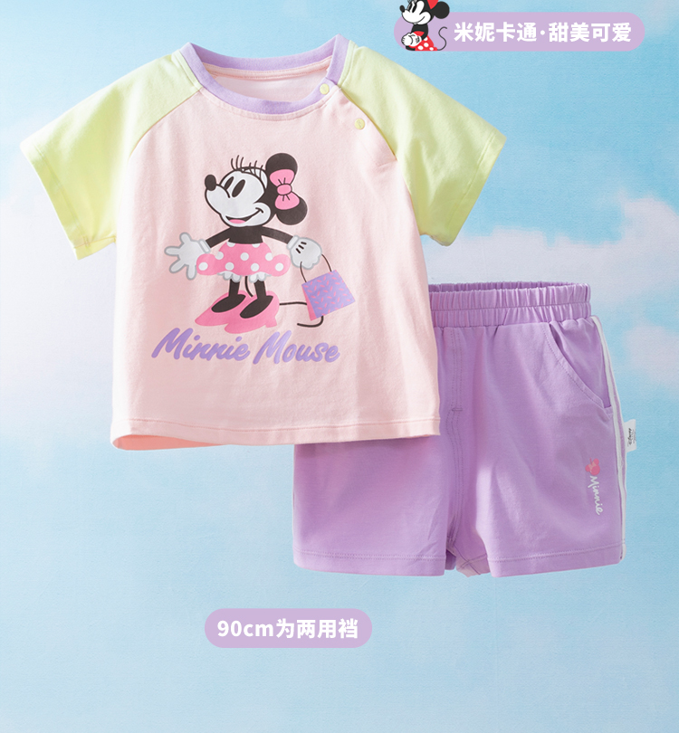 【商场同款】迪士尼童装女童甜美米妮短袖短裤两件套装夏季新品中大童清爽套装222DT0141