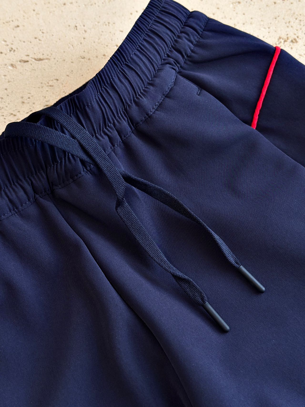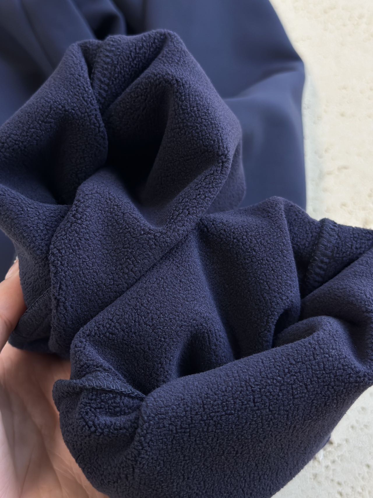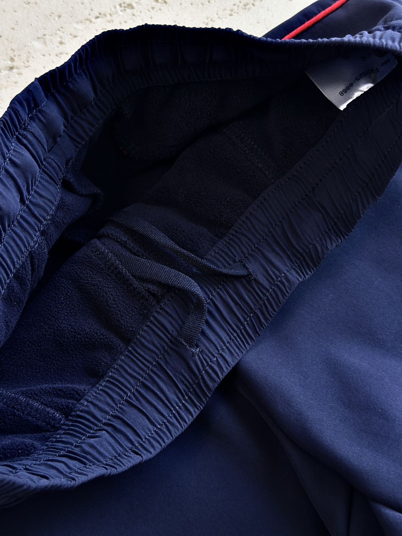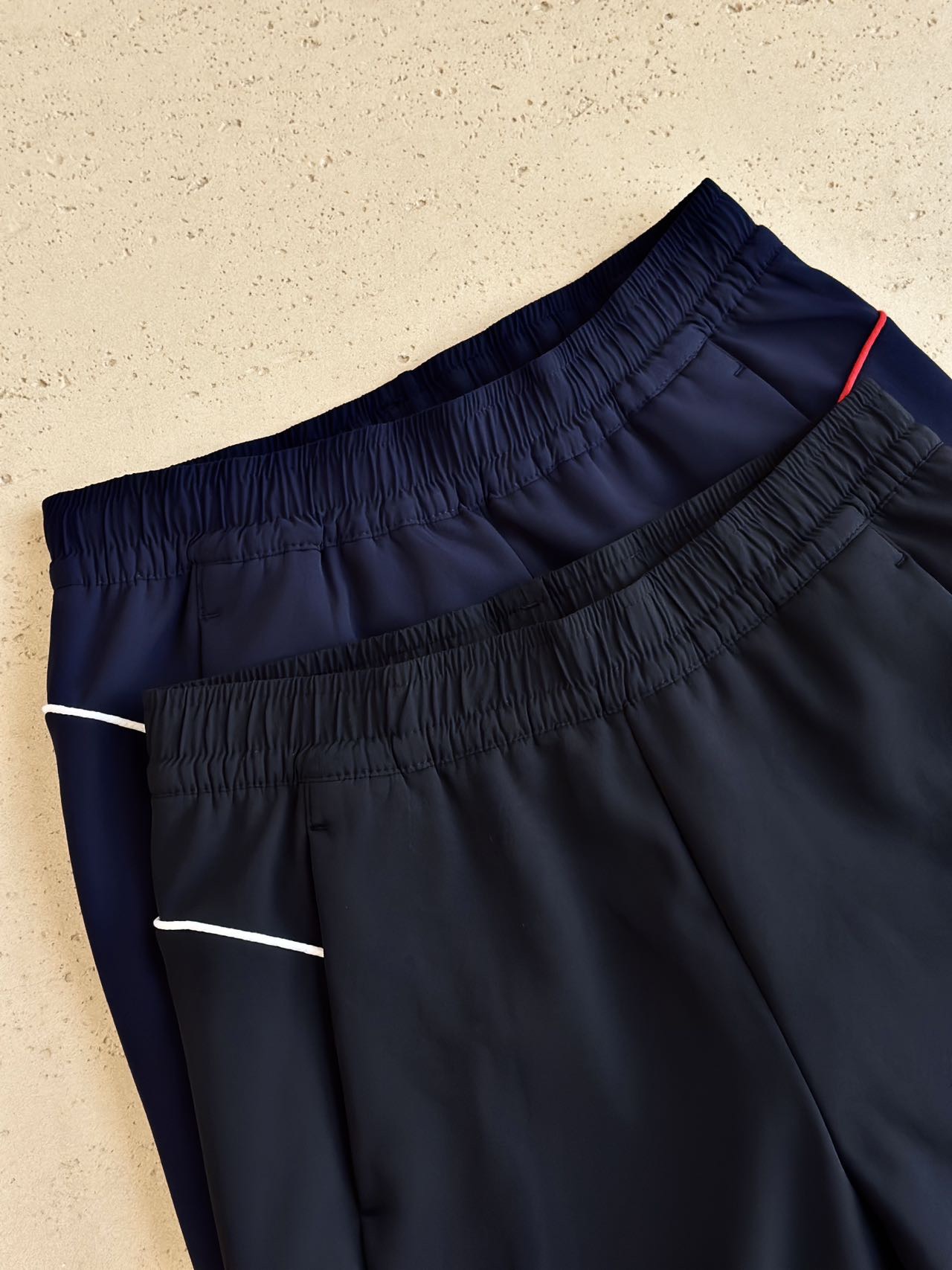整体面料质感厚实且富有韧性,是有弹力的那种!作为运动裤非常好穿!并且面料自带硬挺度,一点都不垮,看起来质感超nice