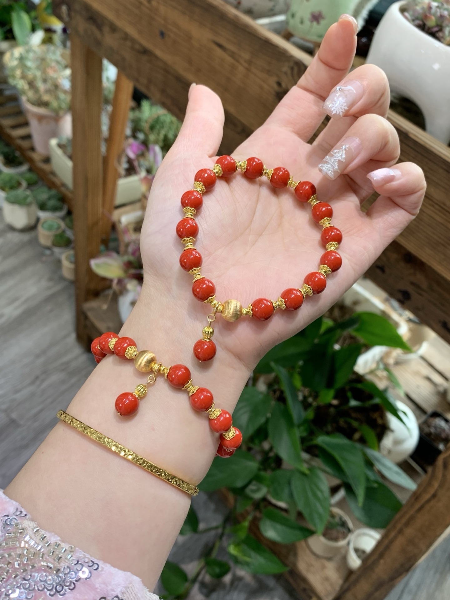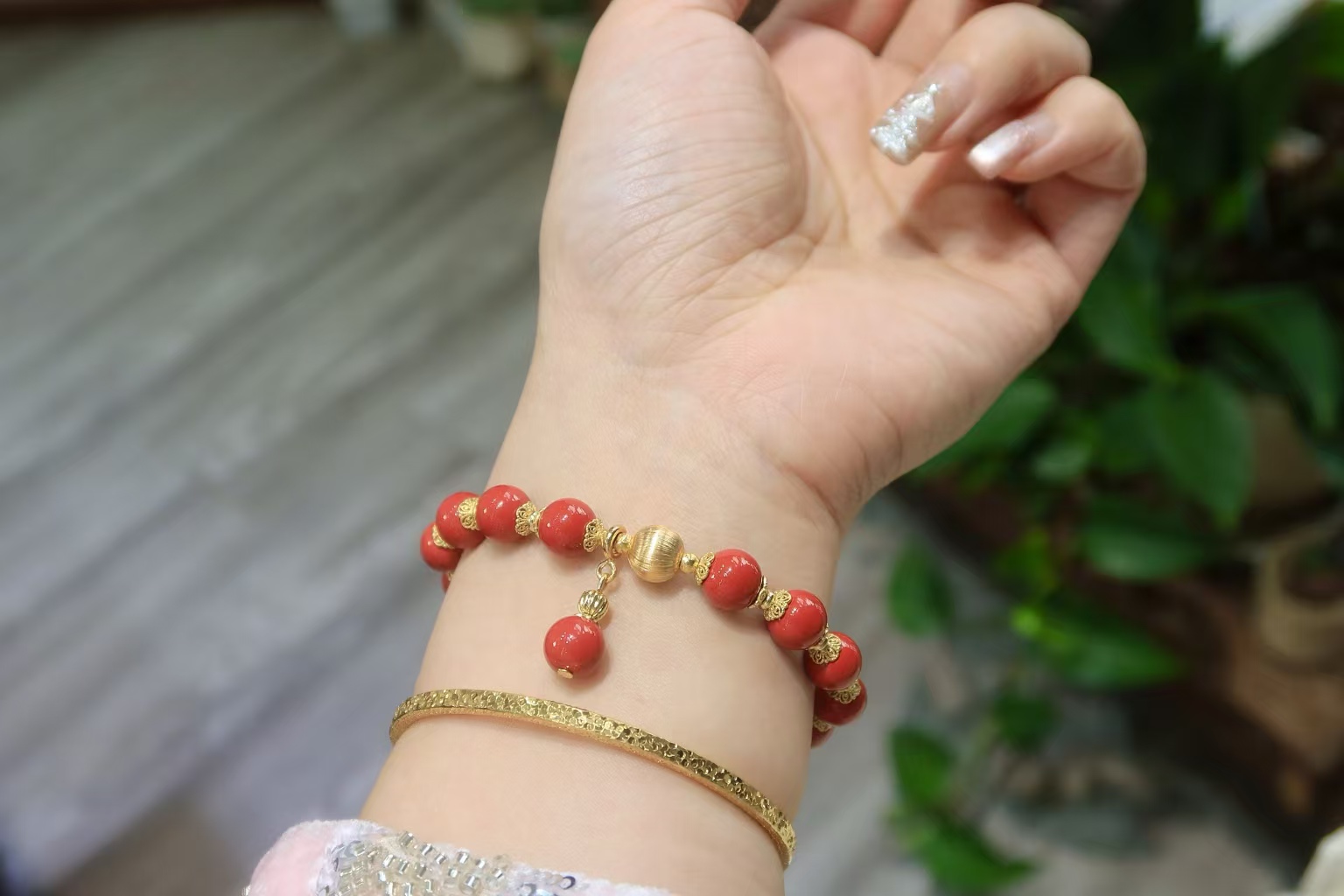 【福禄安康🌟】“朱”事顺意原创设计款,天然精品红砂单圈手链,尺寸:8mm,朱砂含量高达96%,越带越亮。朱砂自古至今都有币邪当煞,祈财纳福的寓意。搭配:老金工艺配件~