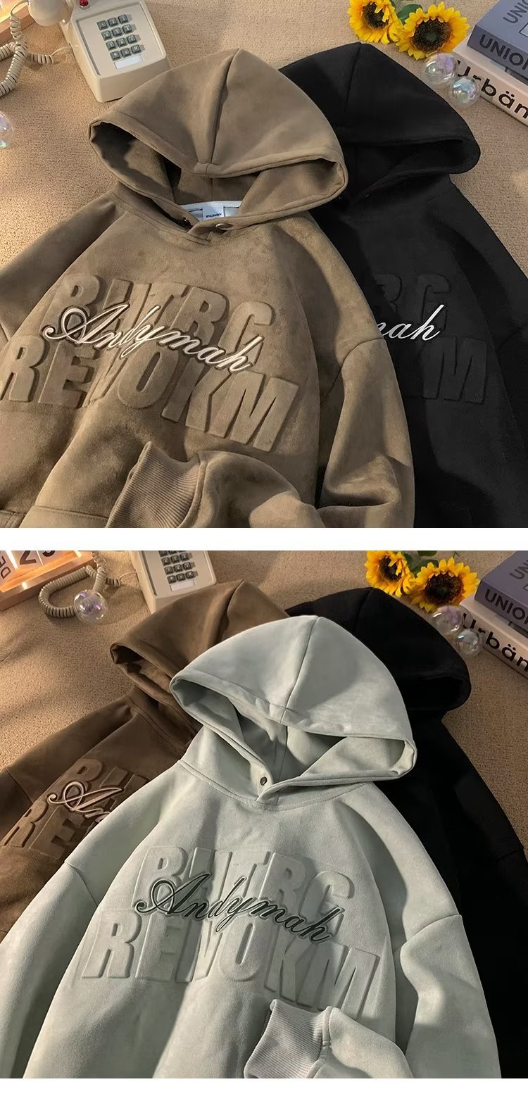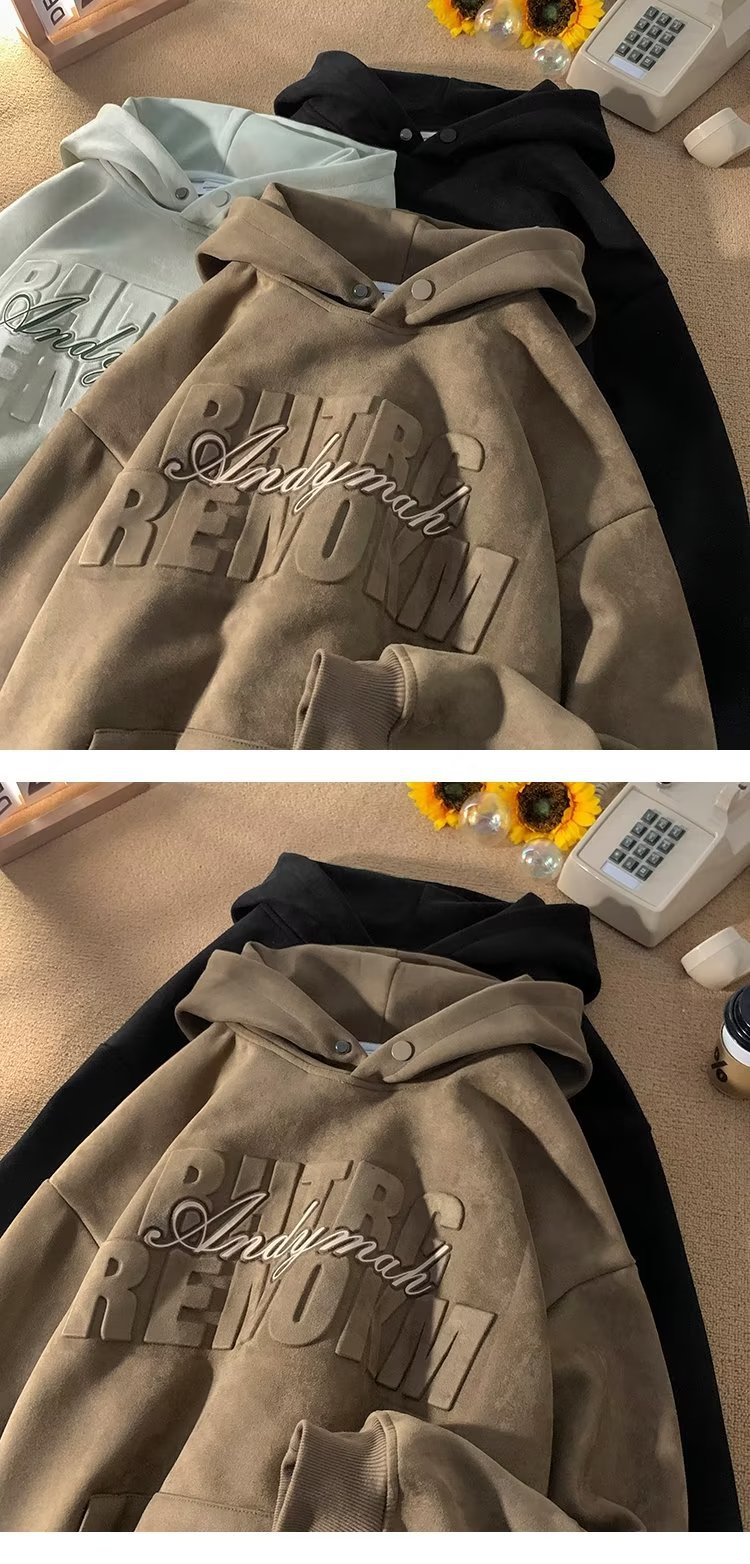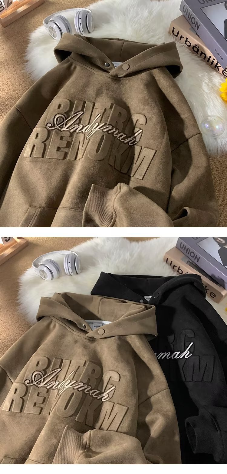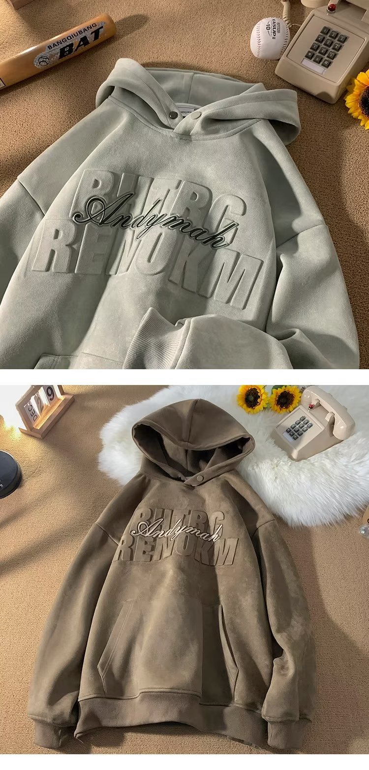 【休闲减龄❗️连帽卫衣】重磅卫衣男女潮牌麂皮绒连帽外套春季新款美式复古宽松情侣休闲套头上衣父亲节礼物新年礼盒年货礼盒