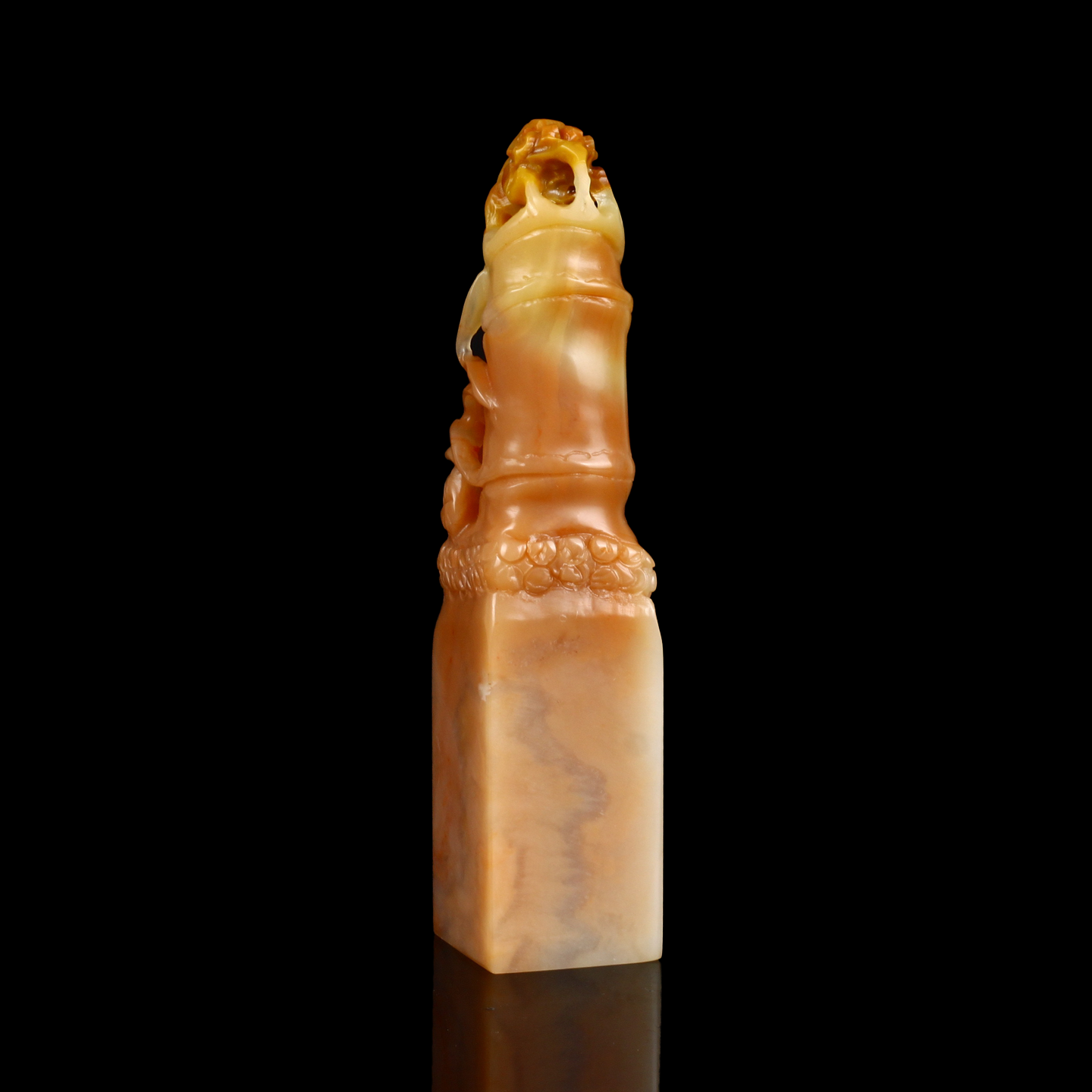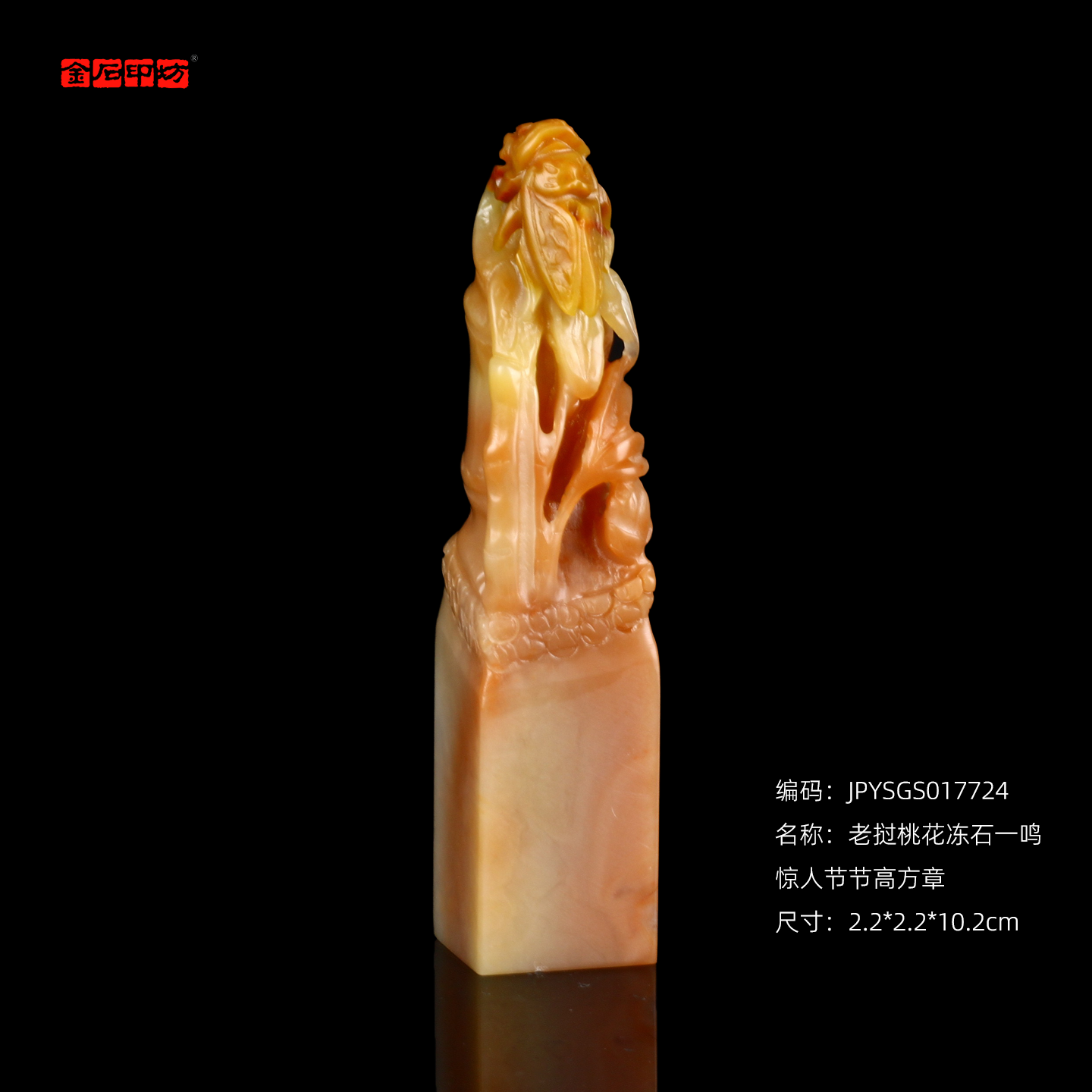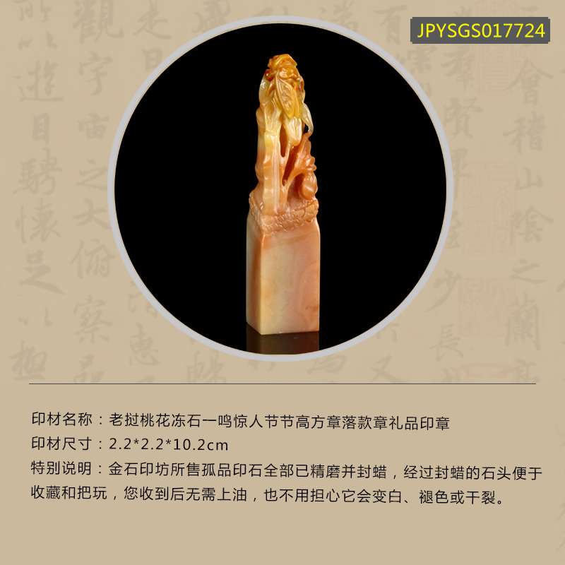 孤品17724老挝桃花冻石一鸣惊人节节高方章落款章礼品印章-2.2*2.2*10.2cm