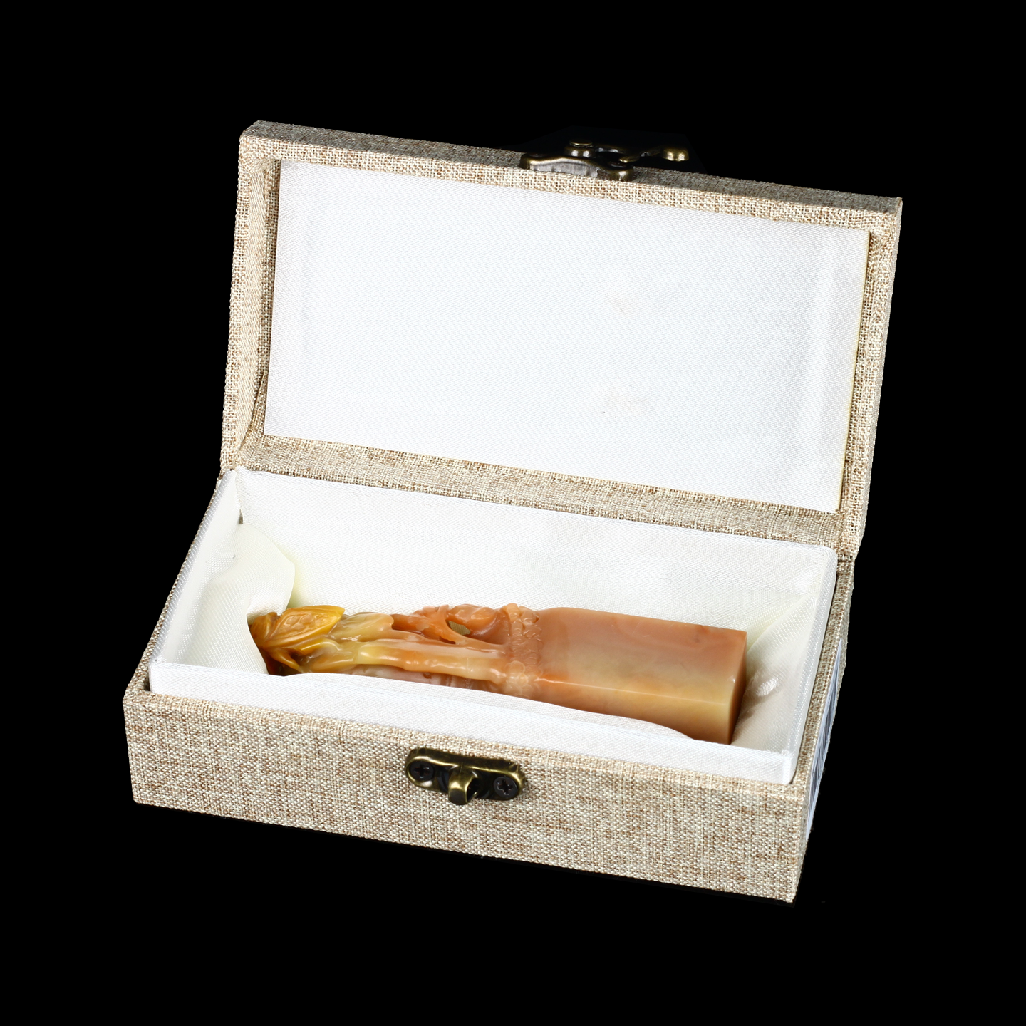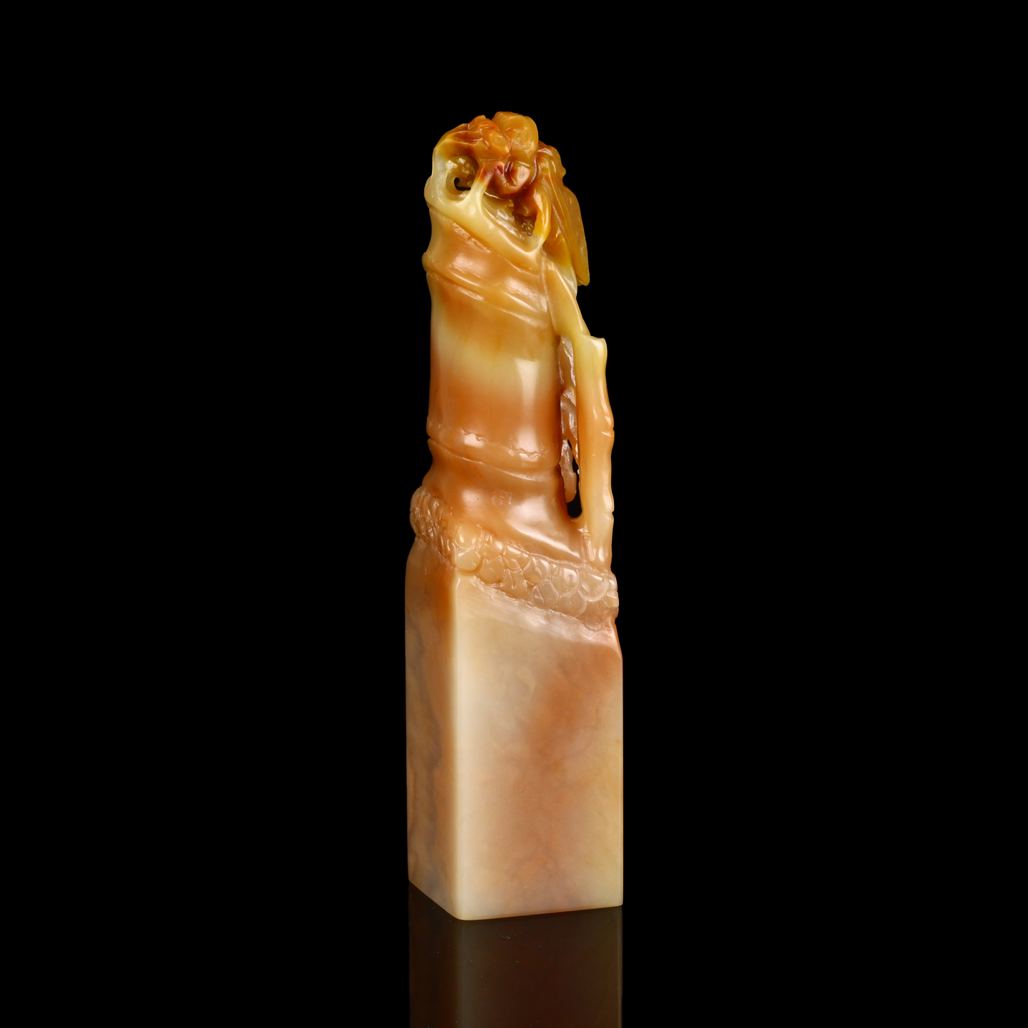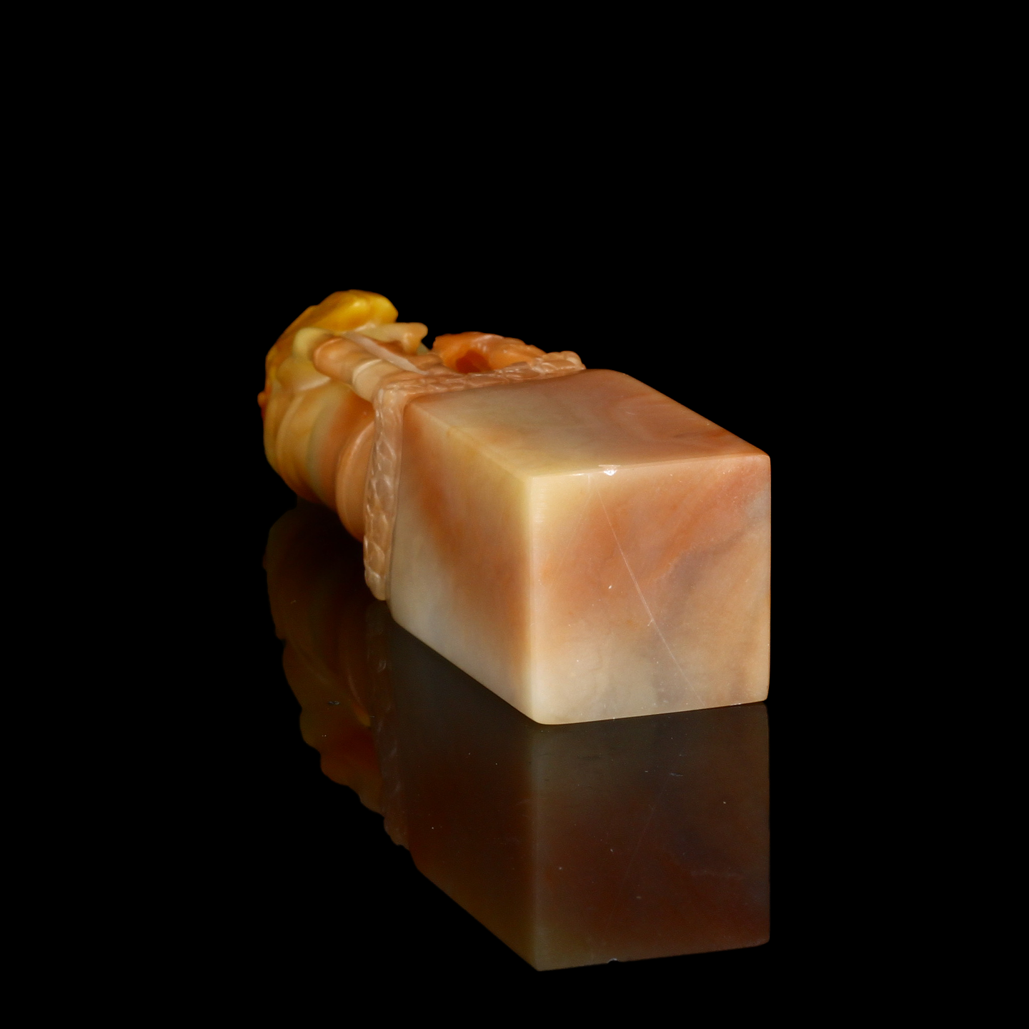 孤品17724老挝桃花冻石一鸣惊人节节高方章落款章礼品印章-2.2*2.2*10.2cm