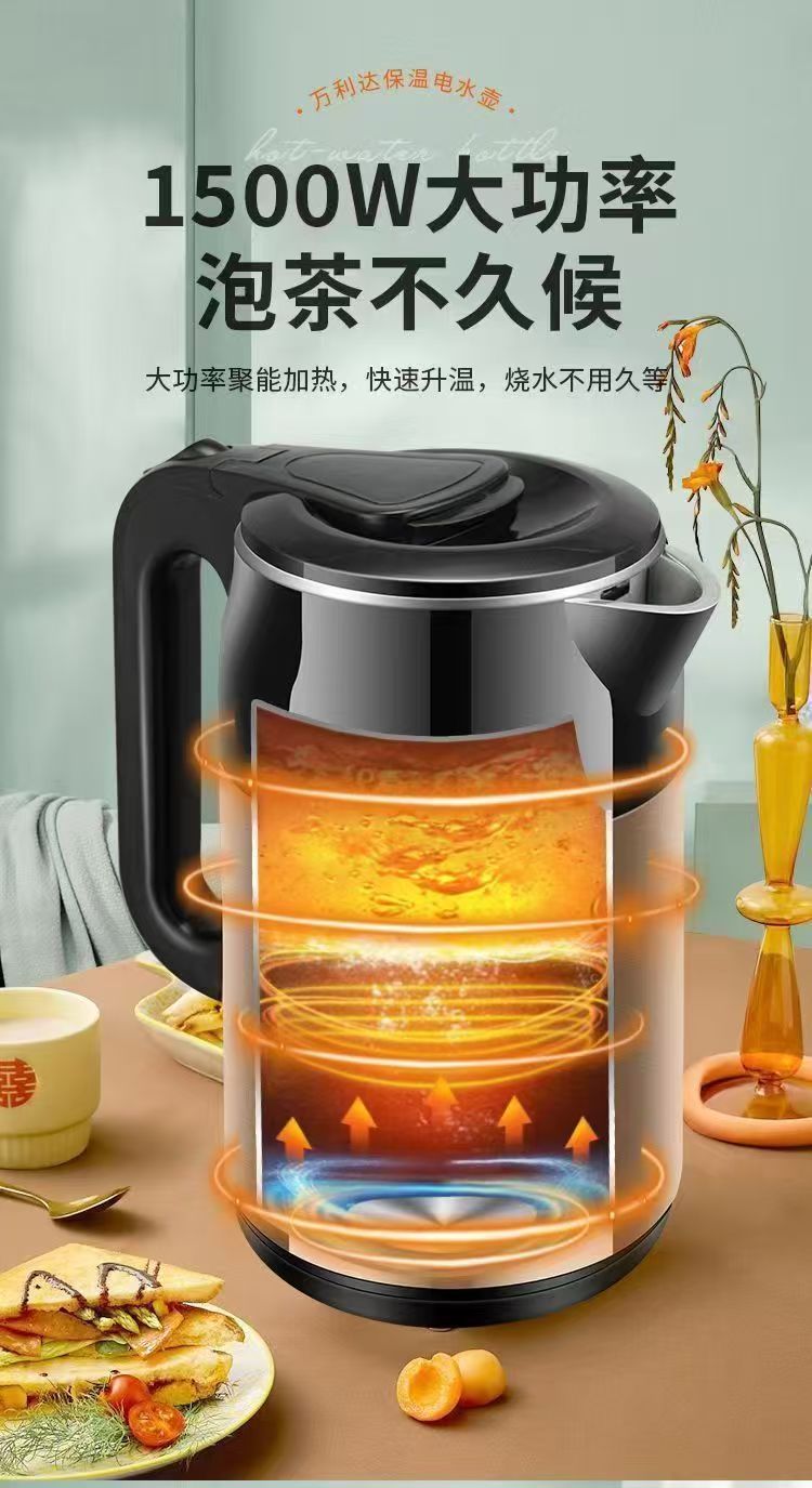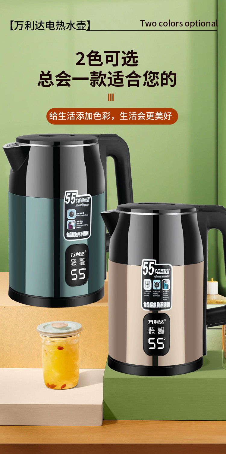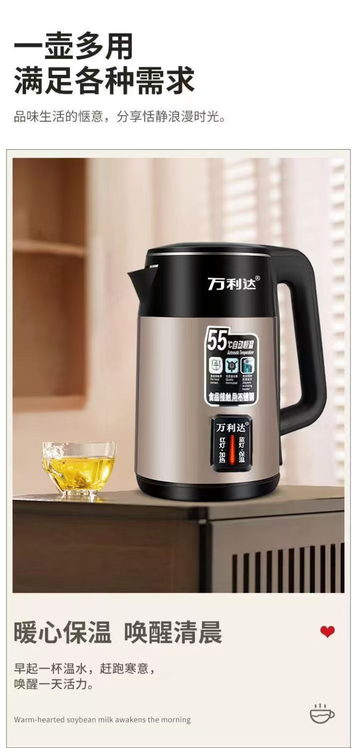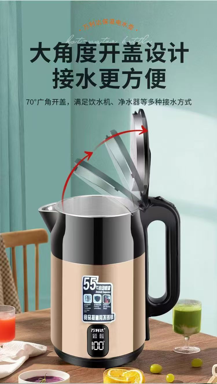 万利达3L大容量智能保温加厚食品级不锈钢烧水壶