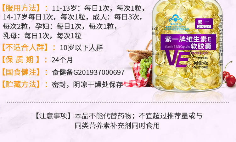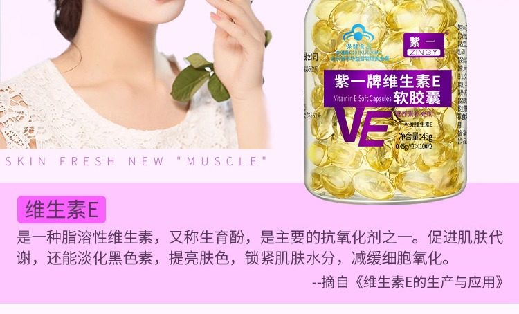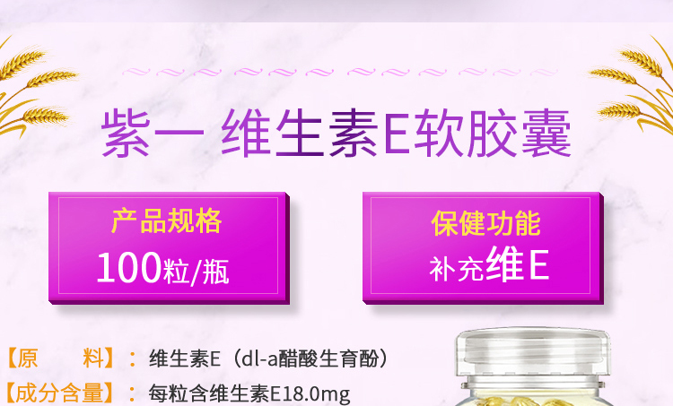 【补充维E,淡斑美白】紫一维生素E软胶囊 内服外用 100粒/瓶