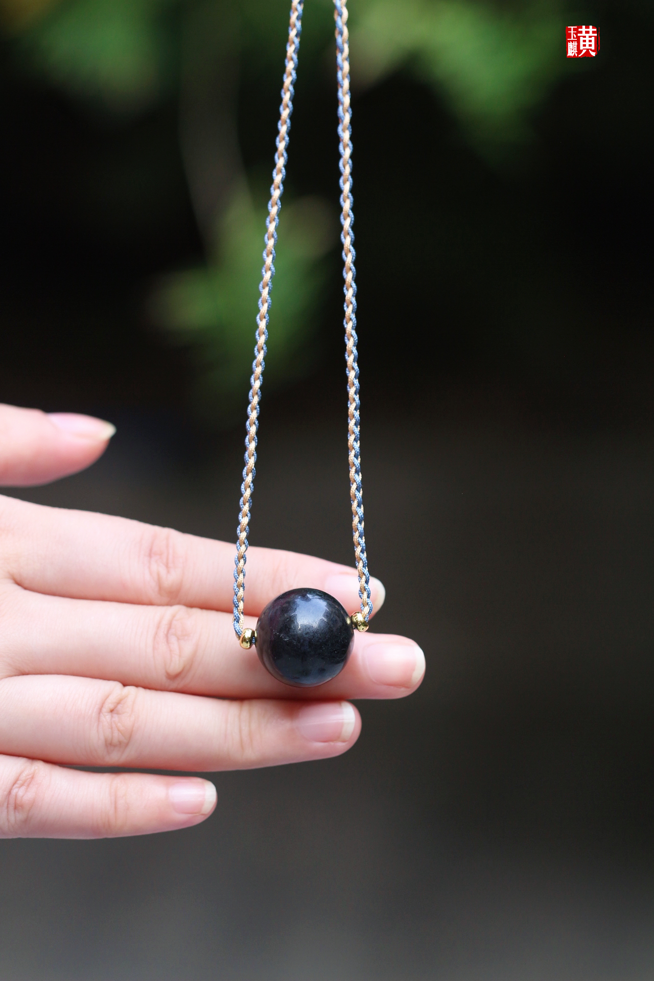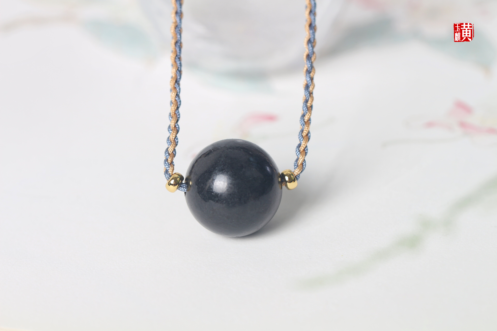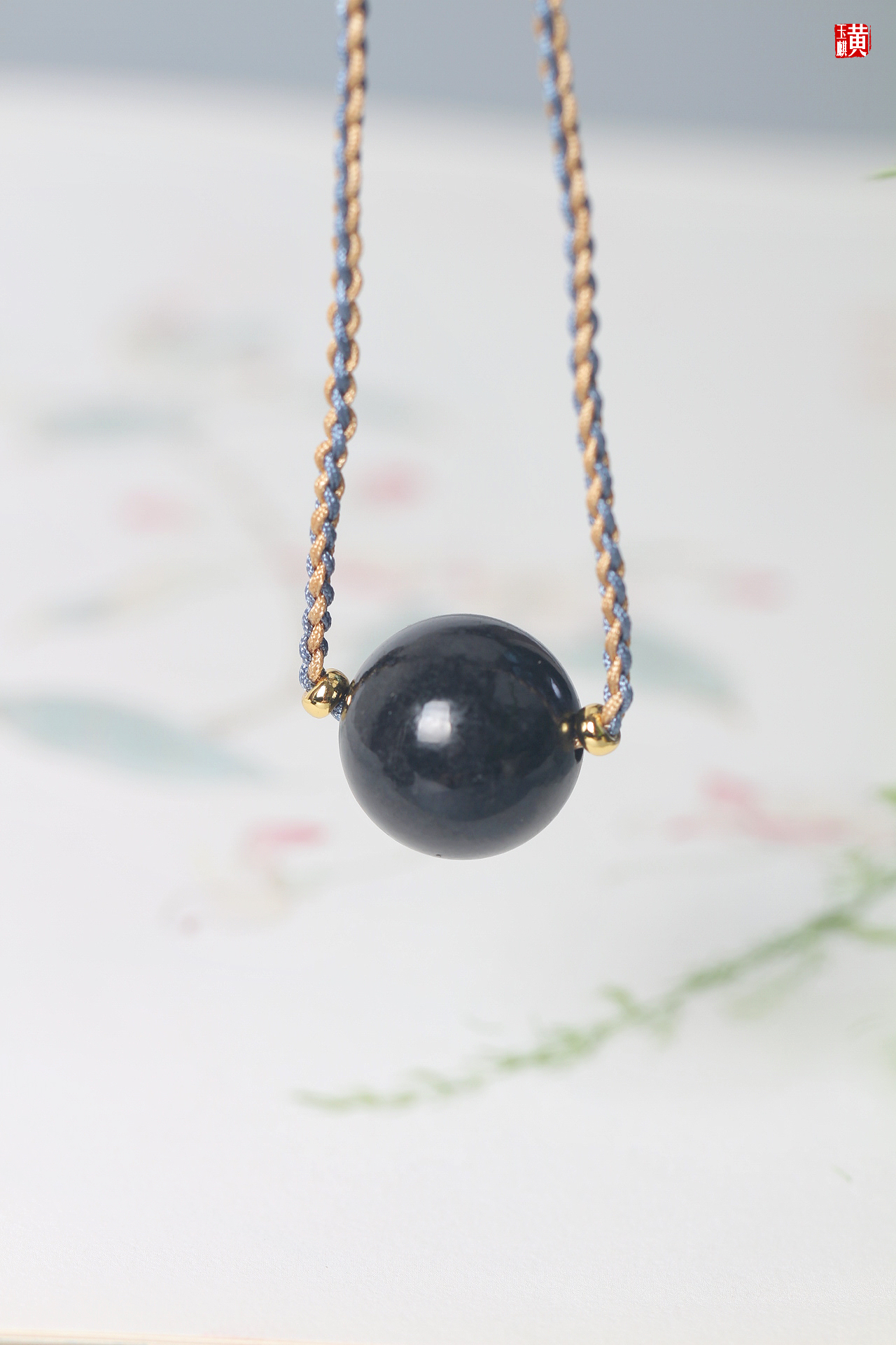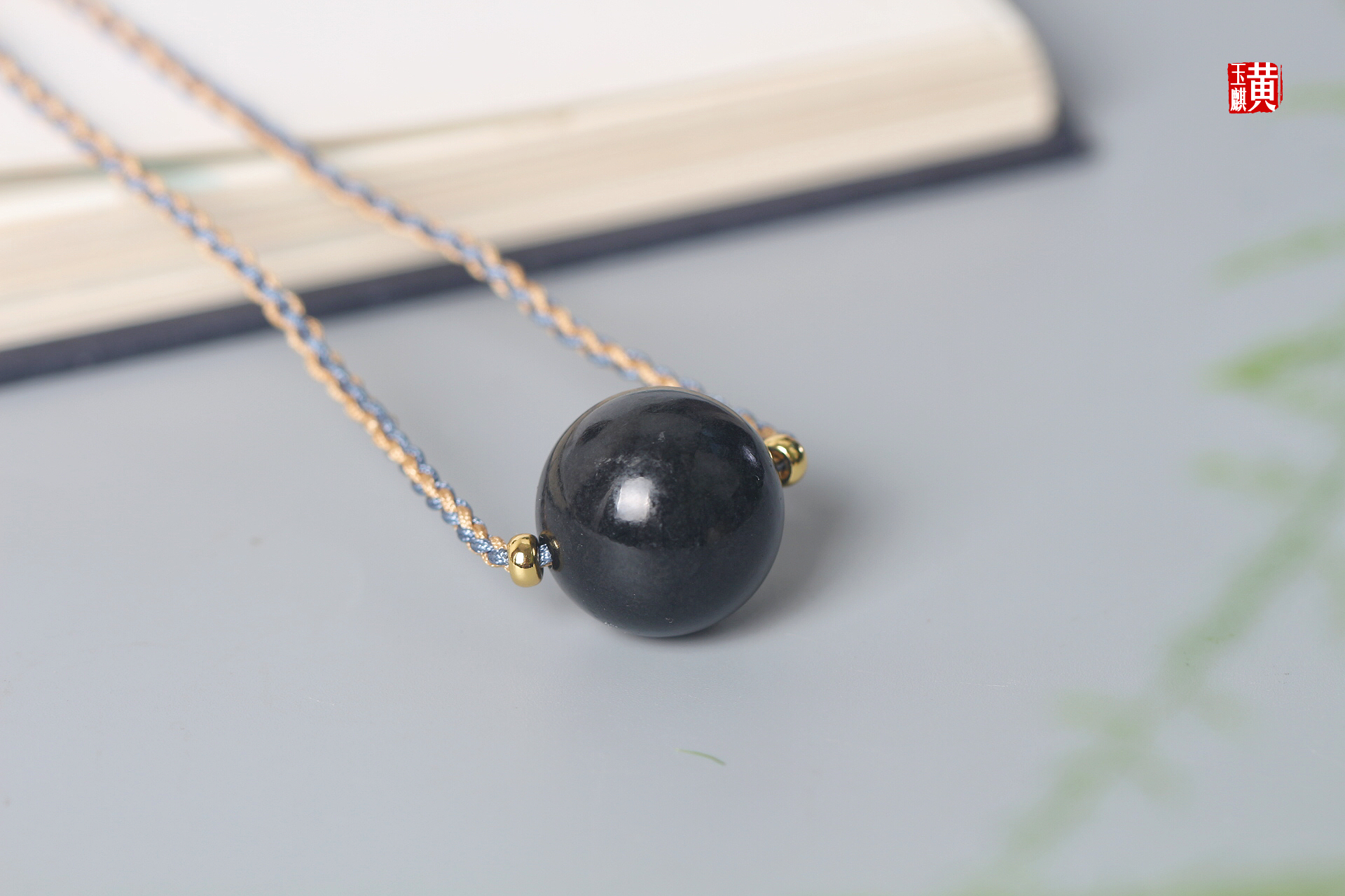 【墨韵清风】和田墨玉圆珠项链/配精美挂绳