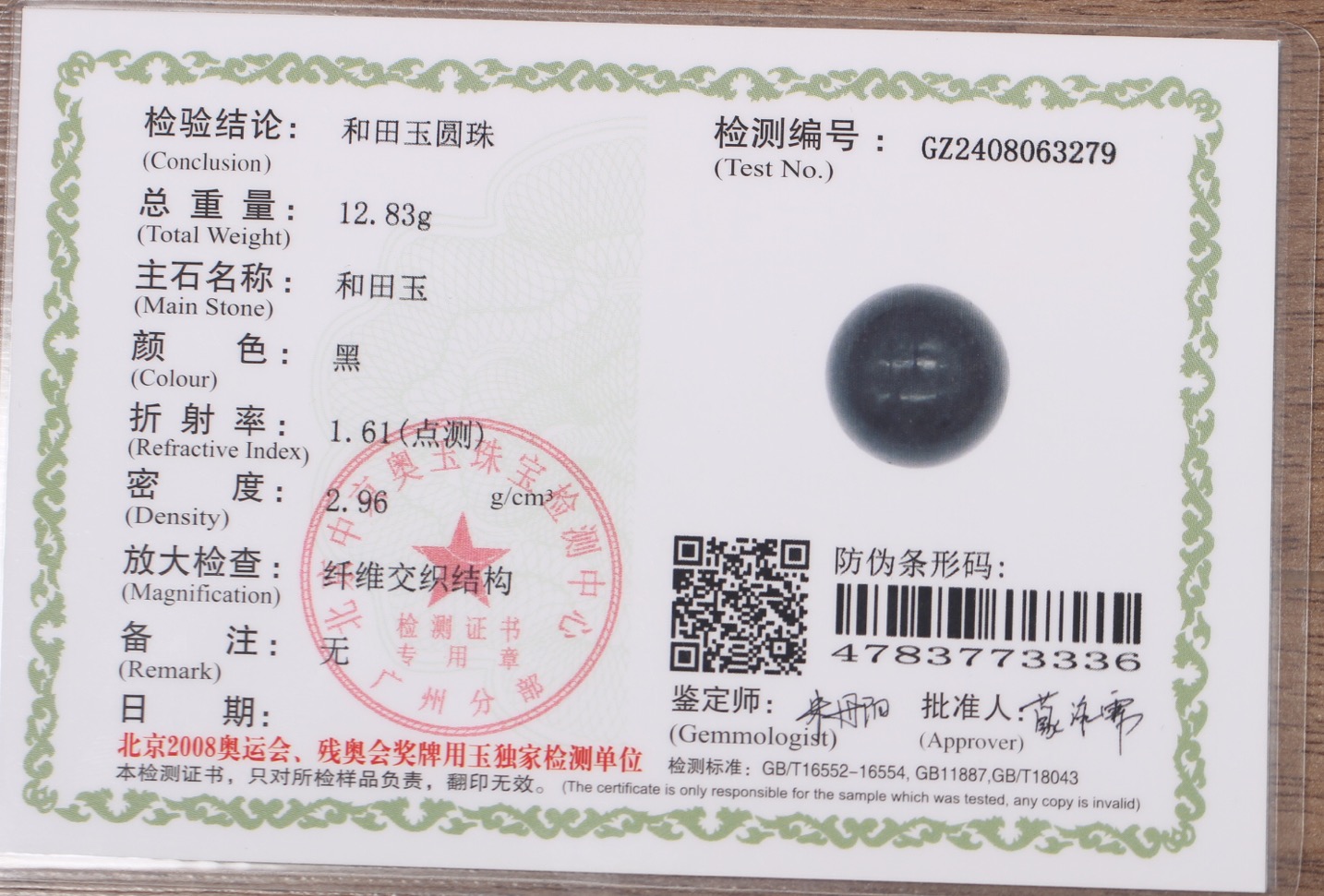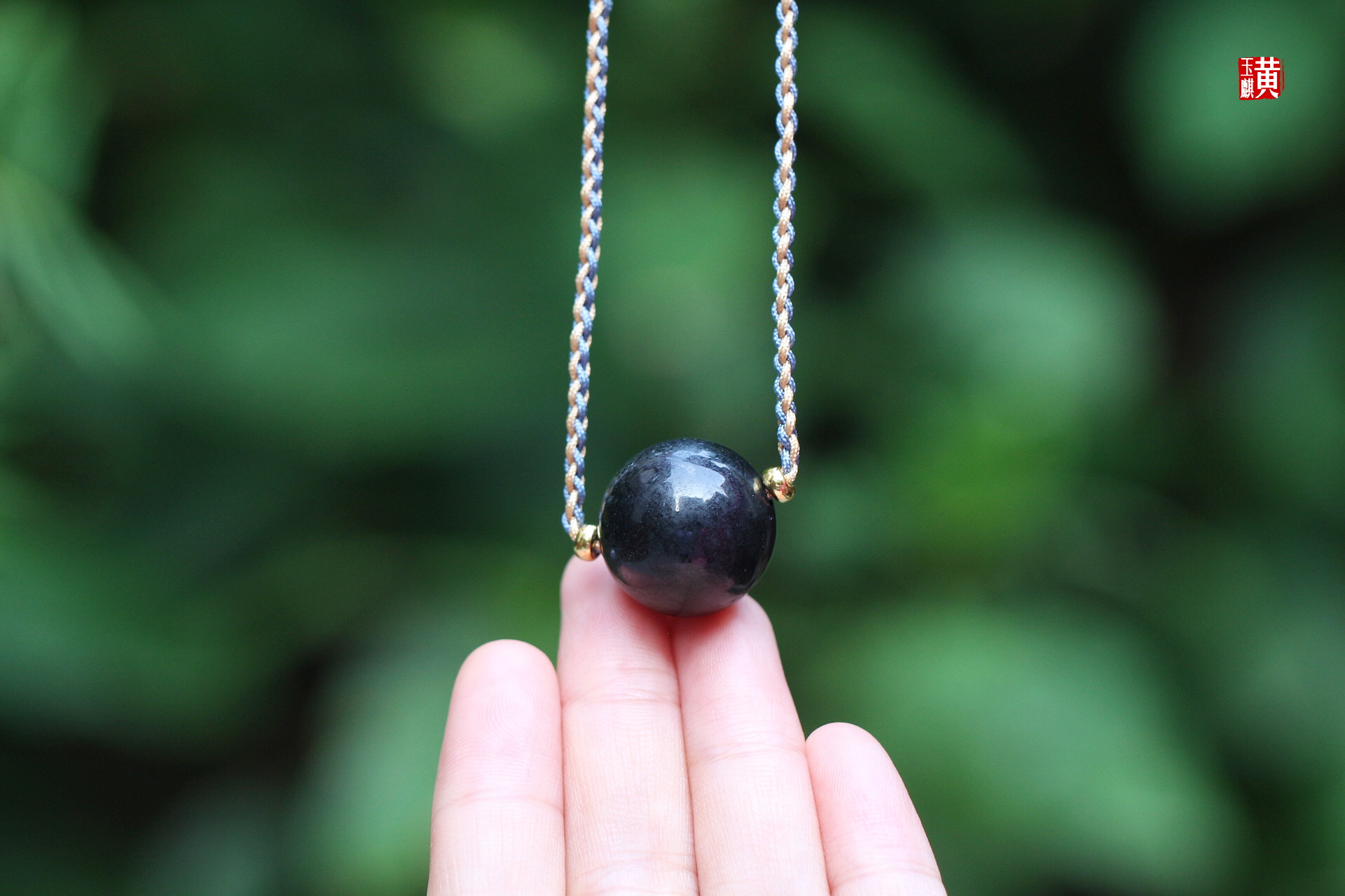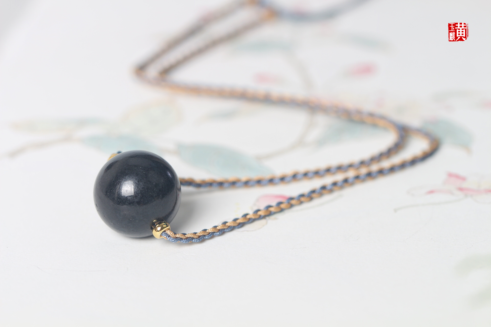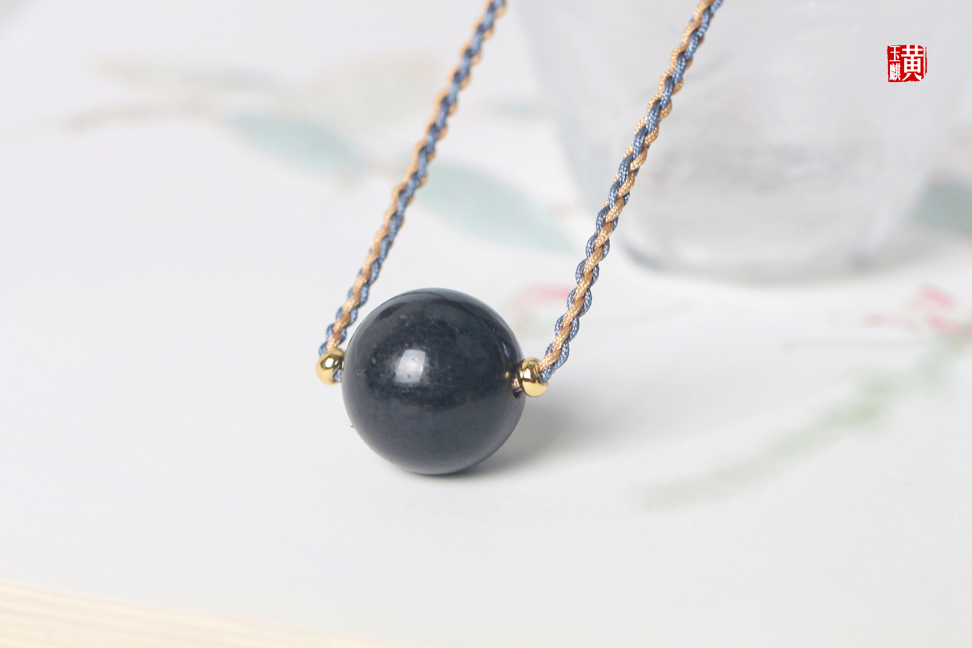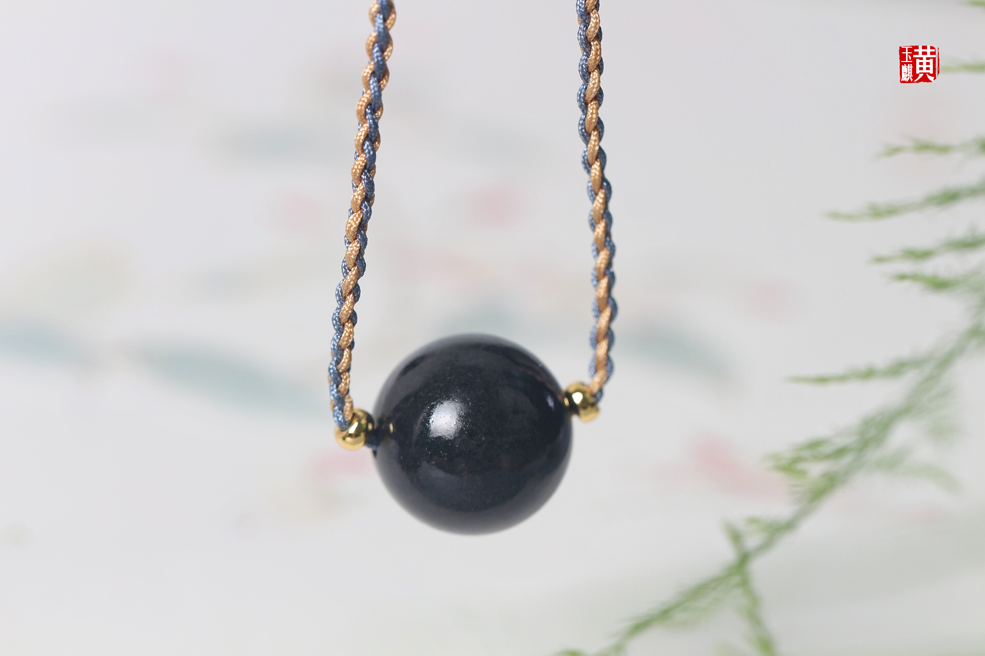 【墨韵清风】和田墨玉圆珠项链/配精美挂绳
