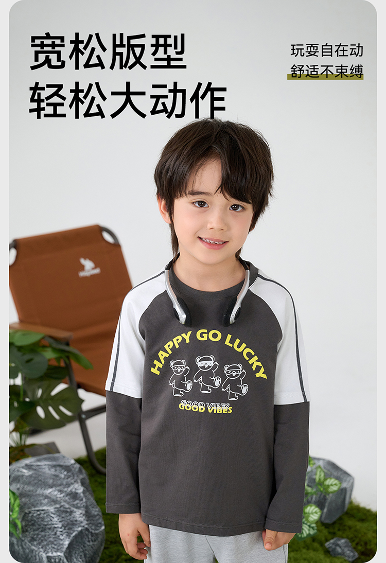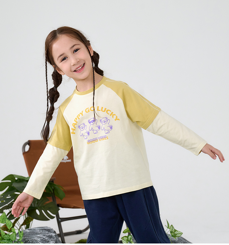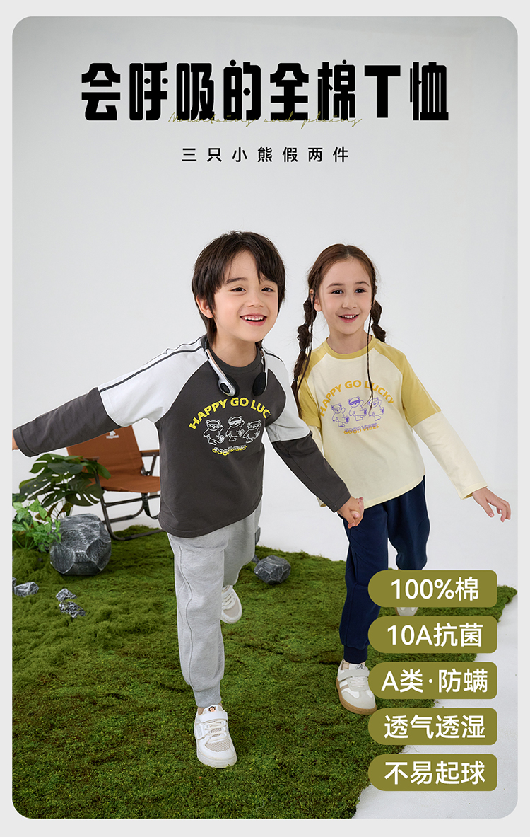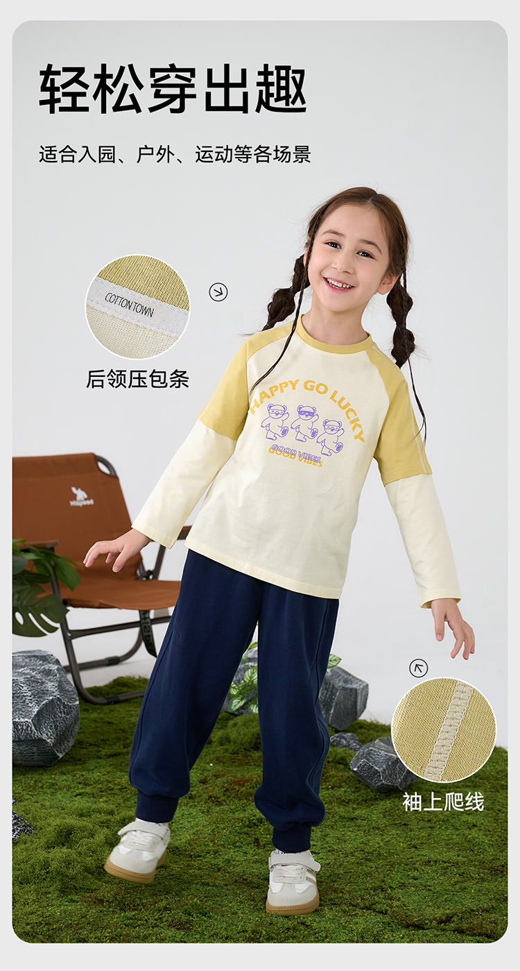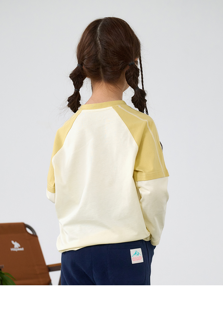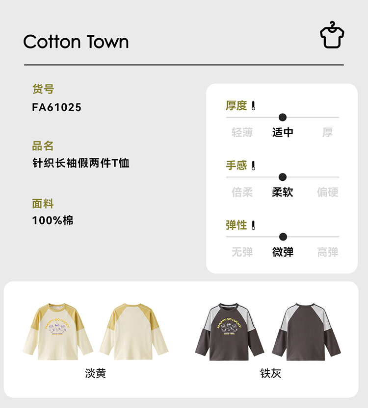 【A类针织假两件T恤】棉花堂针织长袖假两件T恤 10A级抗菌 吸湿透气 FA61025