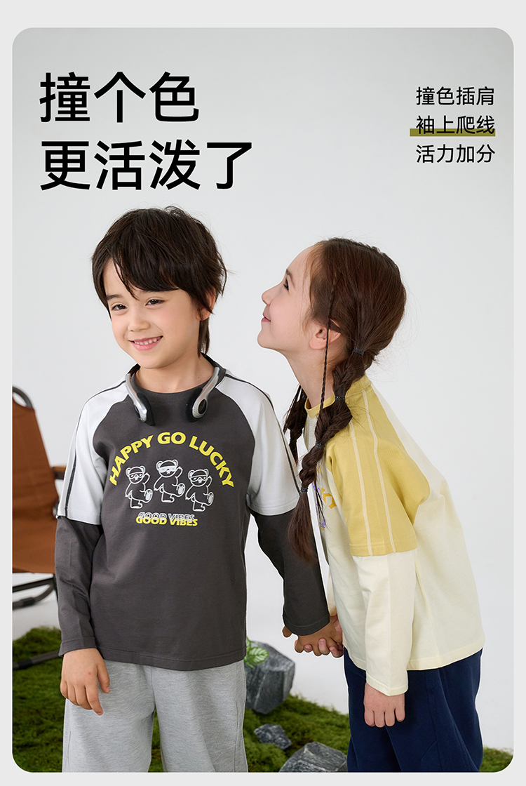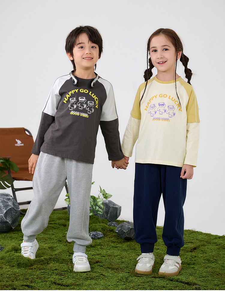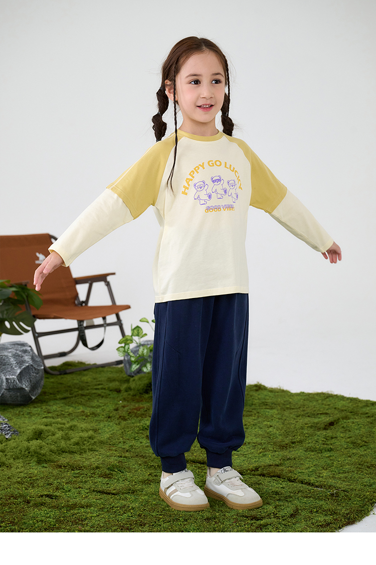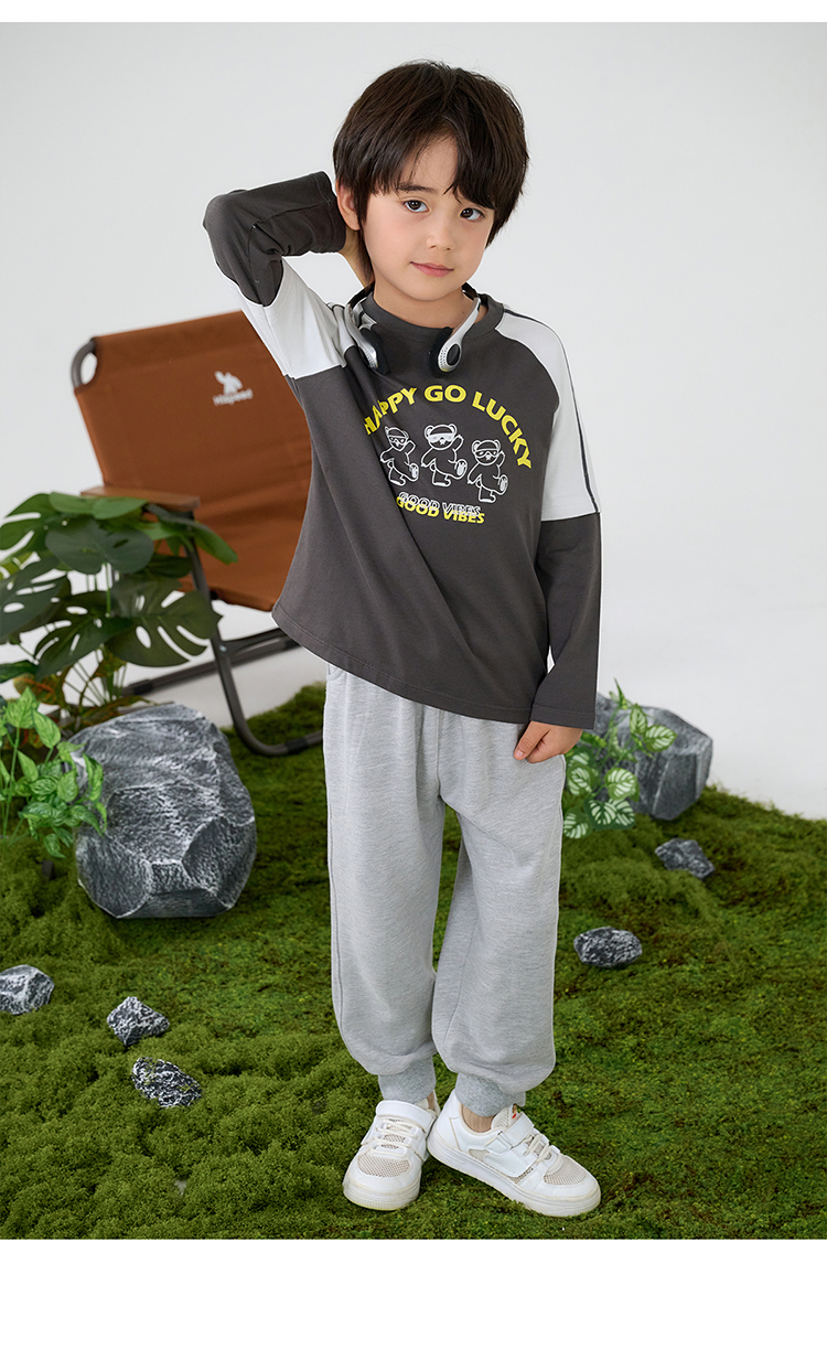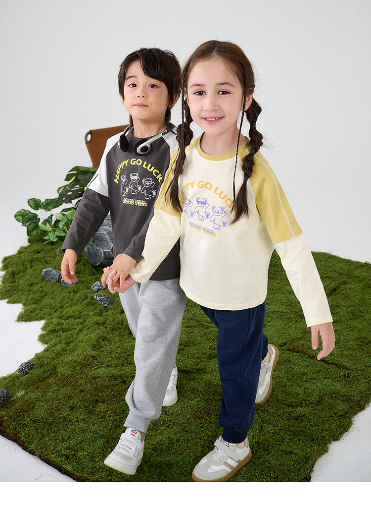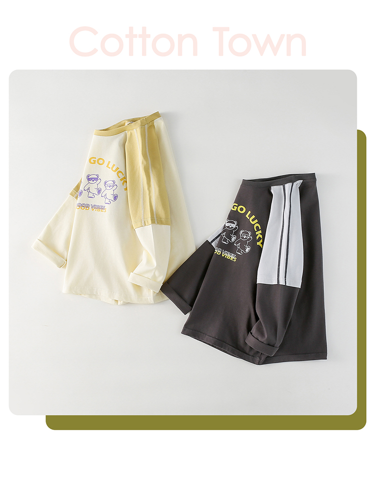 【A类针织假两件T恤】棉花堂针织长袖假两件T恤 10A级抗菌 吸湿透气 FA61025