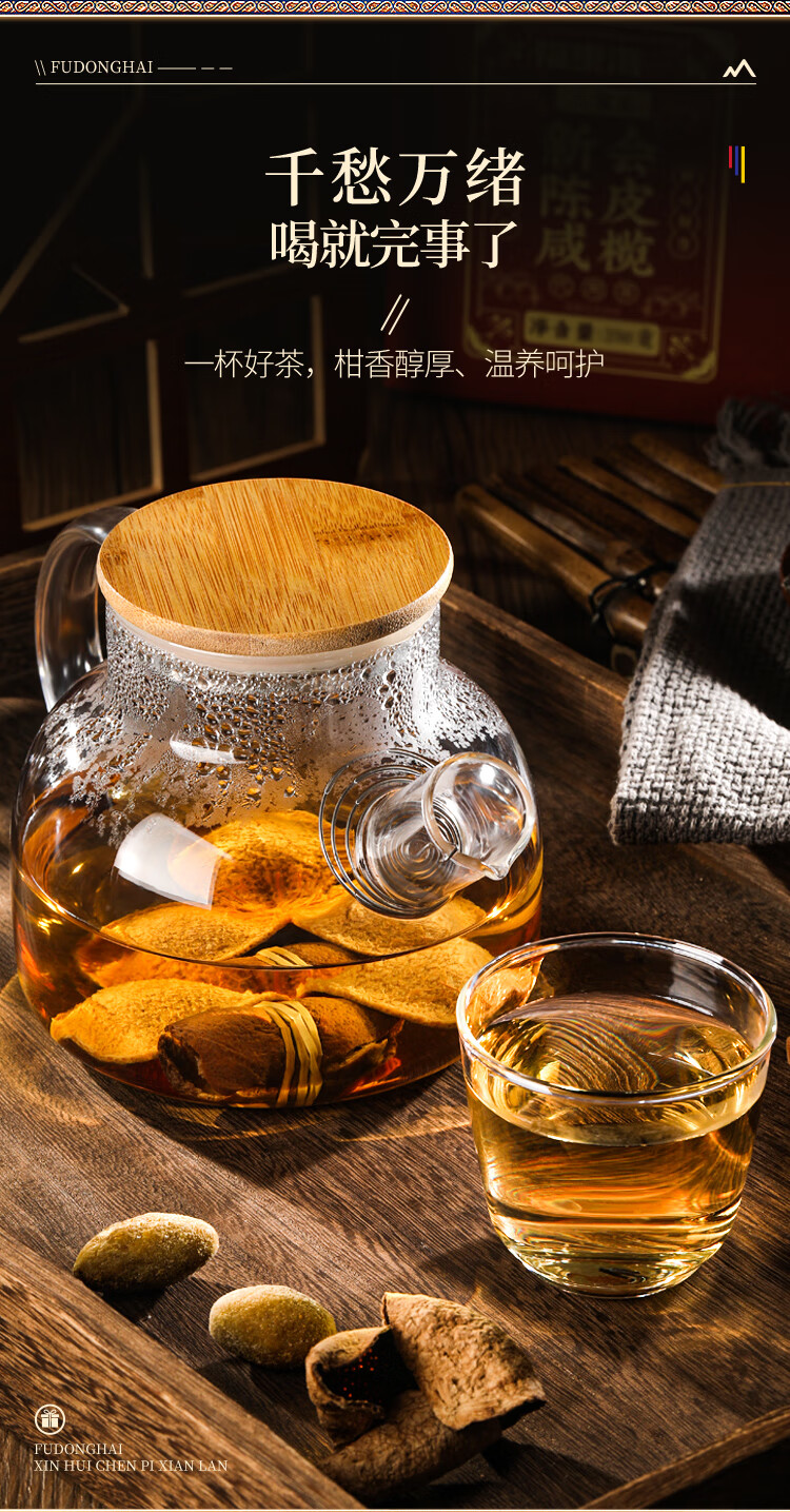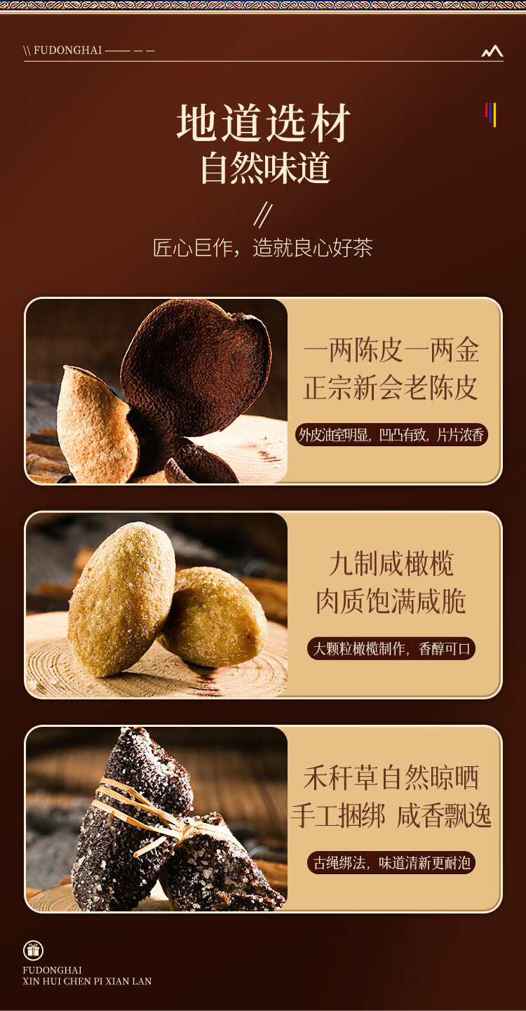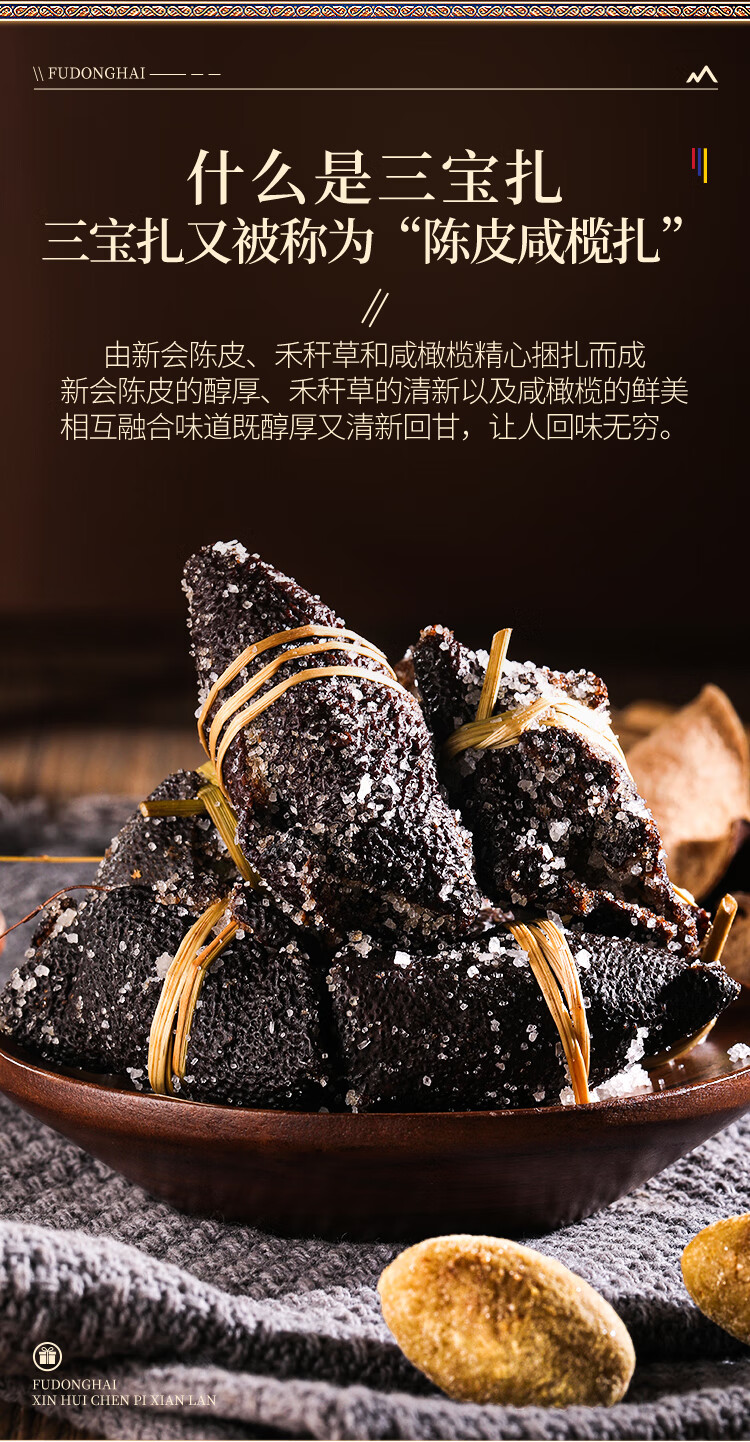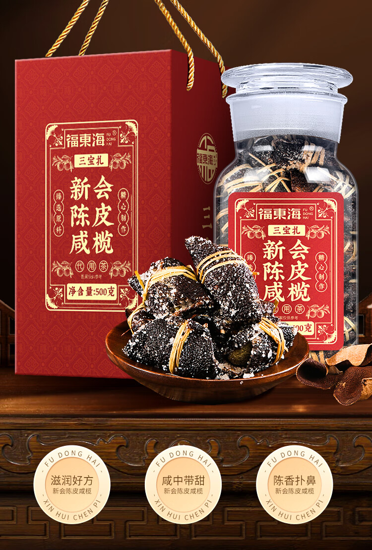 福东海 新会陈皮咸榄500克礼盒 广东特产三宝扎手工腌制三宝茶