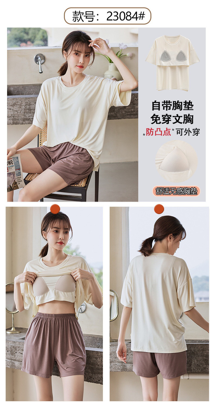 【穿出优雅】莫代尔带胸垫家居服 防凸点 家居服套装 长短裤 防凸点设计 可单穿外出