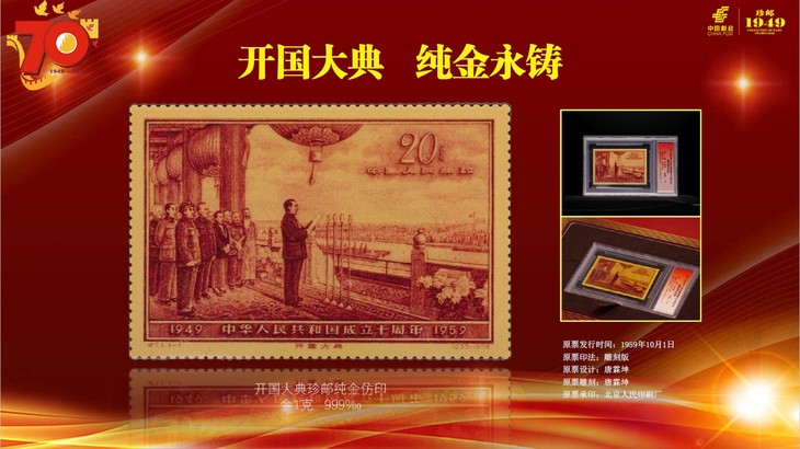 套装内容与以上【1克金版】相同,不同之处在于:以【纪71 开国大典原票】,替换【1克金版开国大典仿印票】。【纪71原票】在市场上已几乎绝迹,收藏意义和升值潜力不可估量。