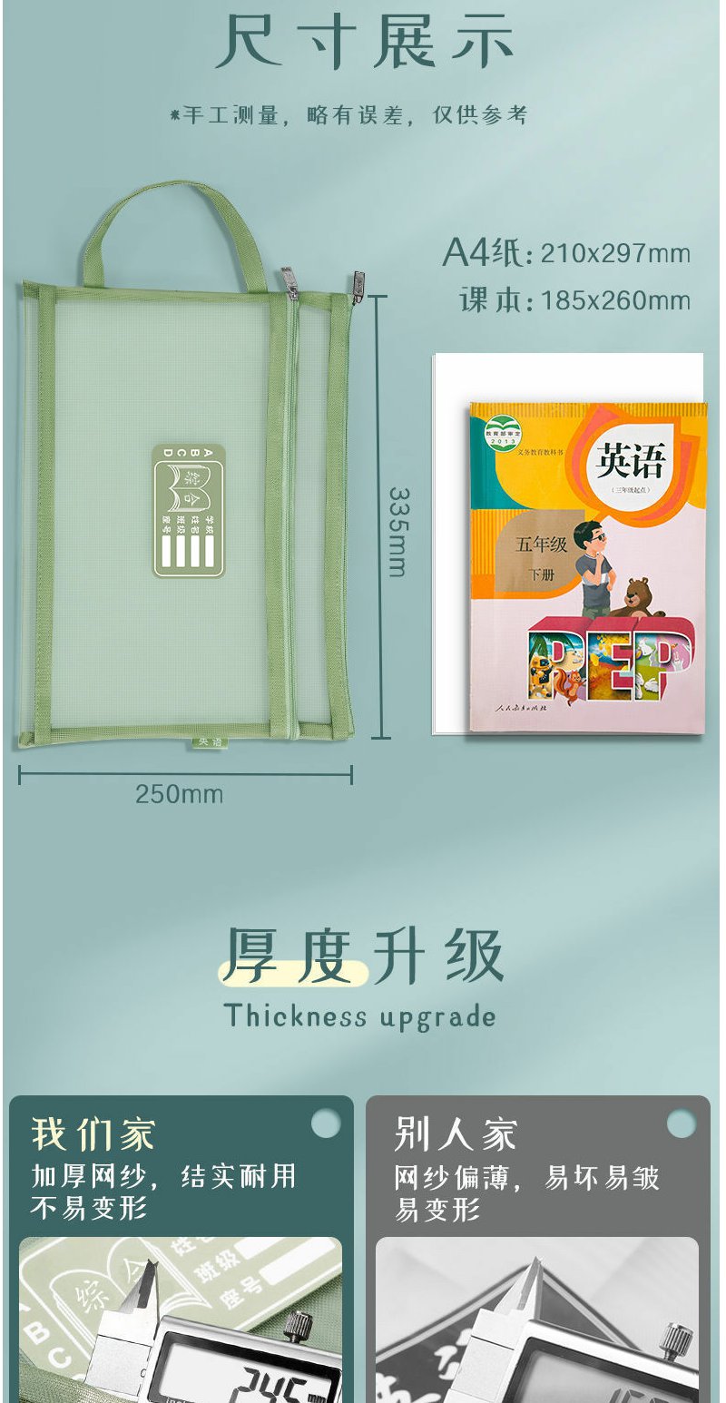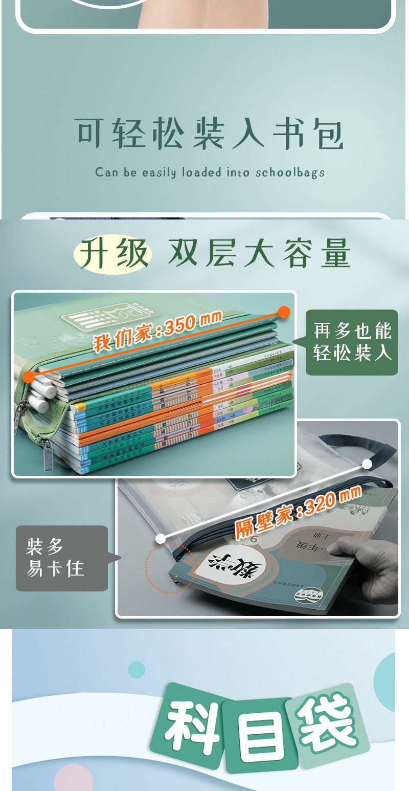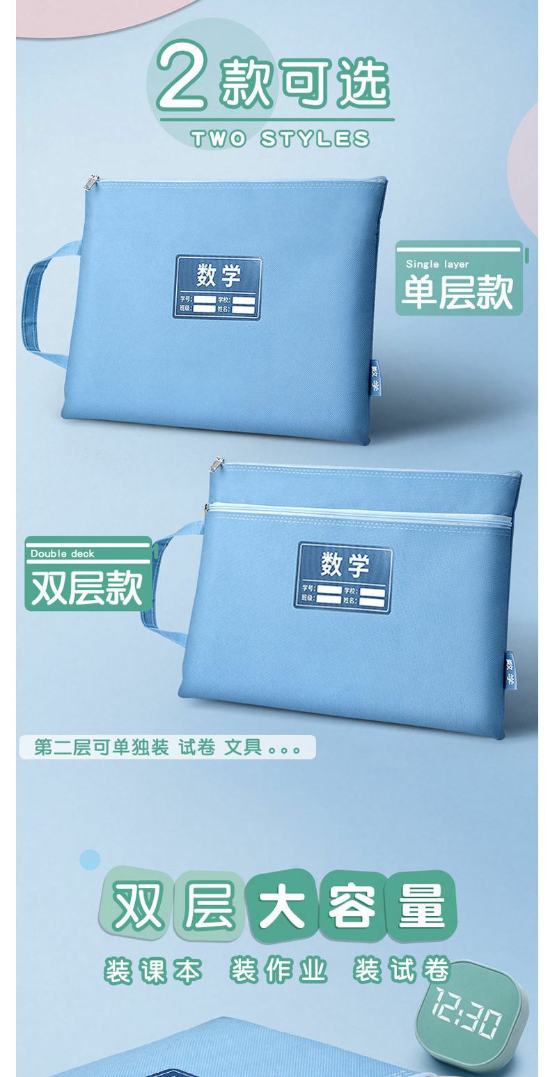 A4单层双层科目袋套装防水试卷袋帆布学生文具袋手提文件袋拉链袋