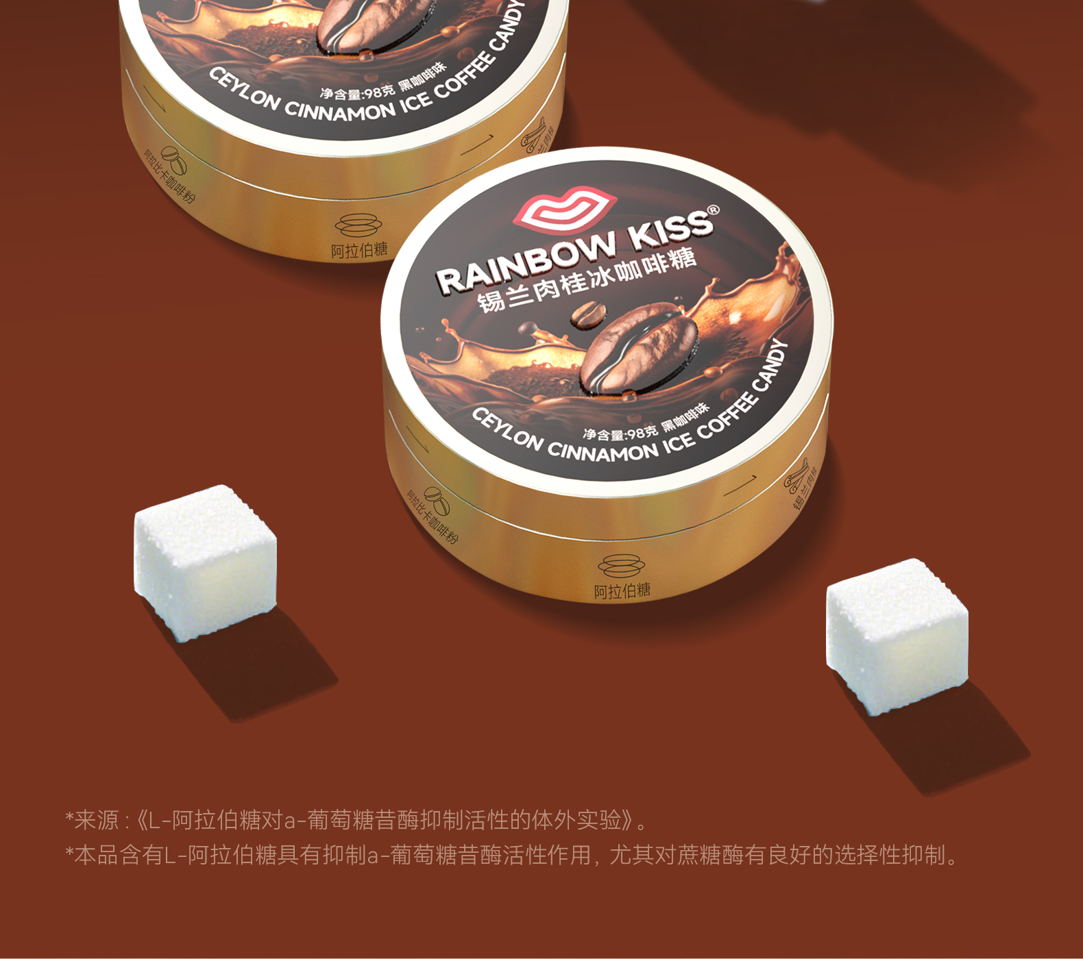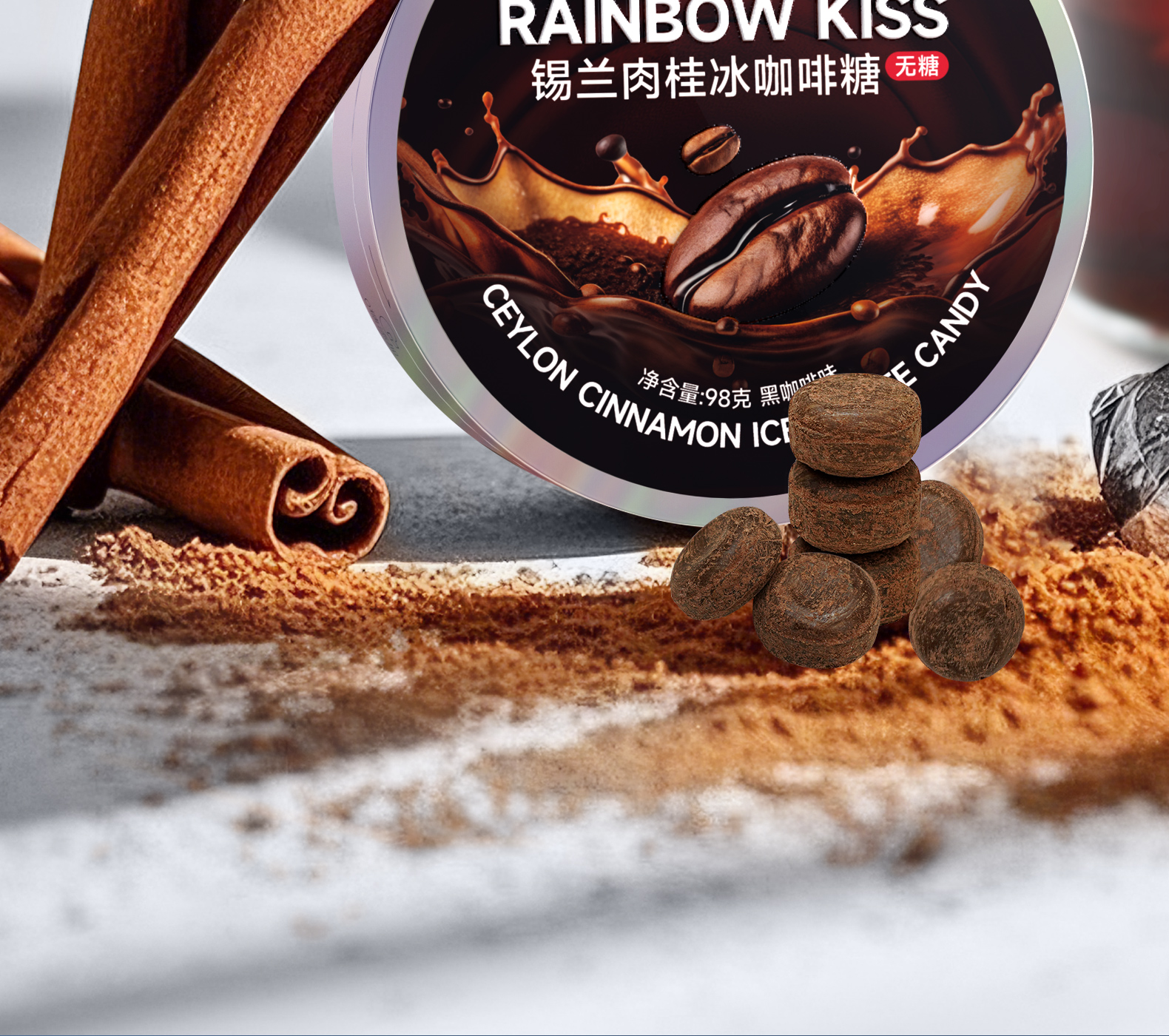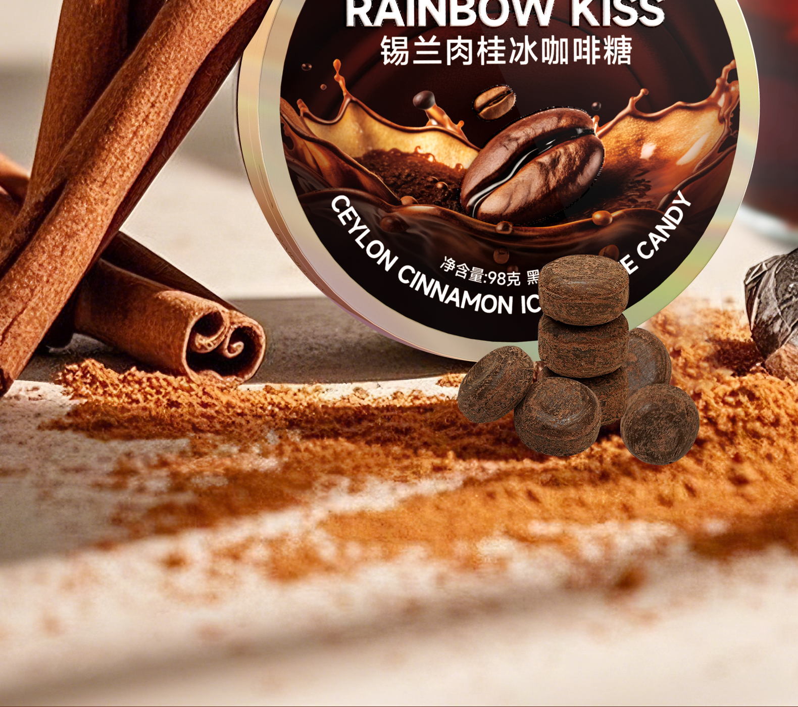 【买1赠1】红谷林rainbowkiss锡兰肉桂冰咖啡糖 提神醒脑 劲凉到底 经典版/无糖版 98g/盒