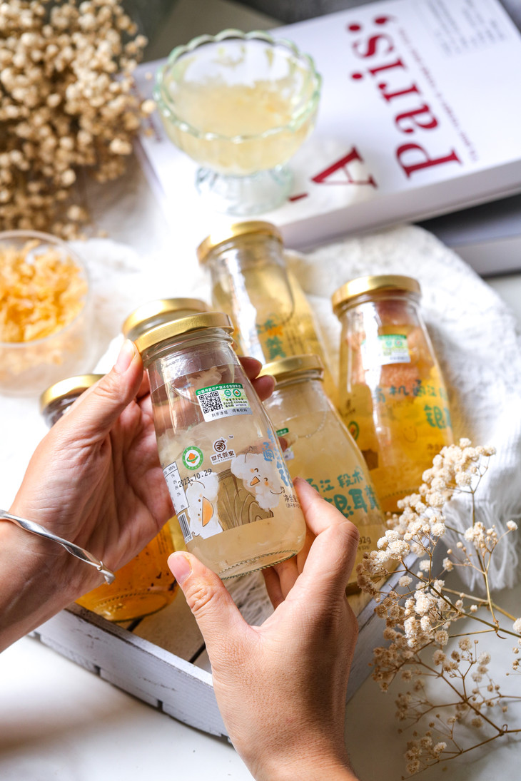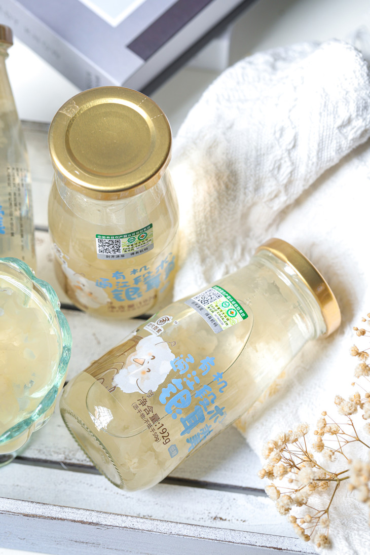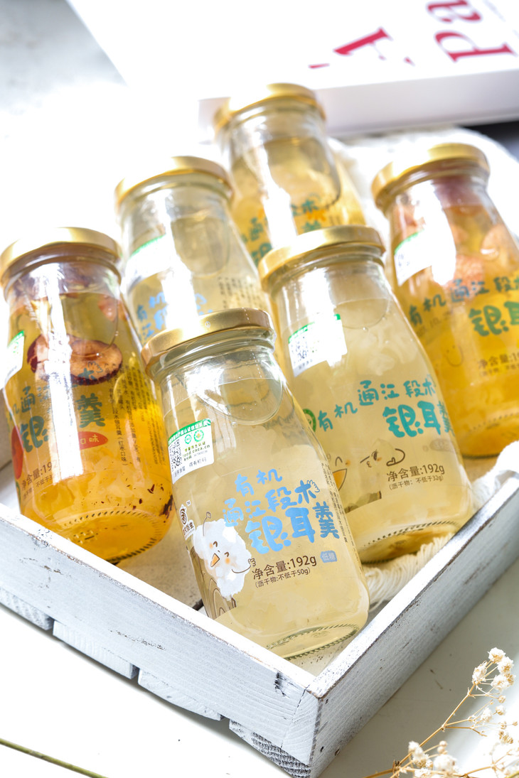 为了让大家可以轻松吃上胶质满满的银耳羹,我们开发了同款银耳的即食小瓶瓶,开盖即食,全生态或有机原料,无防腐剂、增稠剂等的添加剂。