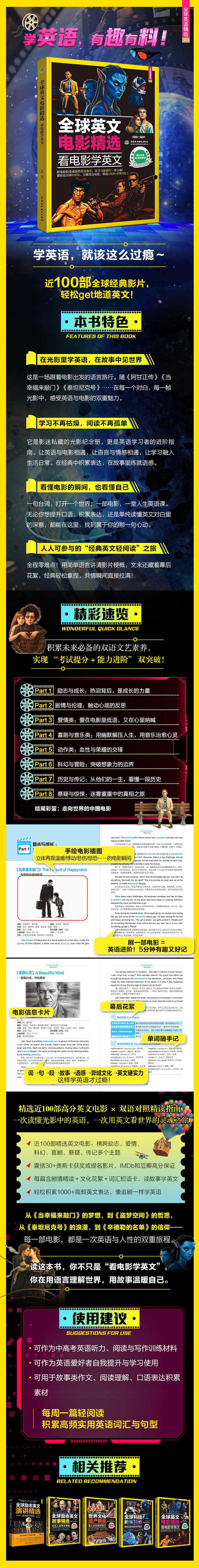 2.学习不再枯燥,阅读不再孤单:它是影迷私藏的光影纪念册,更是英语学习者的进阶指南。让英语与电影相遇,让语言与情感相通,让学习融入生活日常。在经典中积累表达,在故事里练就语感。