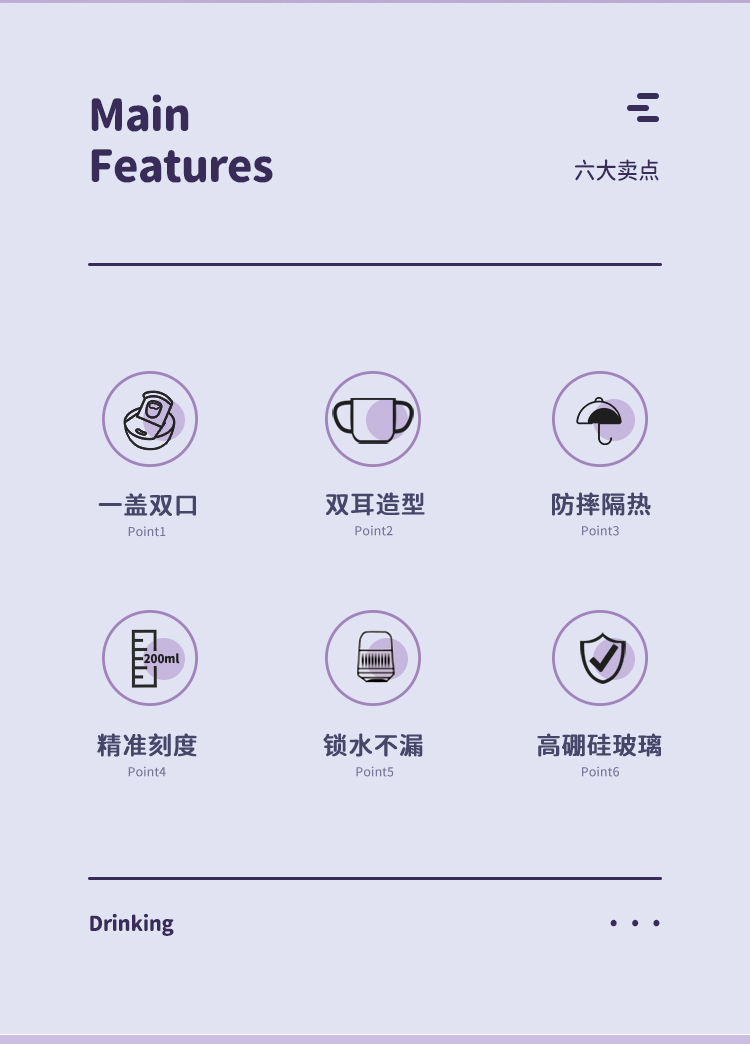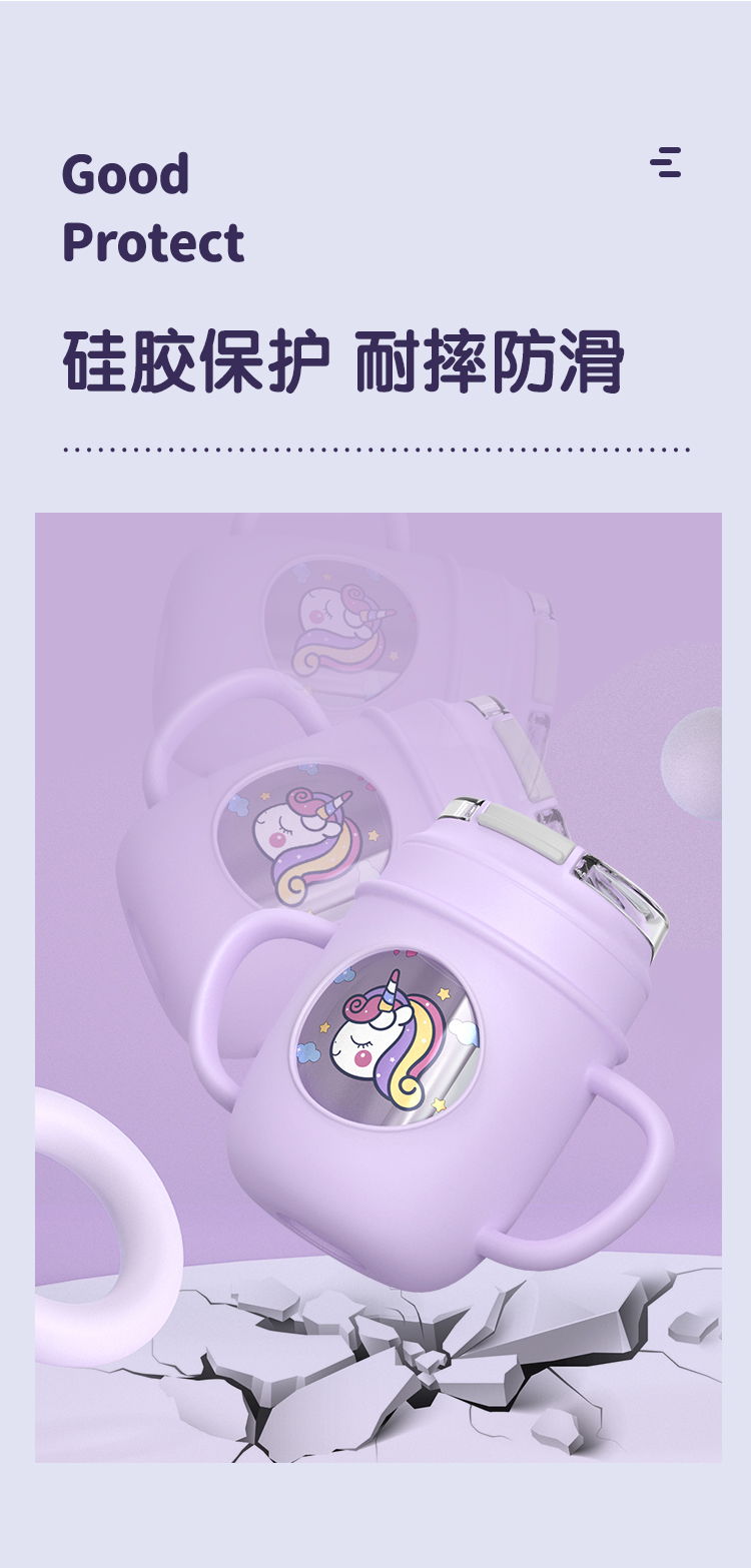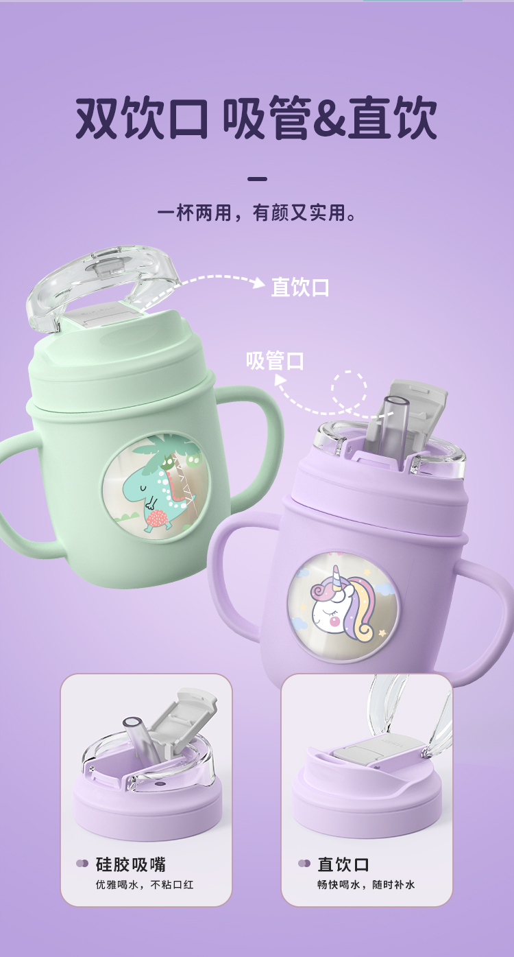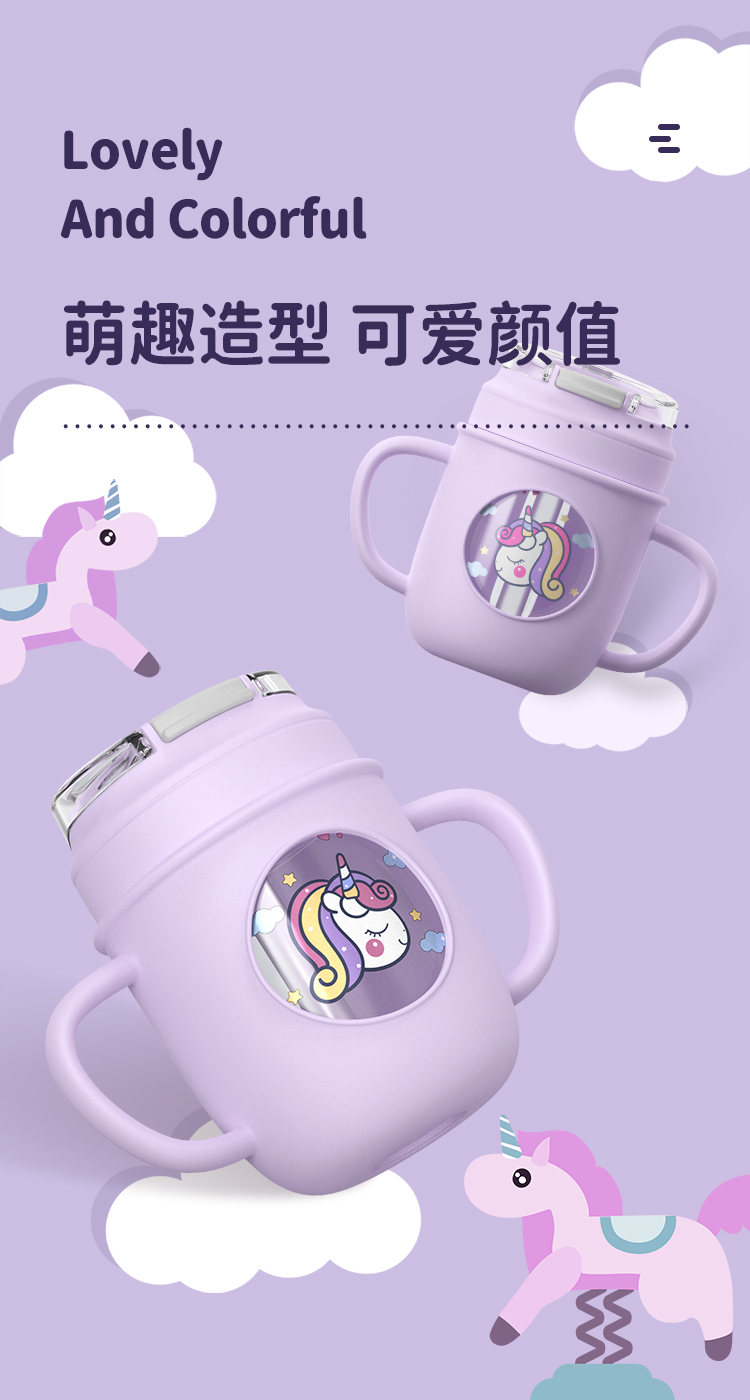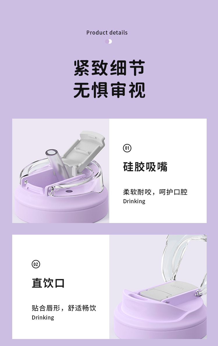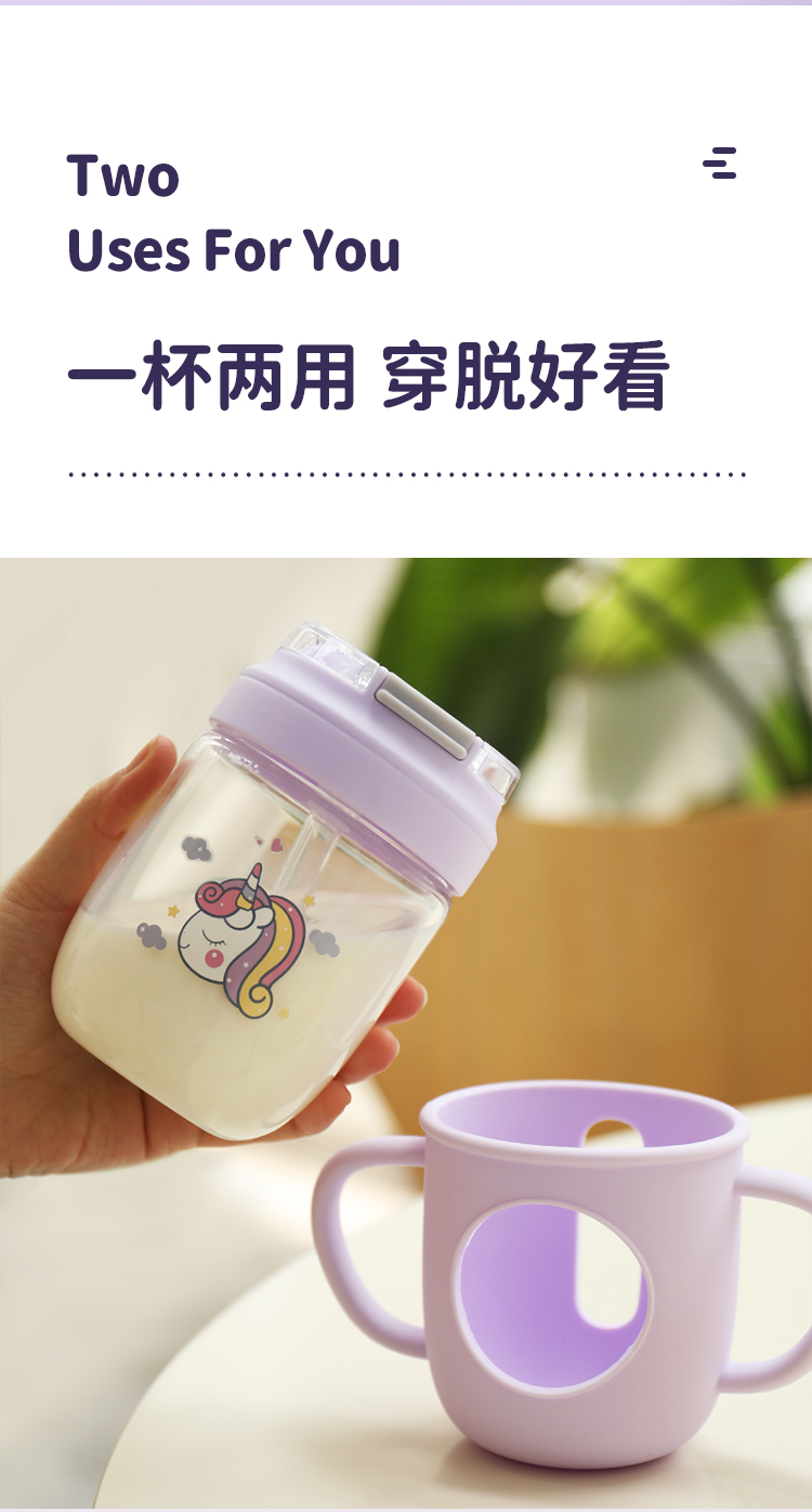 特美刻(TOMIC)玻璃杯 家用儿童牛奶杯子带刻度便携耐热吸管水杯防漏带把手婴幼儿学饮杯 TG82029 浅紫色