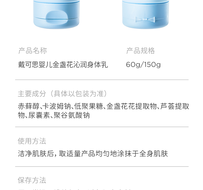 【戴可思推荐】戴可思新升级金盏花婴儿沁润身体乳 一抹降温 即时补水 限时送沁润面霜15g~