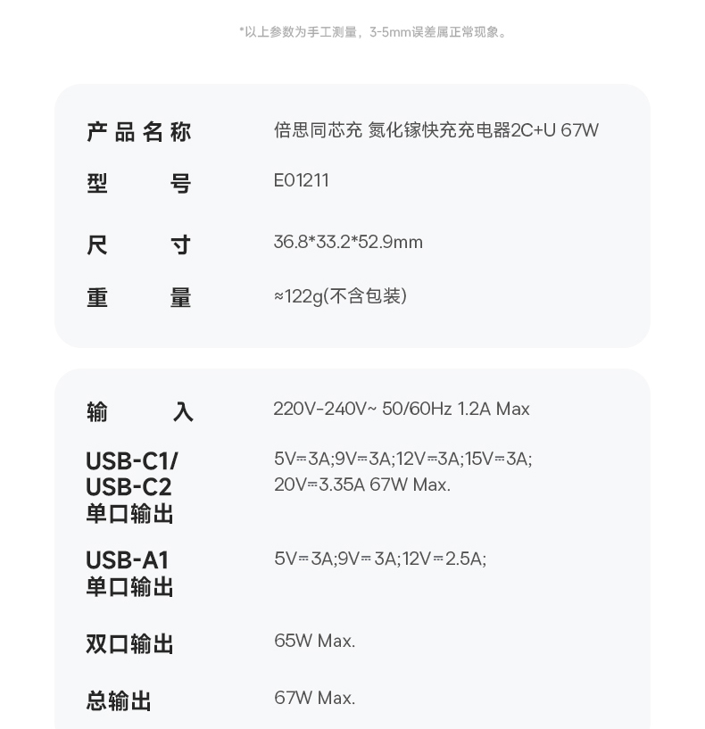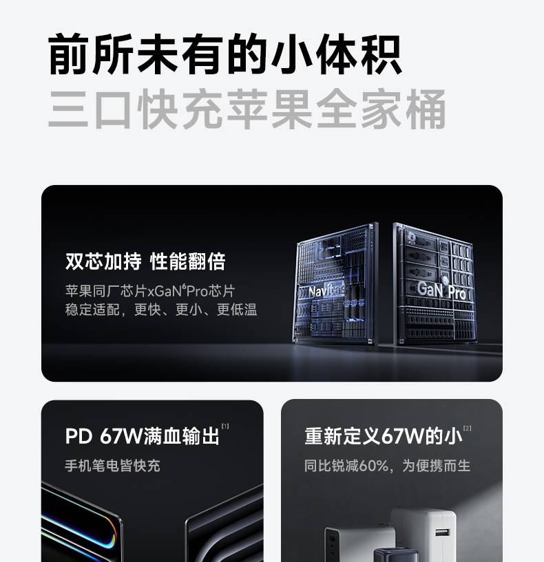倍思 PicoGo 苹果派 AE11 快充充电器 2C+U 67W