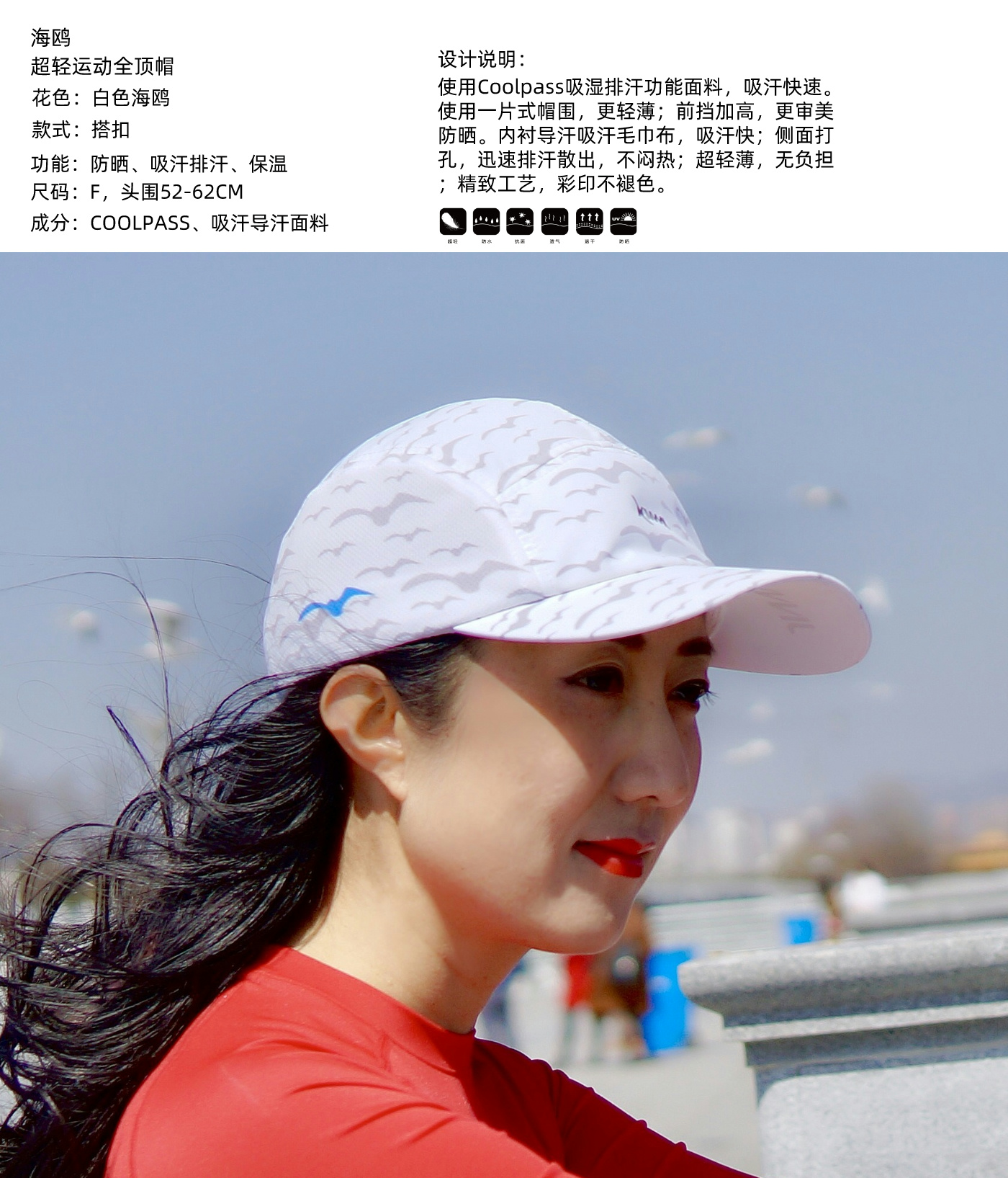 轻翼海鸥超轻防晒透气吸汗排汗运动马拉松越野跑步全顶帽