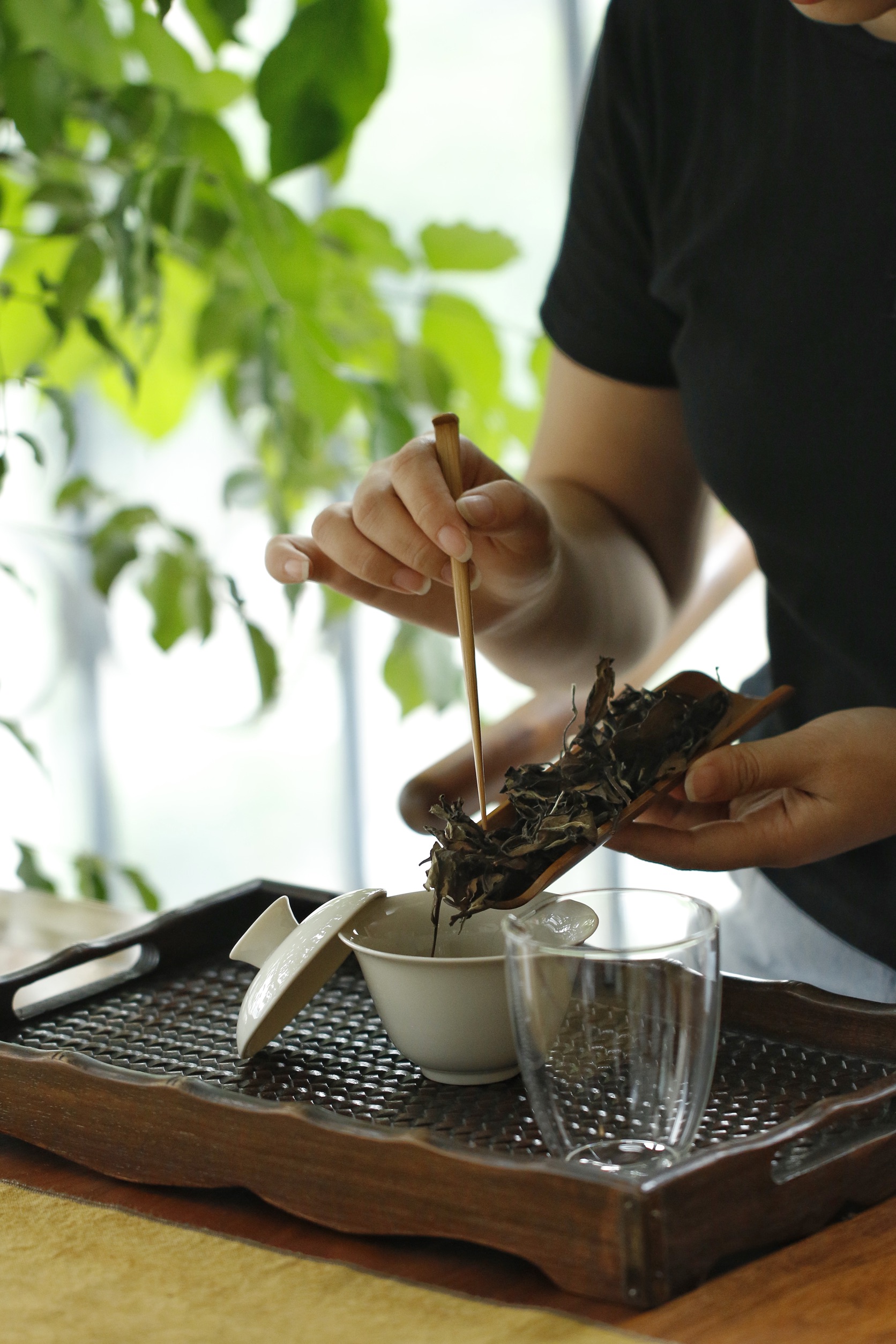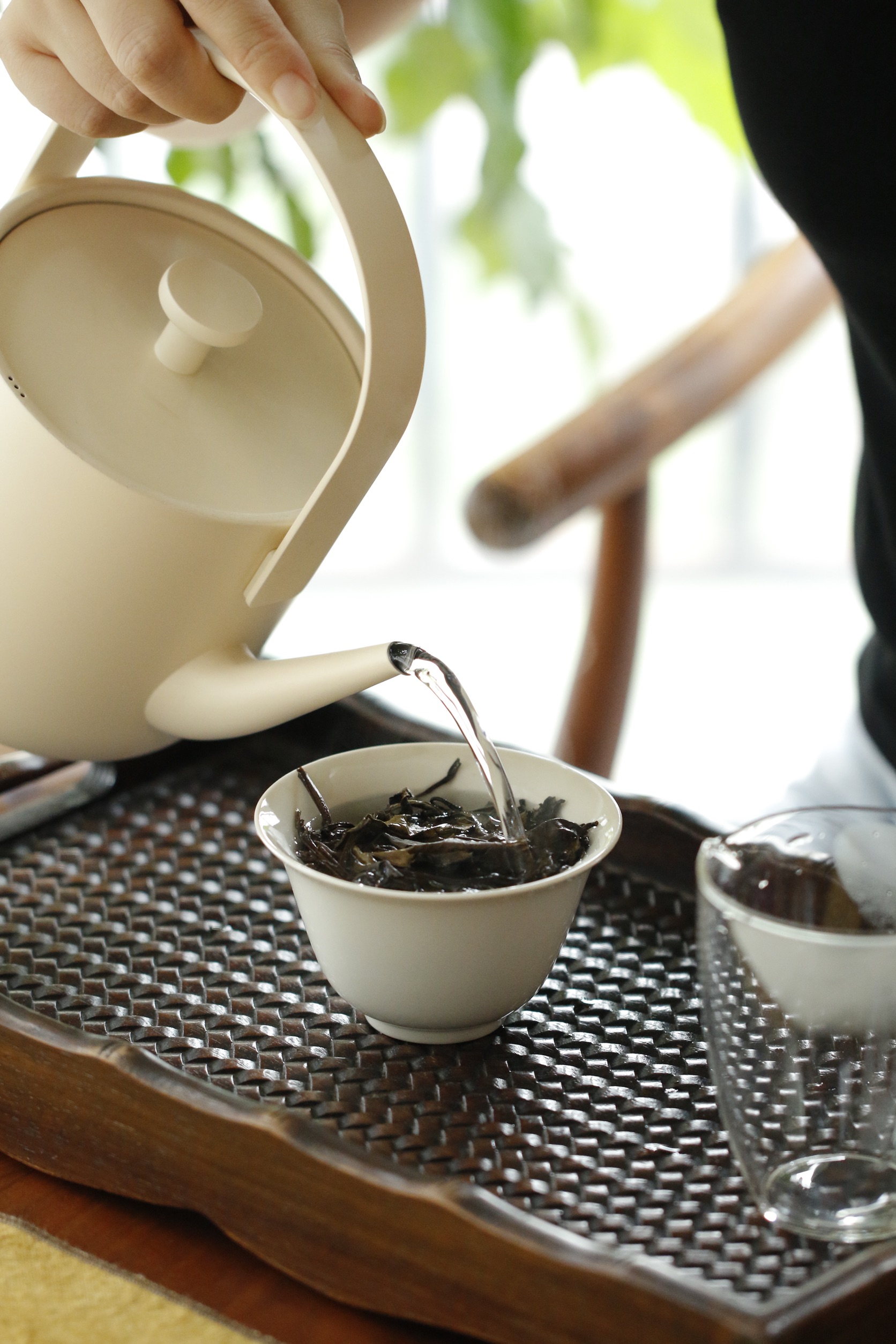 盖碗、陶壶,投茶量6克。水温100℃,建议洗茶一次,温杯后放入老白茶环壁均匀注水,待茶叶充分浸润后出汤,第二泡3-5秒出汤。五泡后每泡顺延3-5秒即可