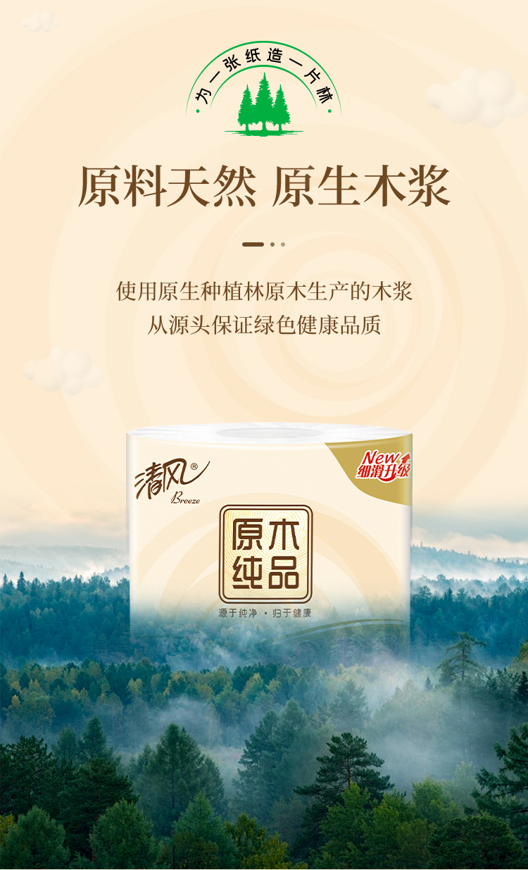 清风原木纯品3层卷筒卫生纸*1提,10卷/提 B22AB3BN1 6922266434877