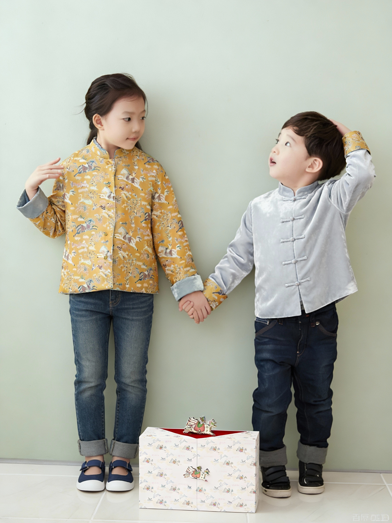 盛唐牡丹 | Kids蓝灰色马跃新春双穿外套&PeaceBio面霜&身体乳×东方境礼盒