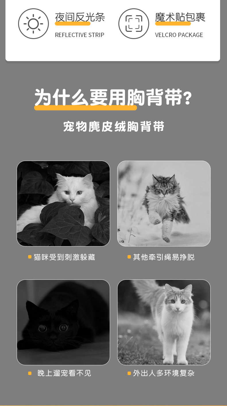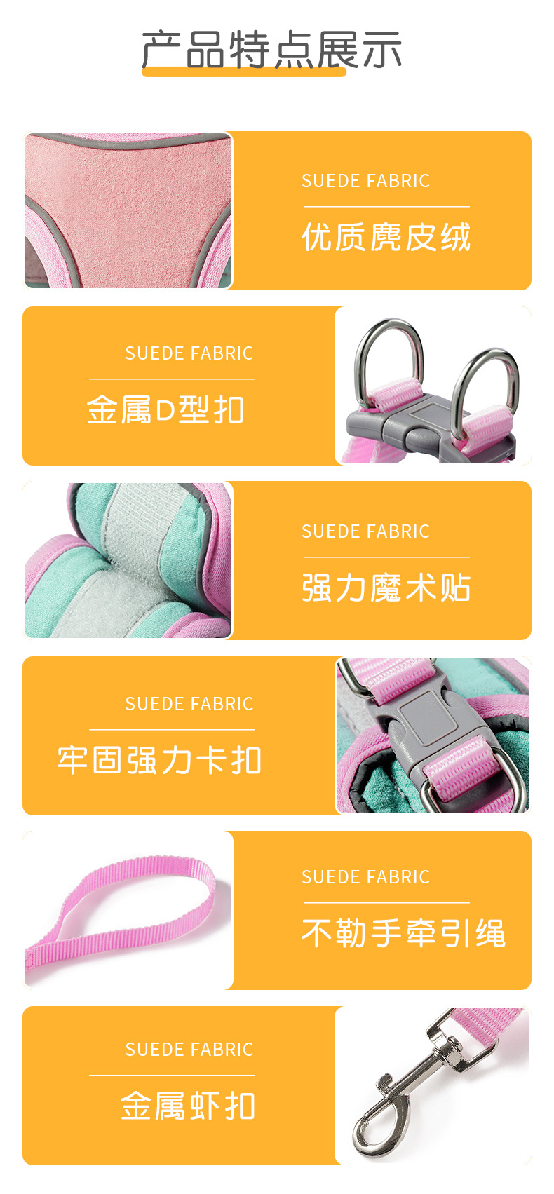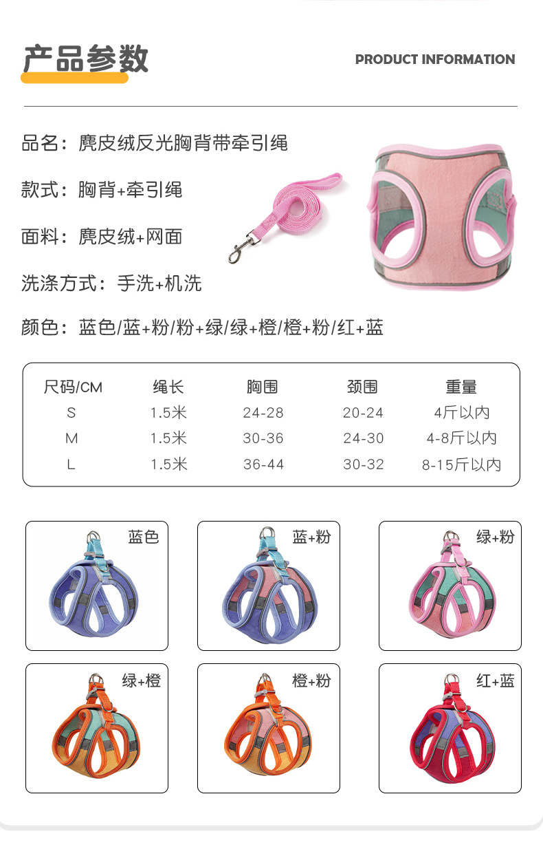 【宠物牵引绳】宠物狗猫牵引绳遛狗套装宠物麂皮猫咪胸背带发夜光牵引带